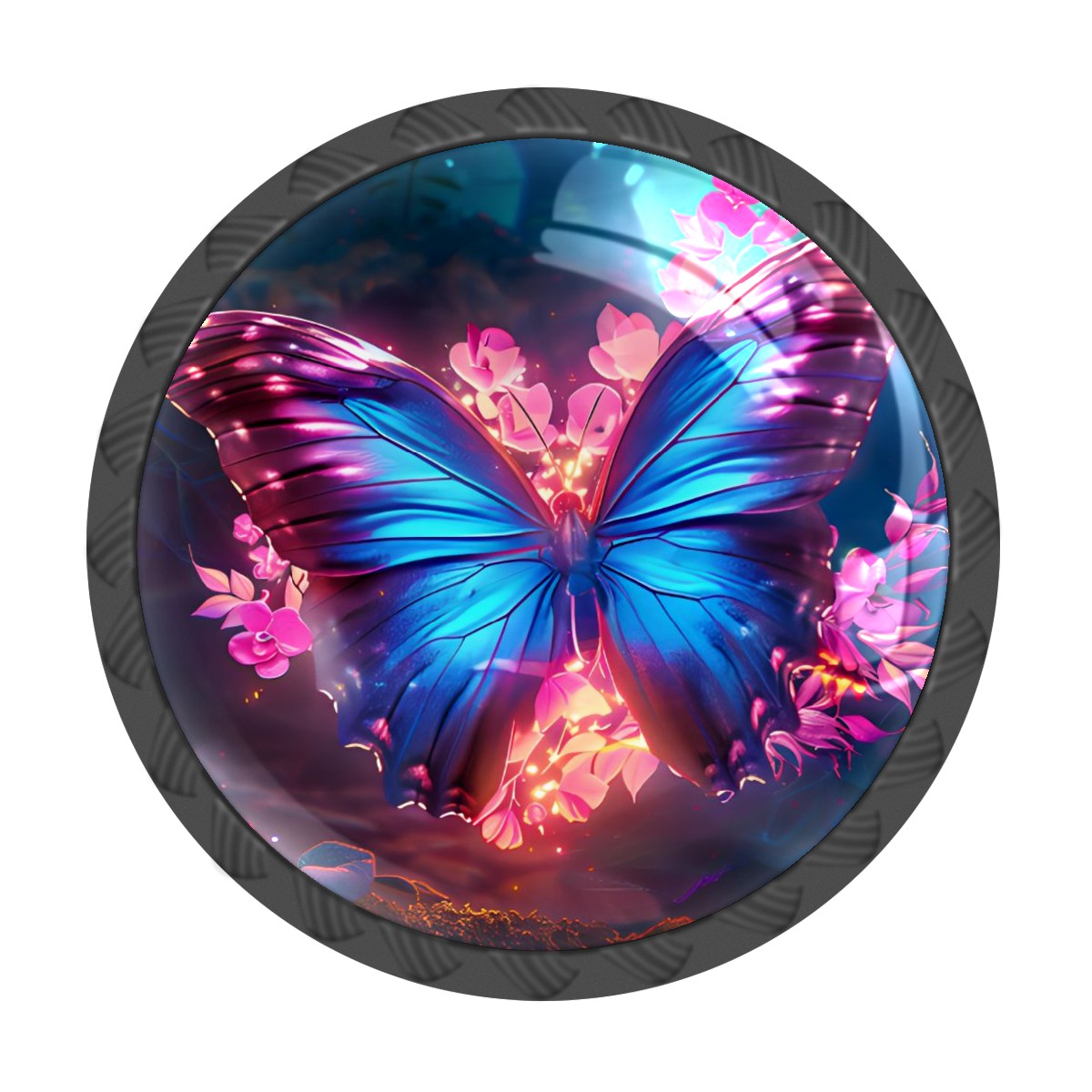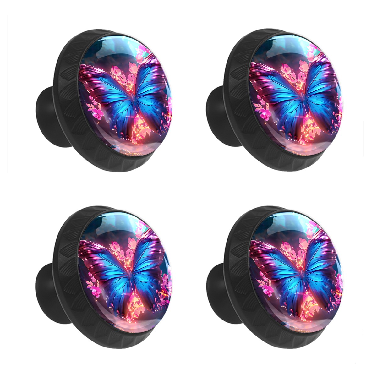 Round Cabinet Knobs Fantasy Butterfly Drawer Pulls Crystal Glass Knobs for Dresser Kitchen Bathroom Cabinet Black Cupboard Wardrobe Pulls Handles, 4 Pack (1.37'' x1.37'')