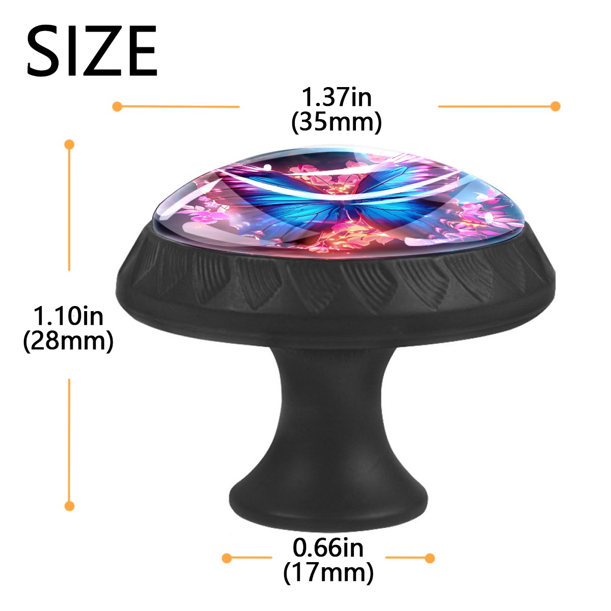 <p><b>Package Includes:</b></p> <p>Drawer Knobs x 4</p> <p>1.10 Inches Mounting Screws x 4</p> <p>1.37 Inches Mounting Screws x 4</p> <p><br></p> <p>Crystal Glass Diameter: 1.37 inches (35mm)</p> <p>Knob Height: 1.10 inches (28mm)</p> <p>Base Diameter: 0.66 inches (17mm)</p> <p><br></p> <p><b>Practical and Aesthetic:</b></p> <p>The cute drawer pulls combine the durability of an ABS base with the high transparency of glass, enhanced by unique patterns that add decoration and cuteness. It’s both practical and visually appealing.</p> <p><b>Pattern Design:</b></p> <p>Clear patterns add decoration and personalization. They enhance visual appeal and can match different home styles, meeting diverse design needs.</p> <p><b>Easy Installation:</b></p> <p>Equipped with mounting screws, the ABS base can be securely attached to the drawer with ease.</p> <p><b>Easy Cleaning:</b></p> <p>The smooth surface of the round glass pull resists dust and stains, making it easy to clean with just a damp cloth.</p> <p><b>Wear-Resistant:</b></p> <p>The cabinet knobs are designed to resist scratches and fading, maintaining their good appearance over long-term use.</p>