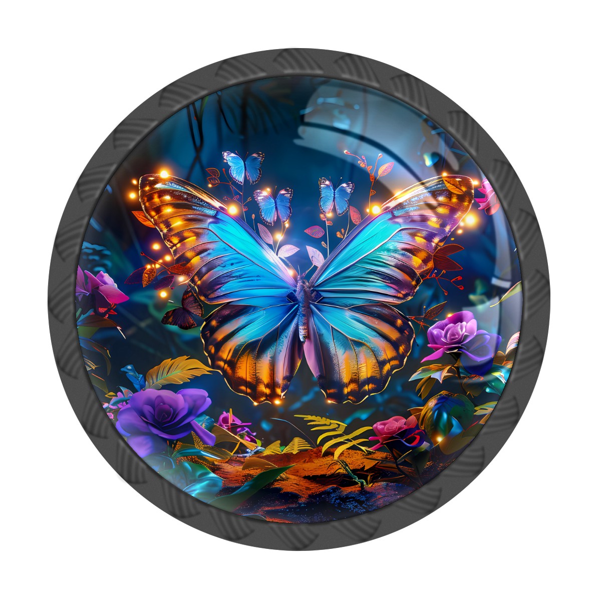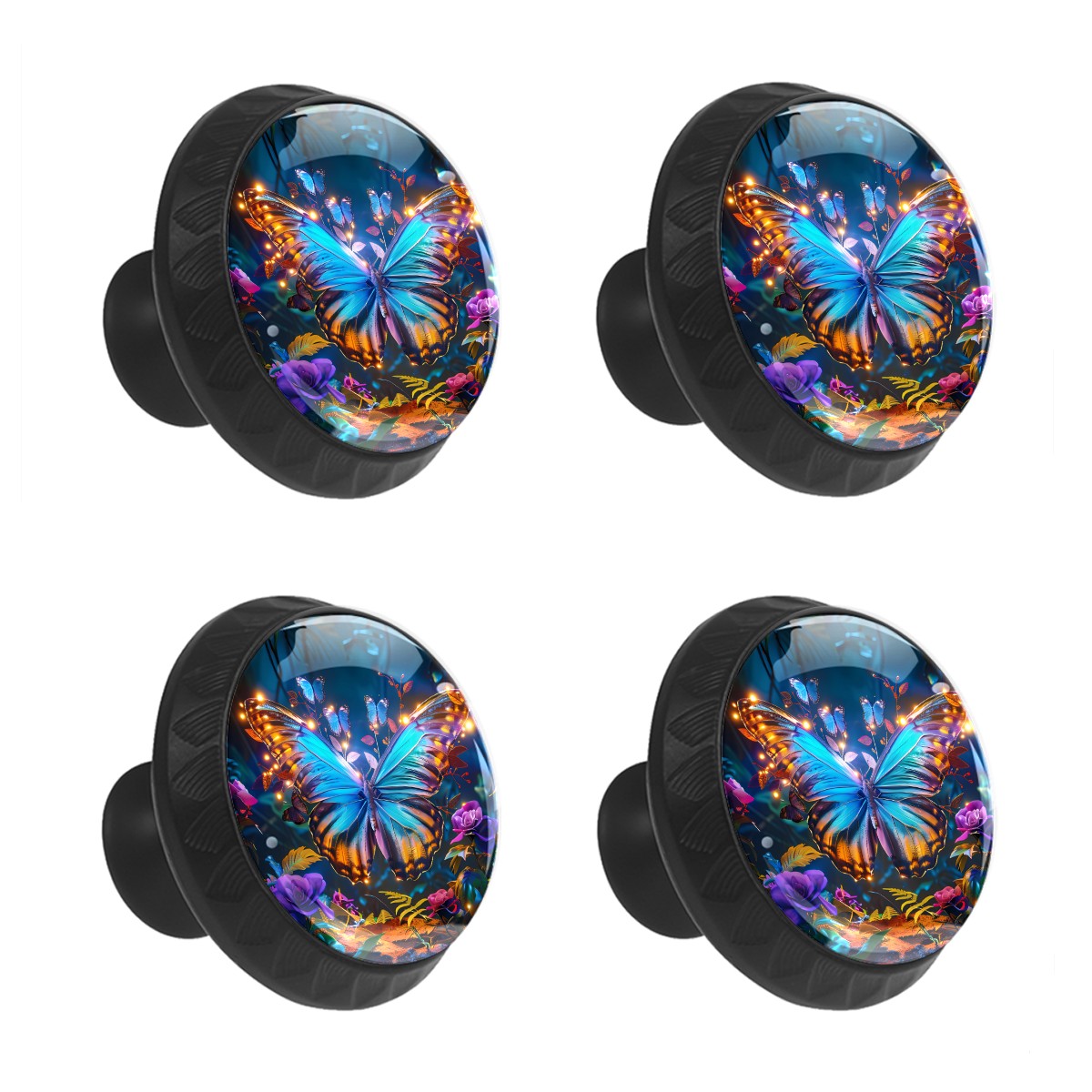Round Cabinet Knobs Fantasy Forest Butterfly Drawer Pulls Crystal Glass Knobs for Dresser Kitchen Bathroom Cabinet Black Cupboard Wardrobe Pulls Handles, 4 Pack (1.37'' x1.37'')