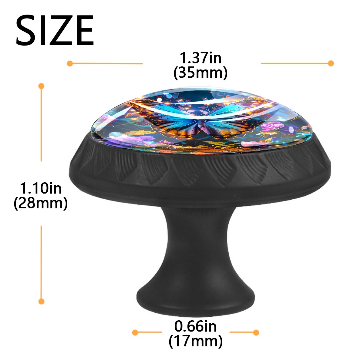 <p><b>Package Includes:</b></p> <p>Drawer Knobs x 4</p> <p>1.10 Inches Mounting Screws x 4</p> <p>1.37 Inches Mounting Screws x 4</p> <p><br></p> <p>Crystal Glass Diameter: 1.37 inches (35mm)</p> <p>Knob Height: 1.10 inches (28mm)</p> <p>Base Diameter: 0.66 inches (17mm)</p> <p><br></p> <p><b>Practical and Aesthetic:</b></p> <p>The cute drawer pulls combine the durability of an ABS base with the high transparency of glass, enhanced by unique patterns that add decoration and cuteness. It’s both practical and visually appealing.</p> <p><b>Pattern Design:</b></p> <p>Clear patterns add decoration and personalization. They enhance visual appeal and can match different home styles, meeting diverse design needs.</p> <p><b>Easy Installation:</b></p> <p>Equipped with mounting screws, the ABS base can be securely attached to the drawer with ease.</p> <p><b>Easy Cleaning:</b></p> <p>The smooth surface of the round glass pull resists dust and stains, making it easy to clean with just a damp cloth.</p> <p><b>Wear-Resistant:</b></p> <p>The cabinet knobs are designed to resist scratches and fading, maintaining their good appearance over long-term use.</p>