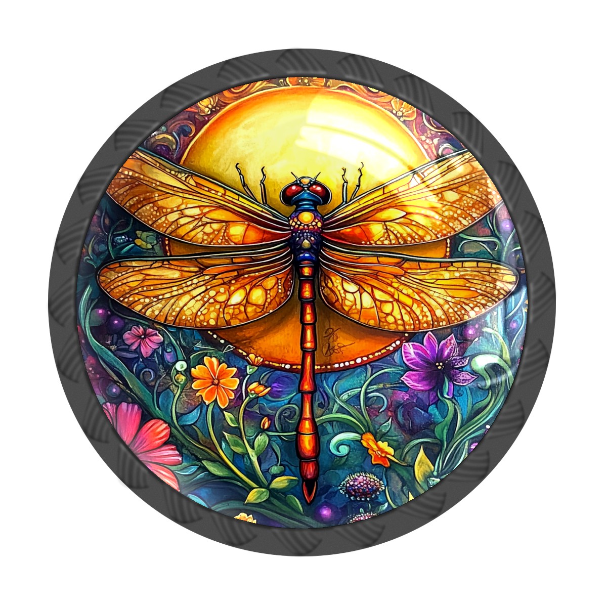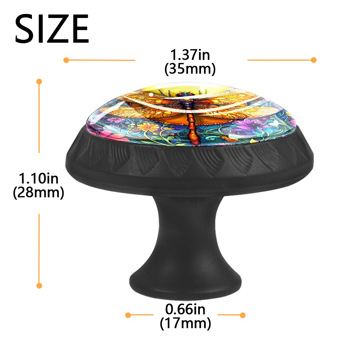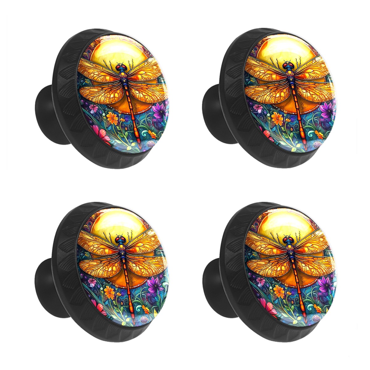 Round Cabinet Knobs Dragonfly Flowers Drawer Pulls Crystal Glass Knobs for Dresser Kitchen Bathroom Cabinet Black Cupboard Wardrobe Pulls Handles, 4 Pack (1.37'' x1.37'')