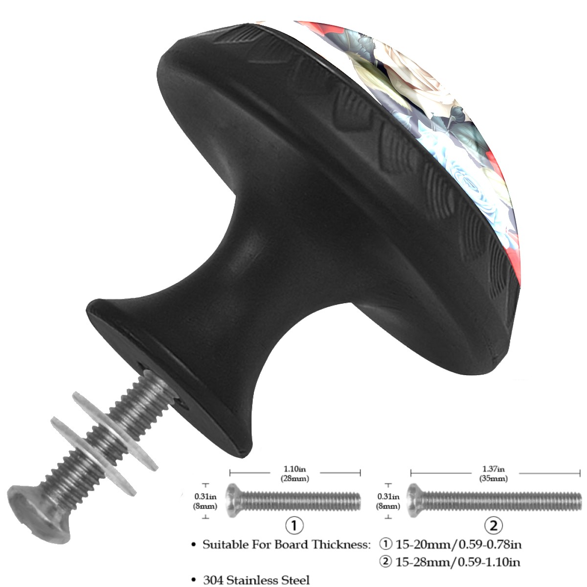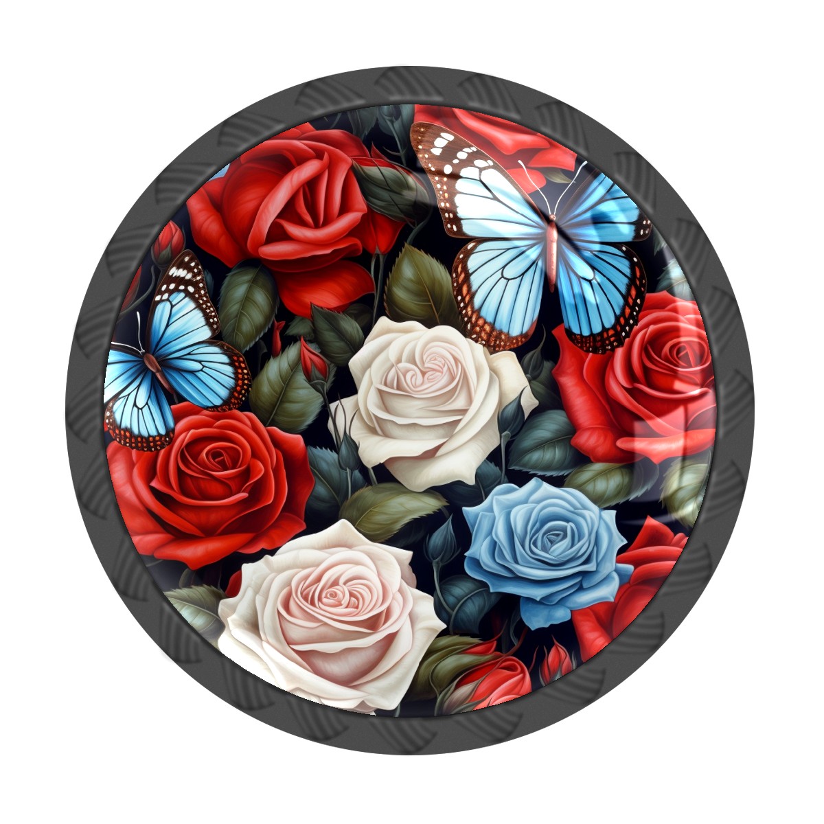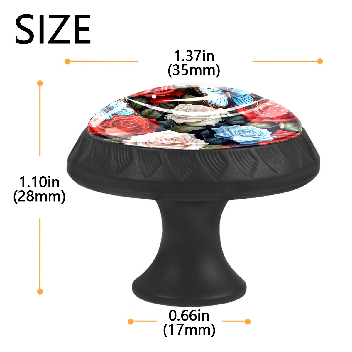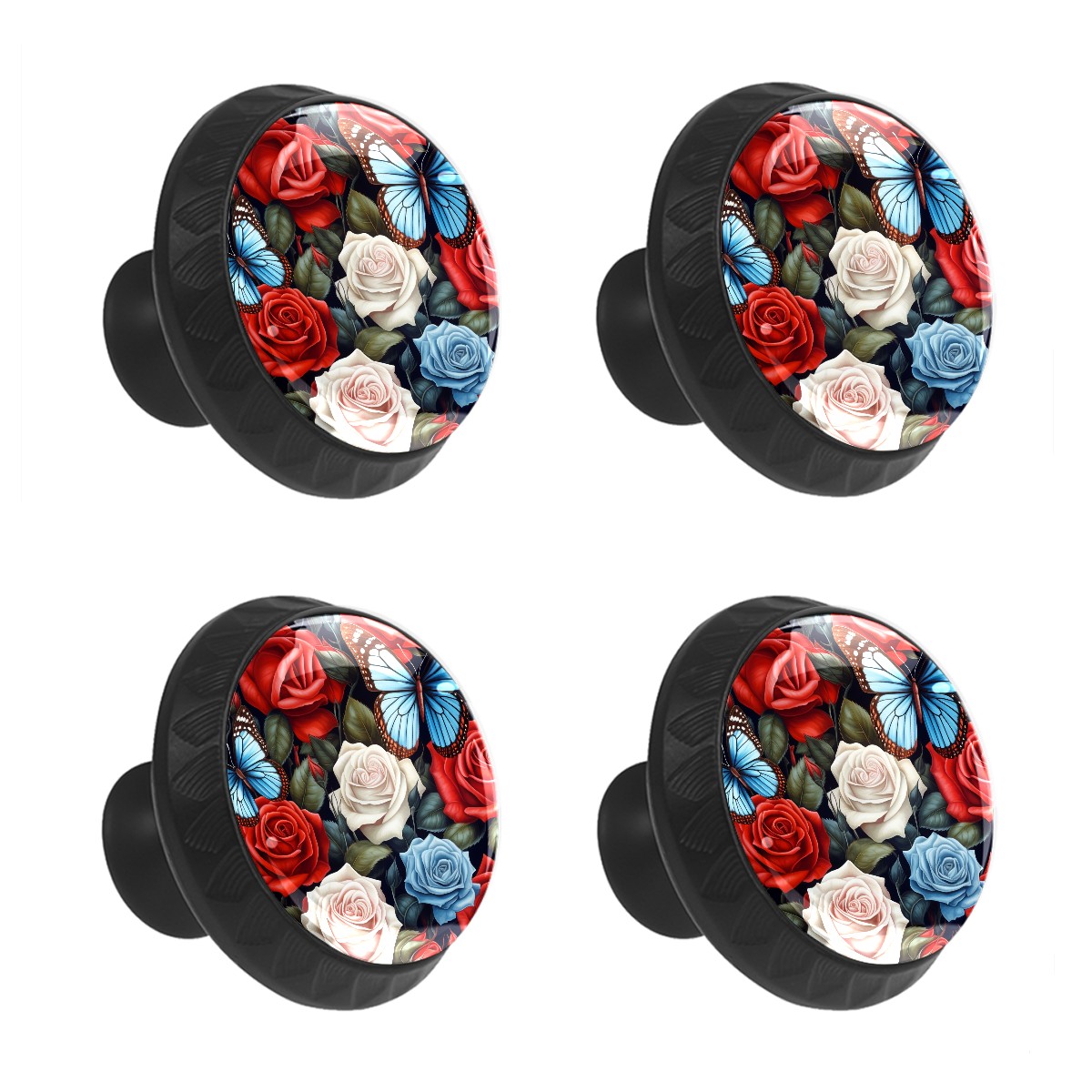 Round Cabinet Knobs Rose Floral With Butterfly Drawer Pulls Crystal Glass Knobs for Dresser Kitchen Bathroom Cabinet Black Cupboard Wardrobe Pulls Handles, 4 Pack (1.37'' x1.37'')