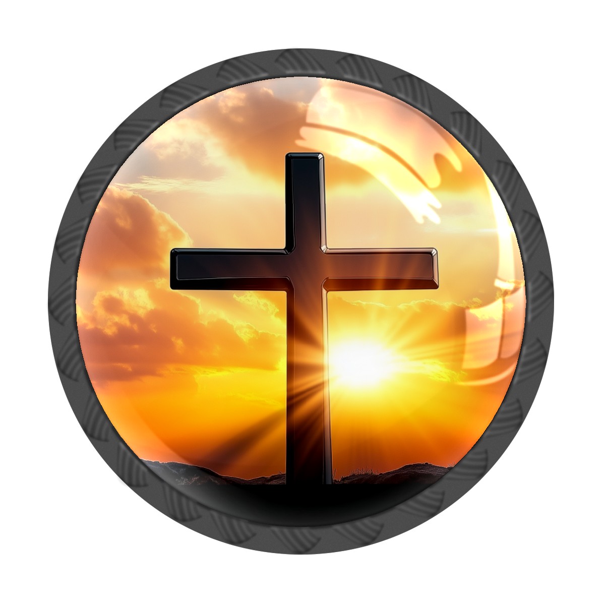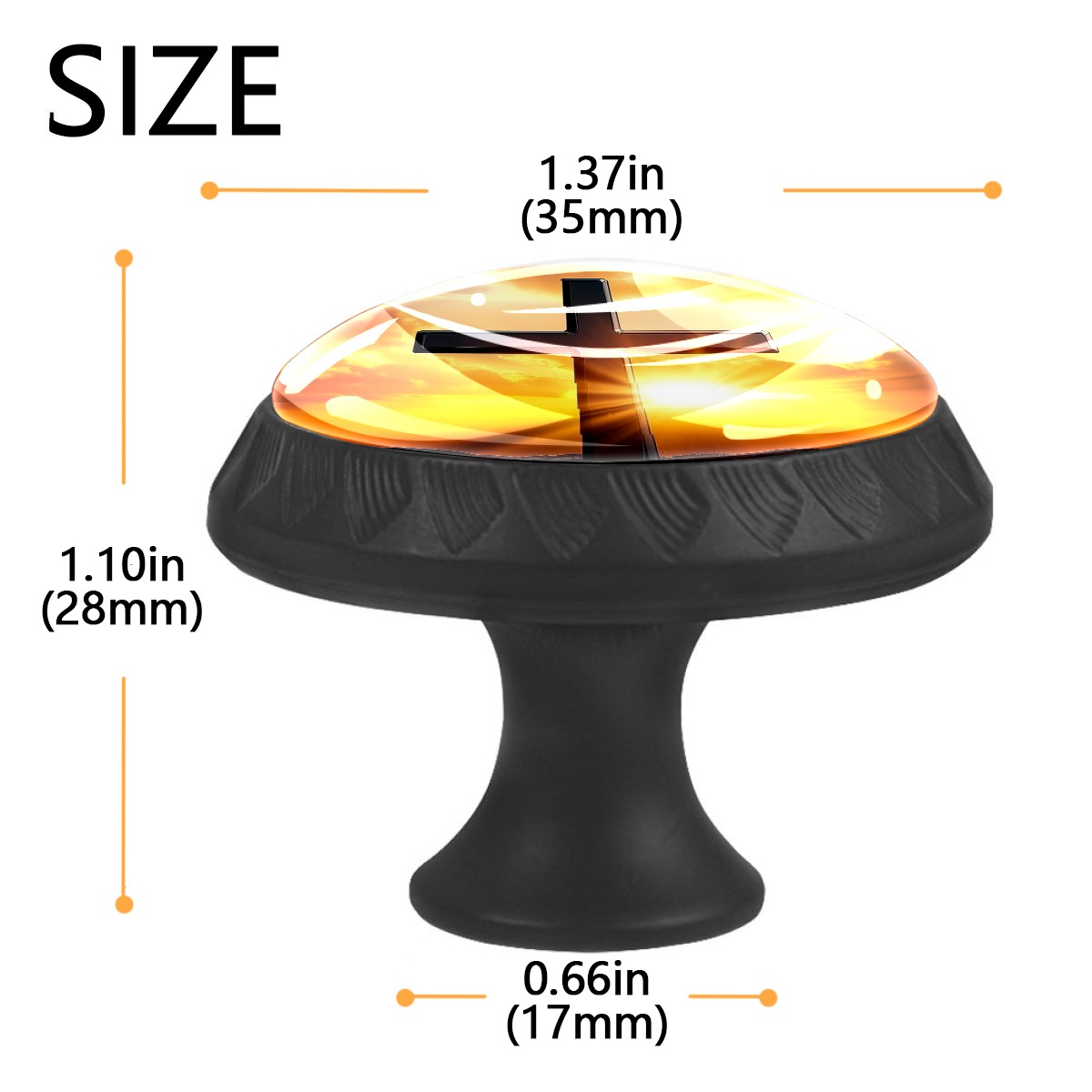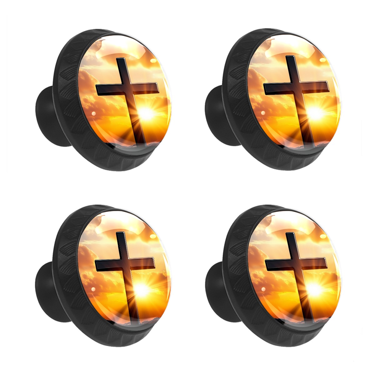 Round Cabinet Knobs A_cross Drawer Pulls Crystal Glass Knobs for Dresser Kitchen Bathroom Cabinet Black Cupboard Wardrobe Pulls Handles, 4 Pack (1.37'' x1.37'')