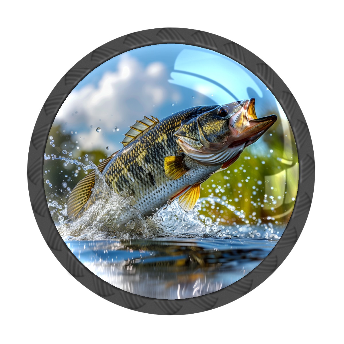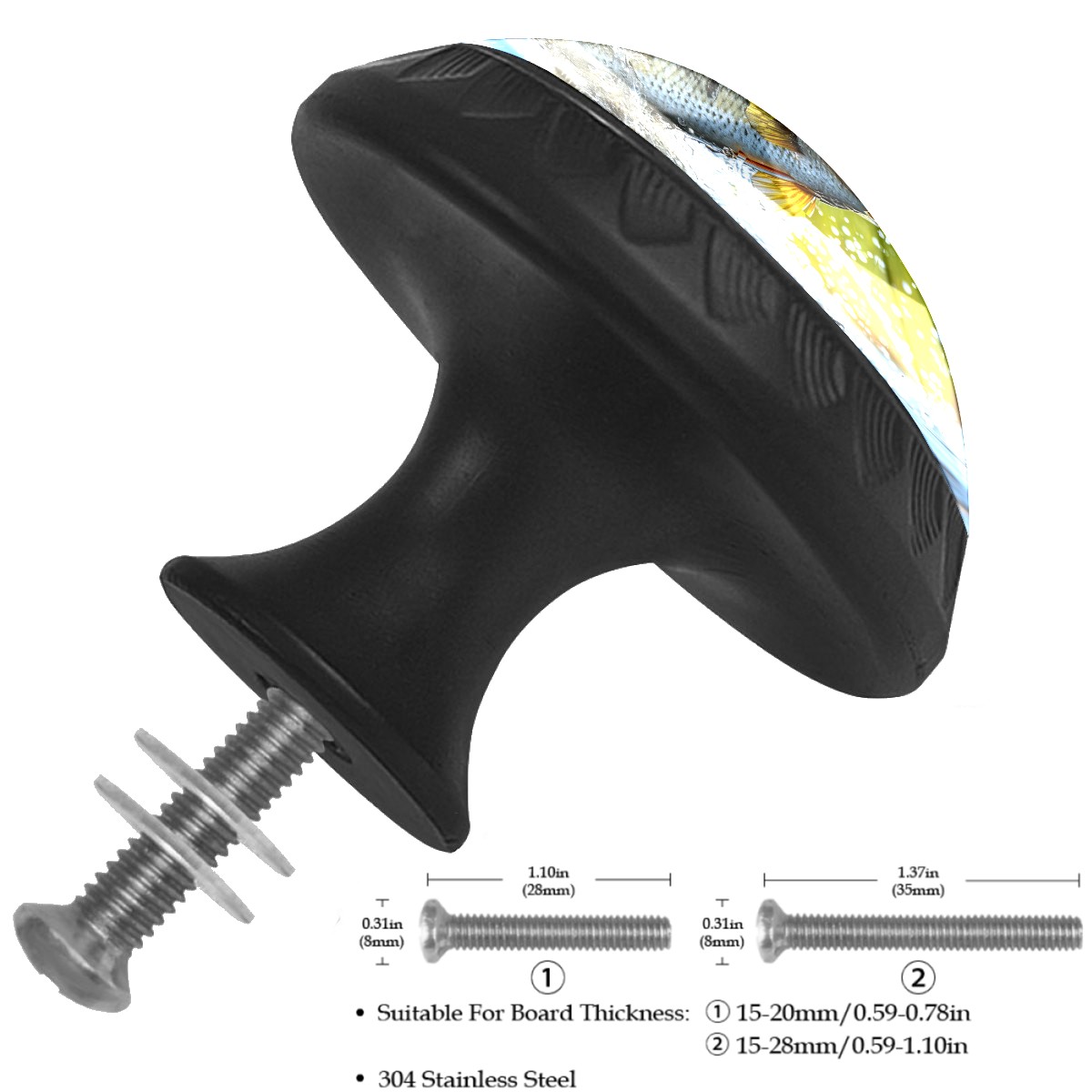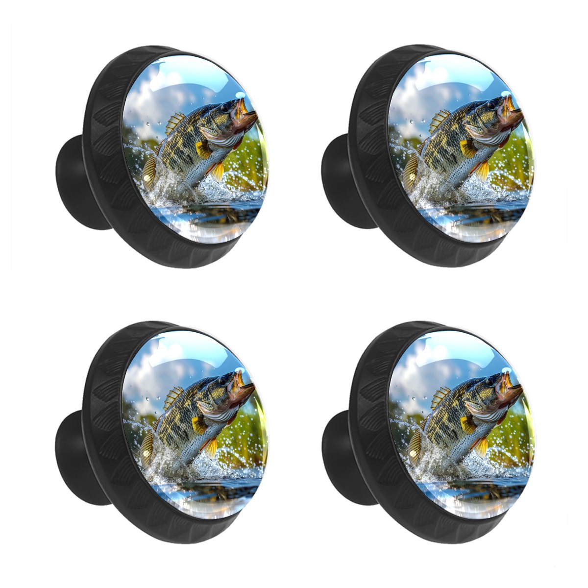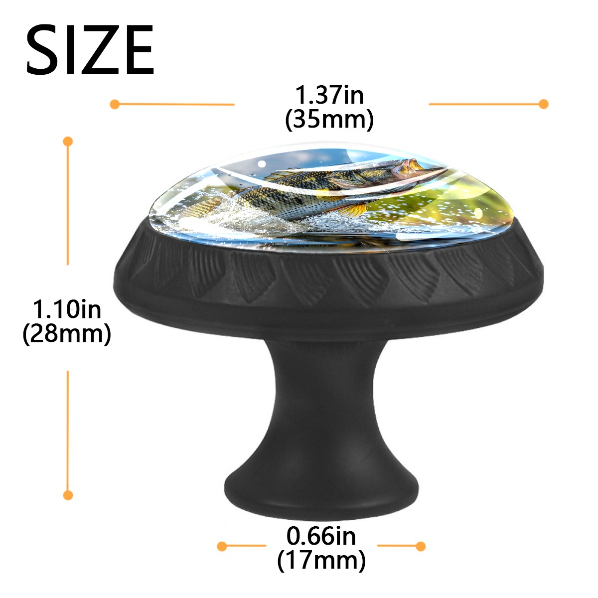 Round Cabinet Knobs Bass Fish Drawer Pulls Crystal Glass Knobs for Dresser Kitchen Bathroom Cabinet Black Cupboard Wardrobe Pulls Handles, 4 Pack (1.37'' x1.37'')