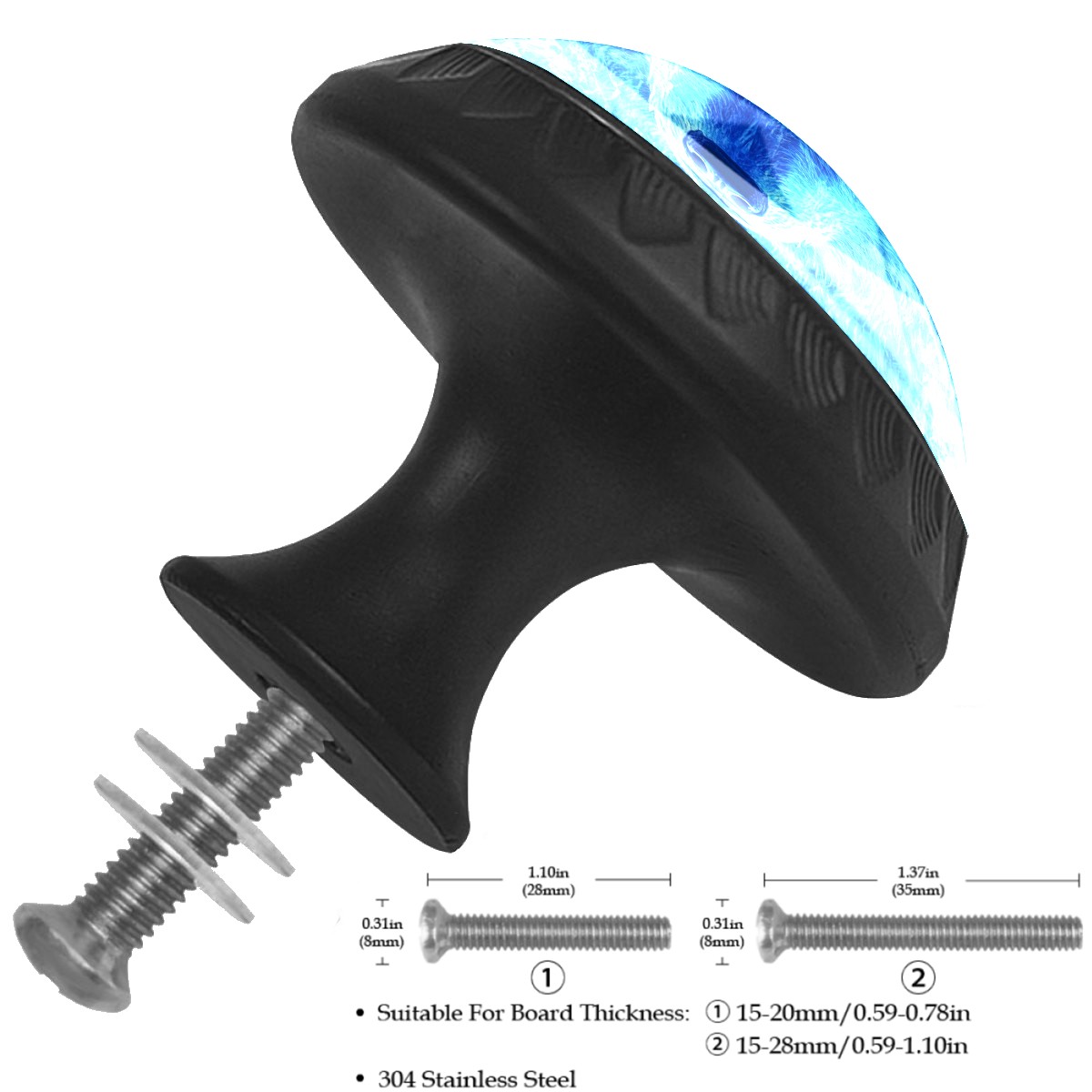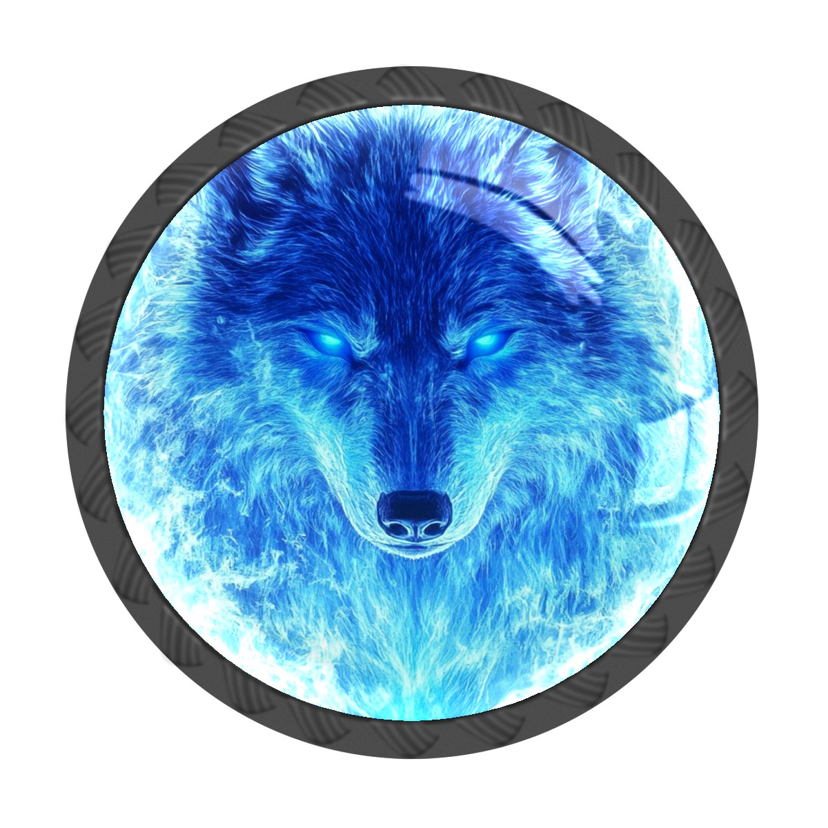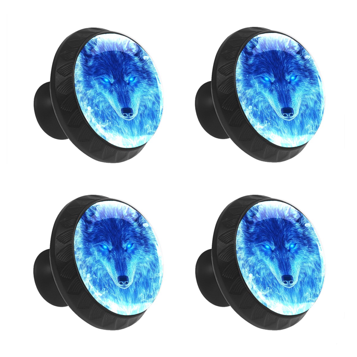 Round Cabinet Knobs Ice Fire Blue Wolf Drawer Pulls Crystal Glass Knobs for Dresser Kitchen Bathroom Cabinet Black Cupboard Wardrobe Pulls Handles, 4 Pack