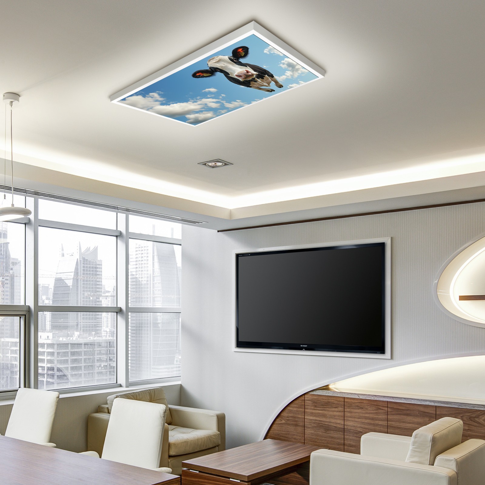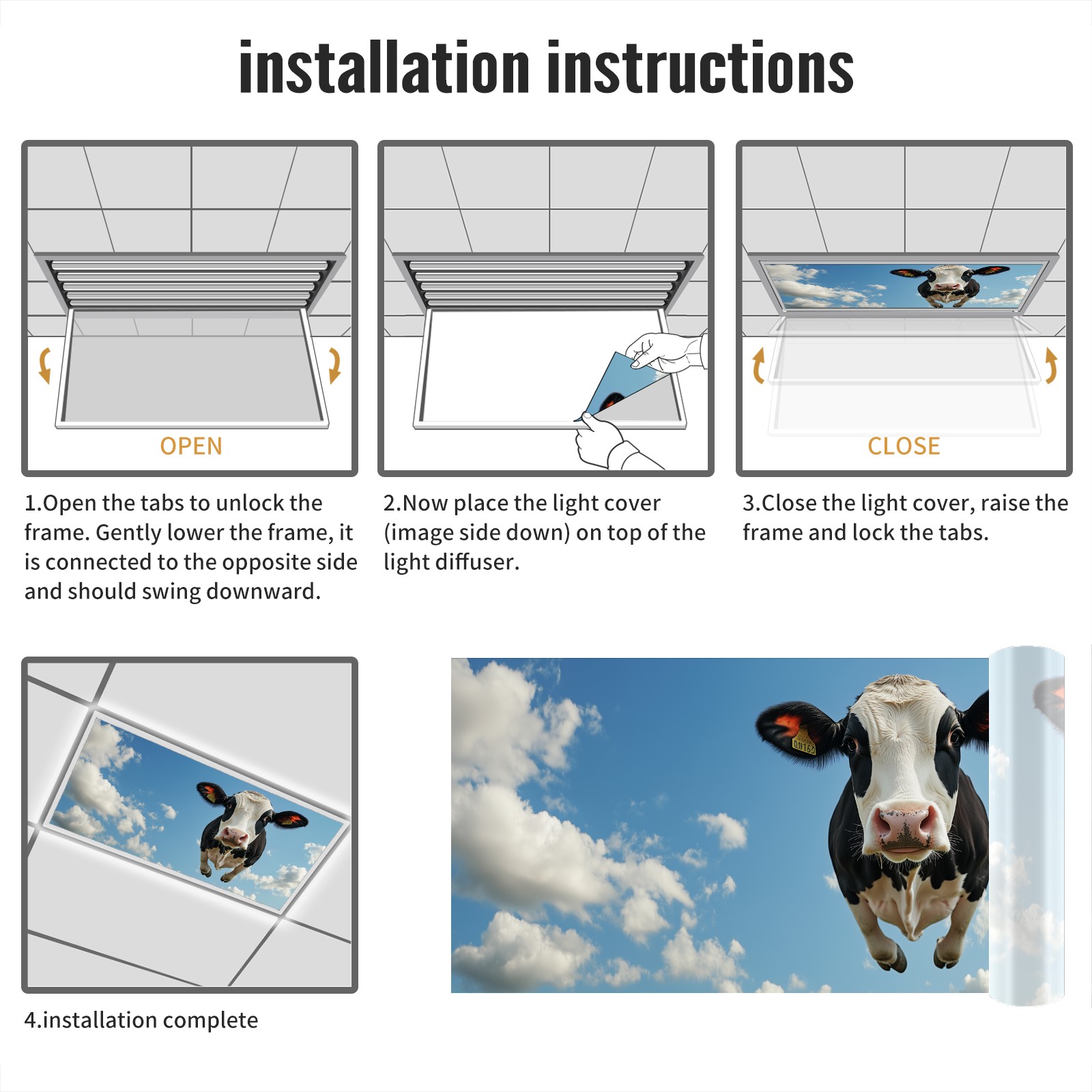 MSINMKOK Cow Blue Sky Fluorescent Light Covers for Ceiling Lights Classroom Office Decorative Drop Ceiling Light Cover Filters Hospital Home Ceiling Decor 47.2'' x 23.6''