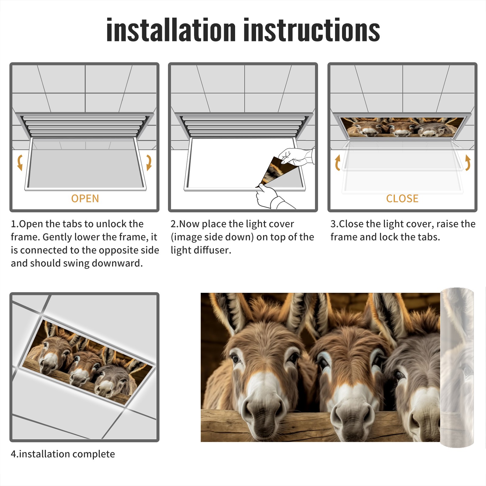MSINMKOK Donkeys Fluorescent Light Covers for Ceiling Lights Classroom Office Decorative Drop Ceiling Light Cover Filters Hospital Home Ceiling Decor 47.2'' x 23.6''