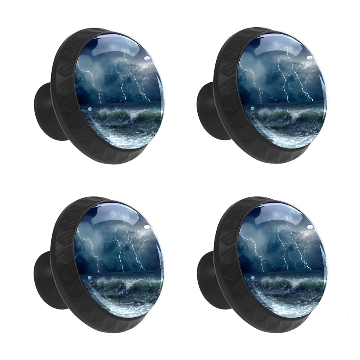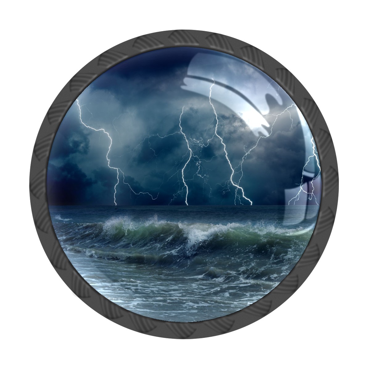 4 Pack Cabinet Knobs Lightning Moody Sky Over The Ocean Drawer Pulls Crystal Glass Round Knobs Handles for Dressers Drawer Bathroom Kitchen Cupboards Wardrobes Hardware Furniture Knobs