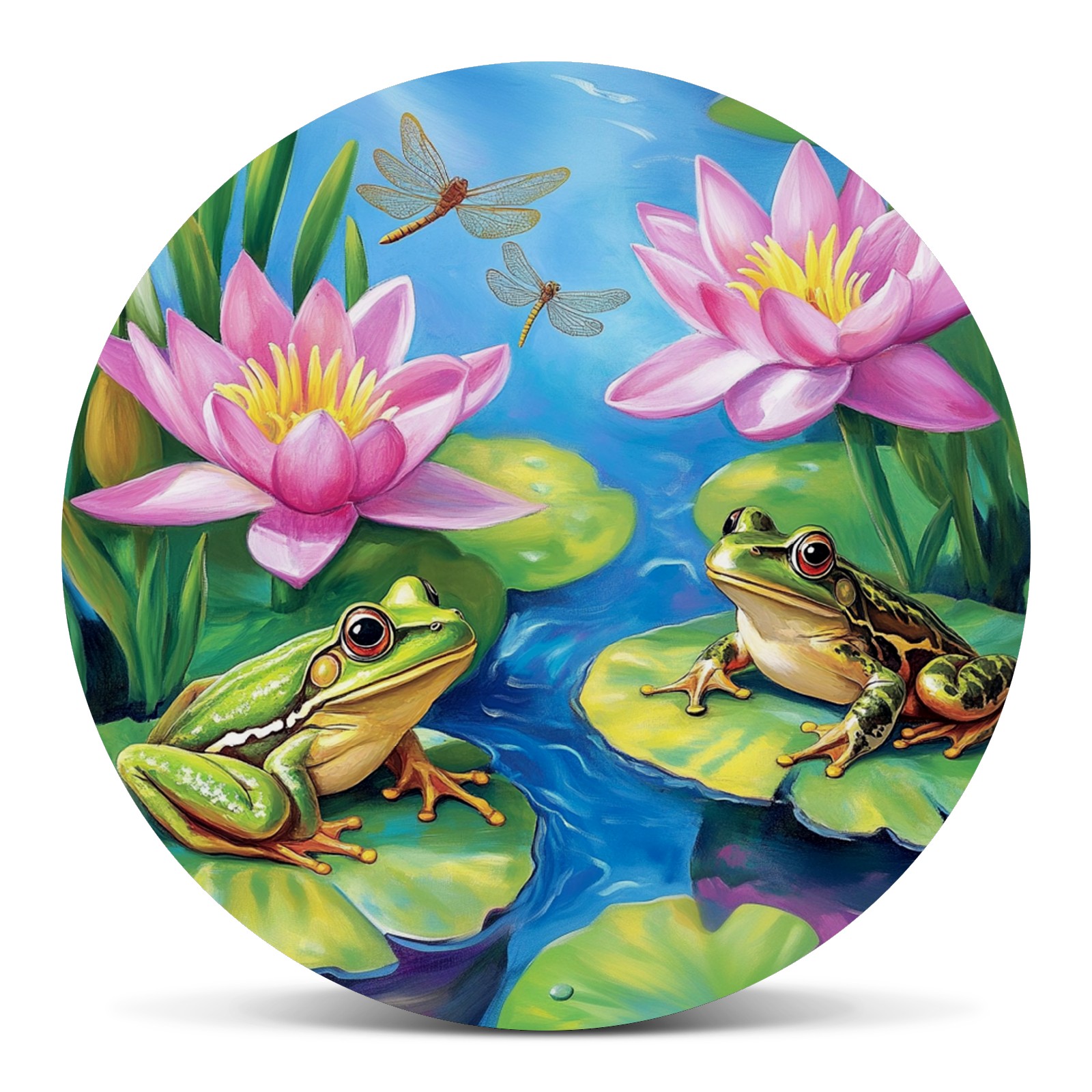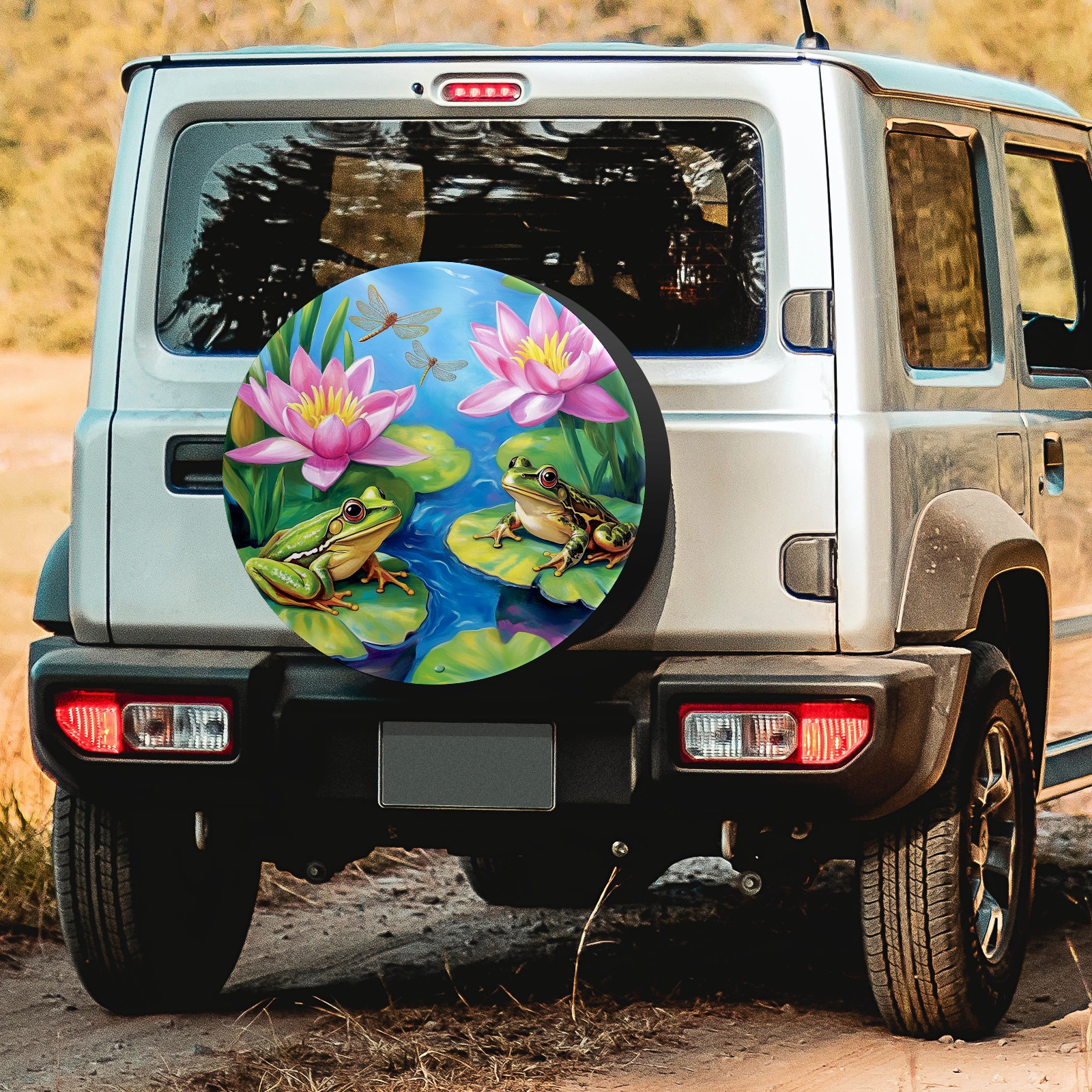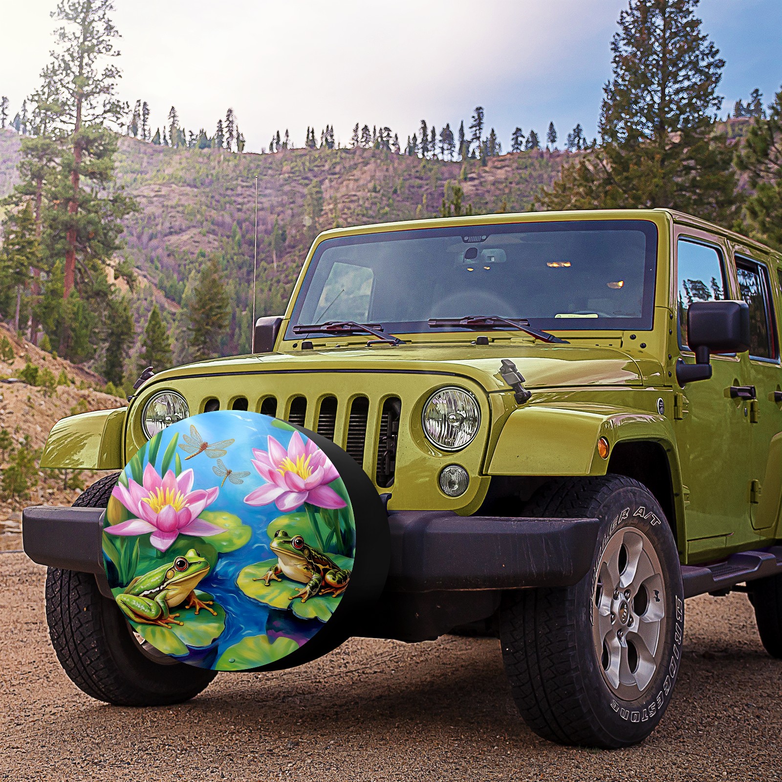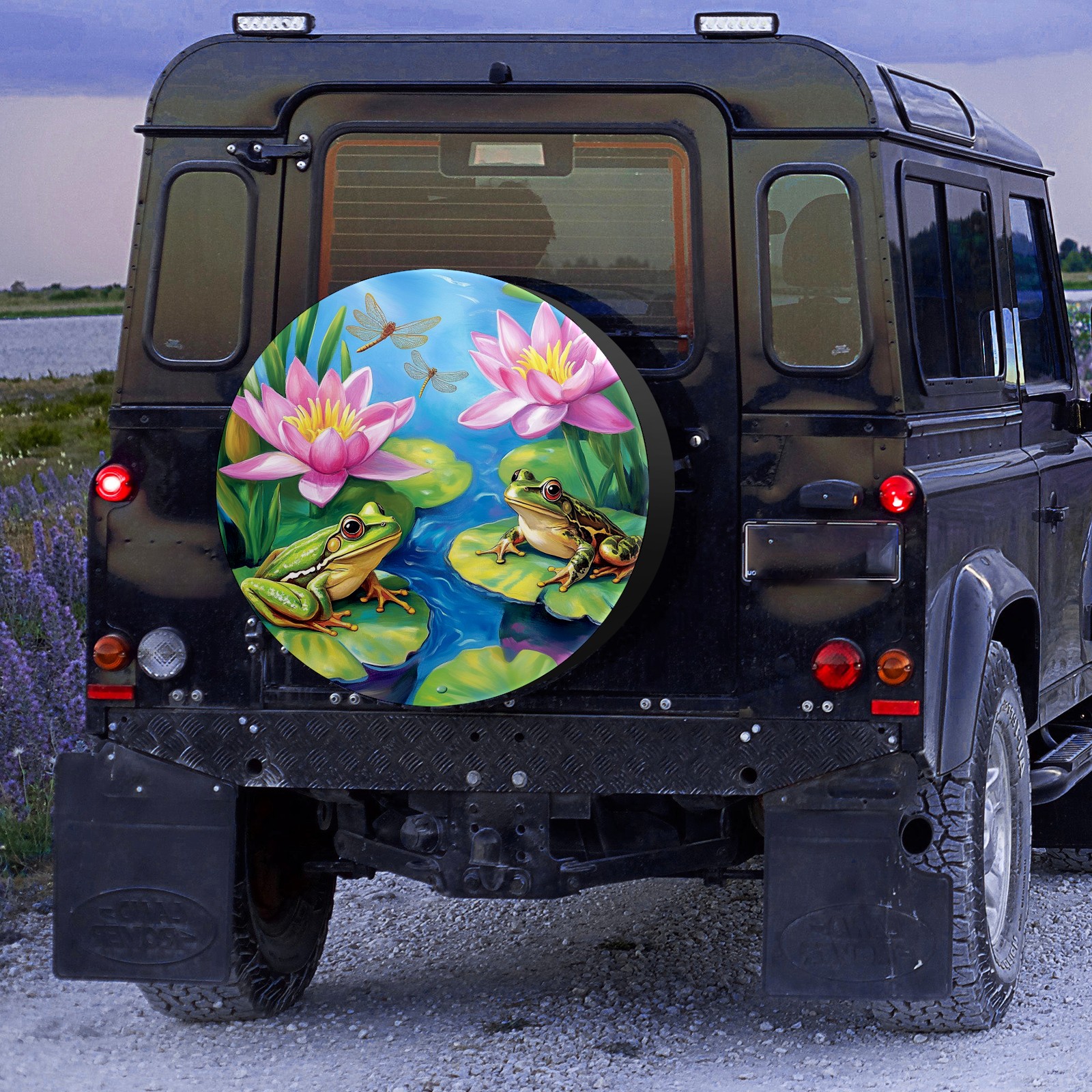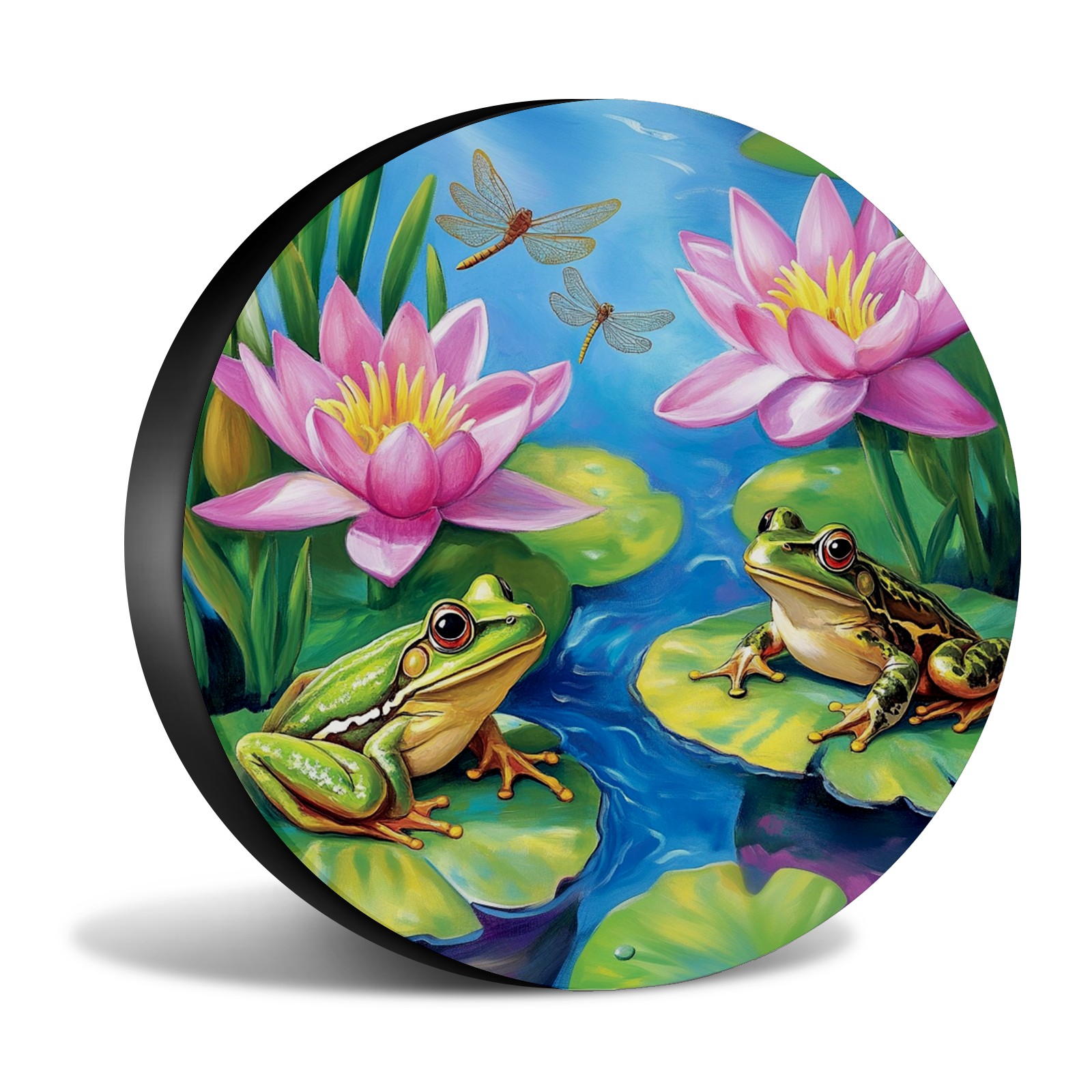 Spare Tire Cover Pond Frogs Lotus Tire Cover 14 Inch for Trailer SUV RV Camper Waterproof Wheel Protectors (for Wheel Diameter 23''-27'') Car Accessories