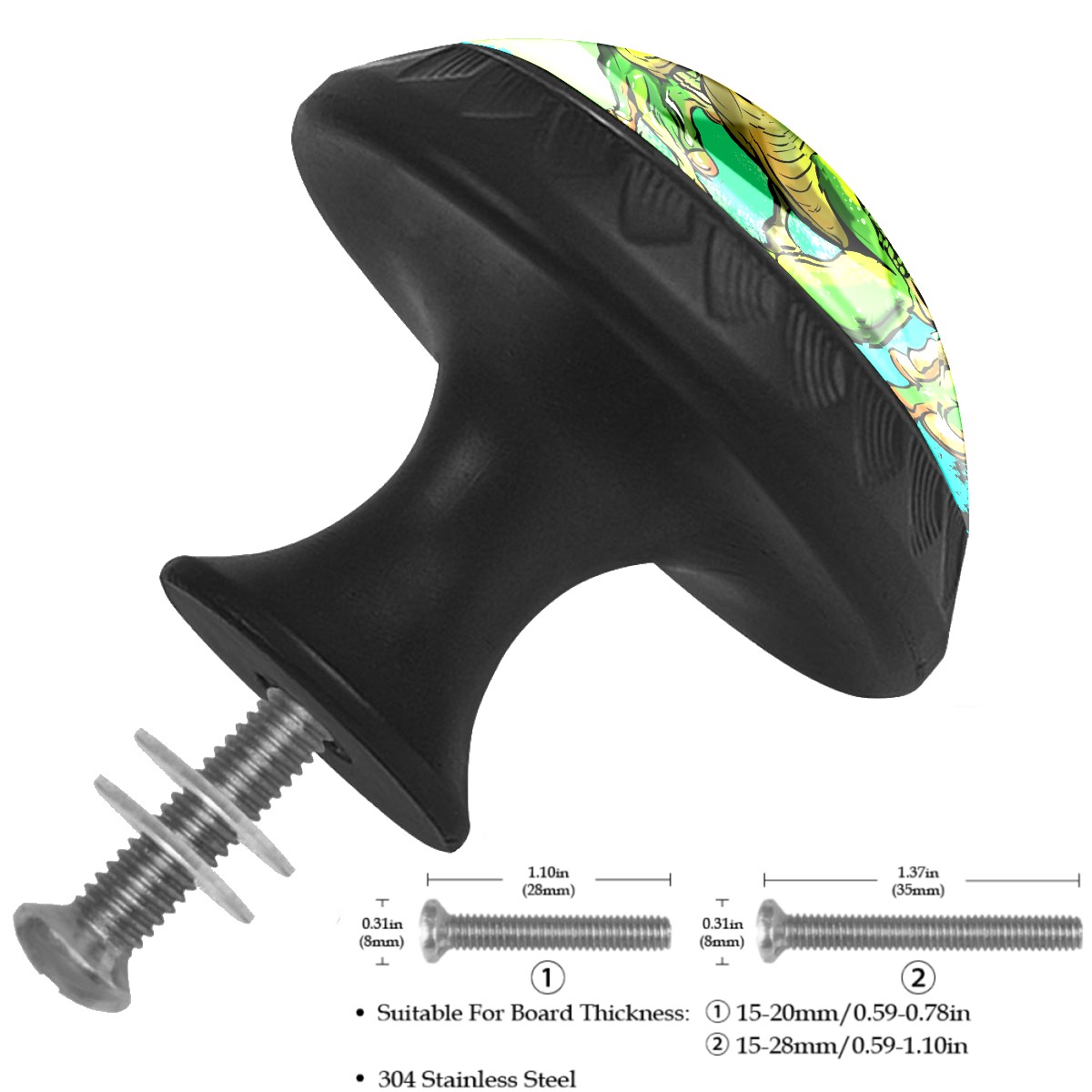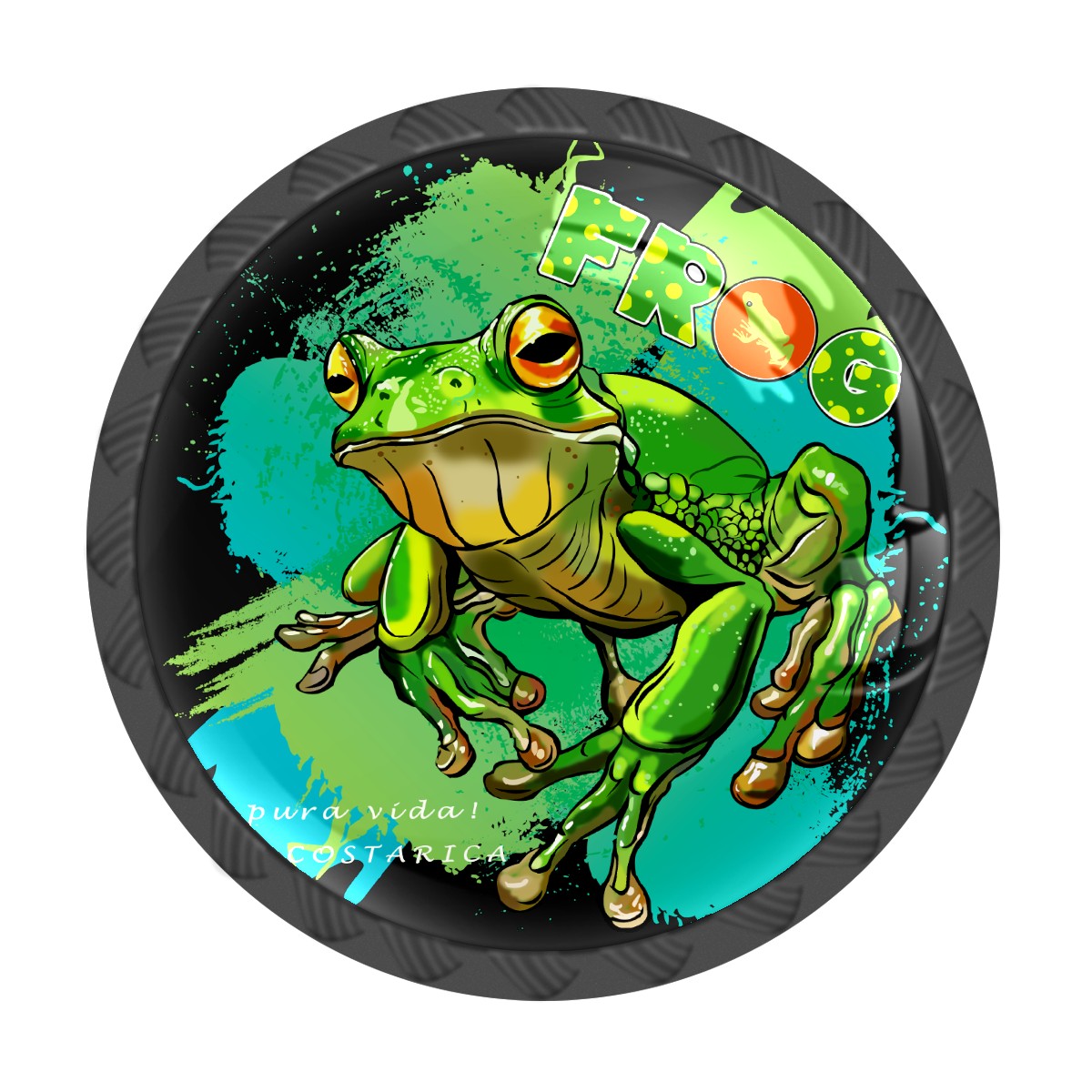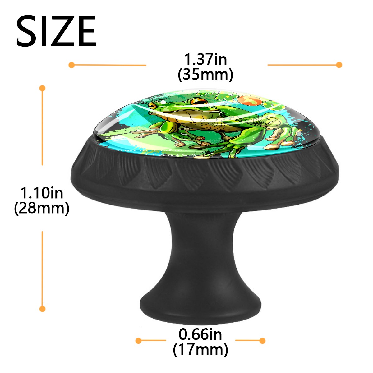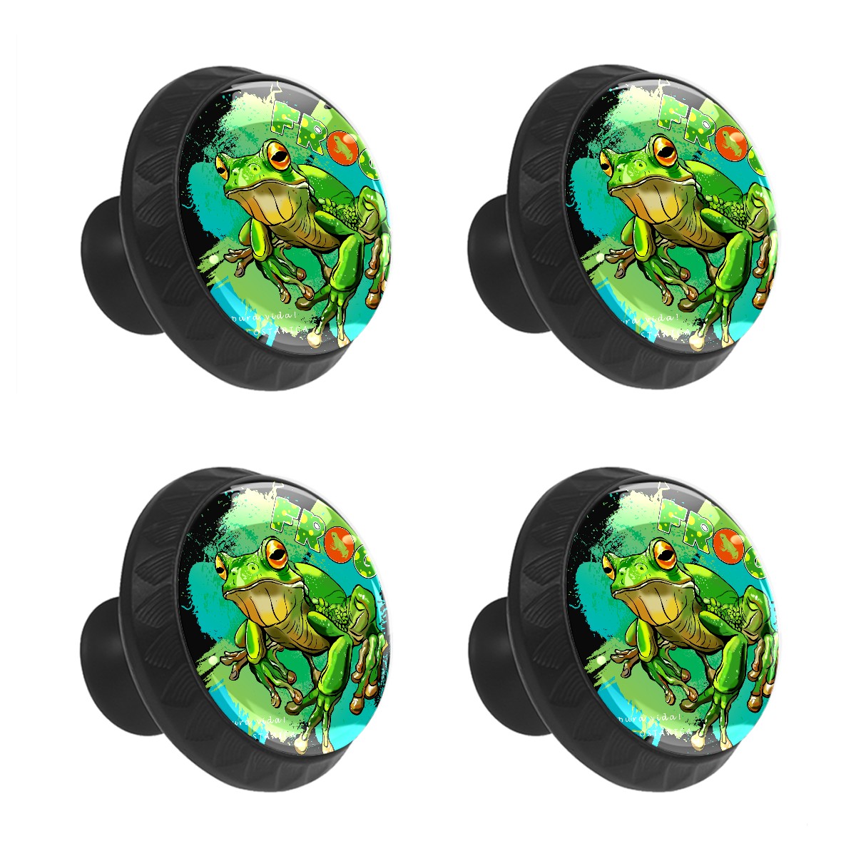 Round Cabinet Knobs Green Frog Animal Drawer Pulls Crystal Glass Knobs for Dresser Kitchen Bathroom Cabinet Black Cupboard Wardrobe Pulls Handles, 4 Pack