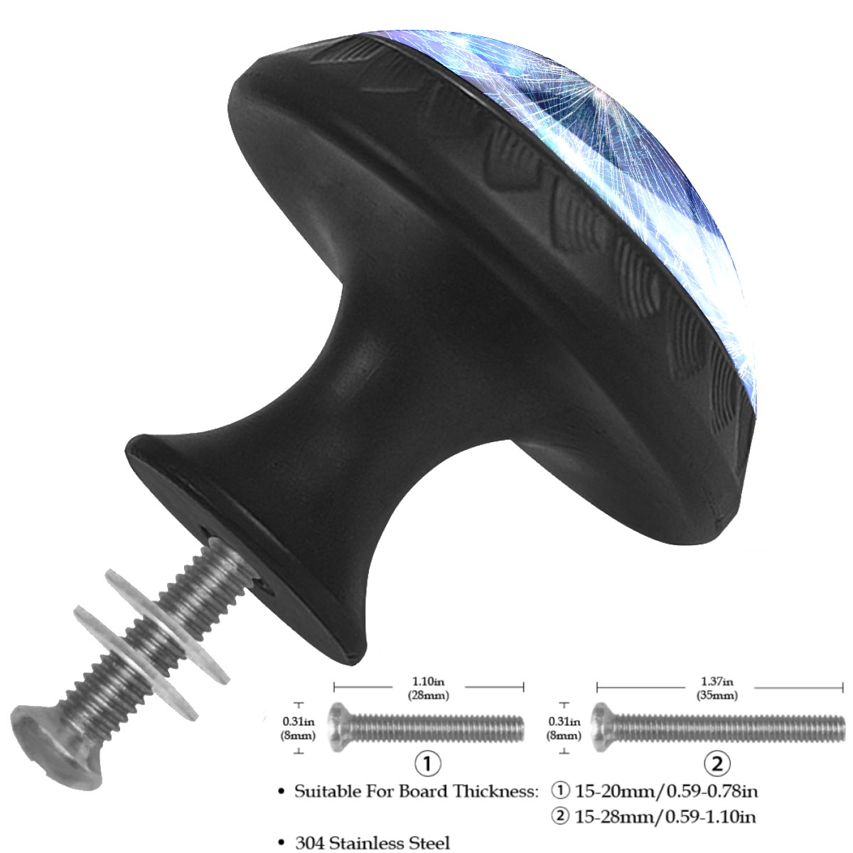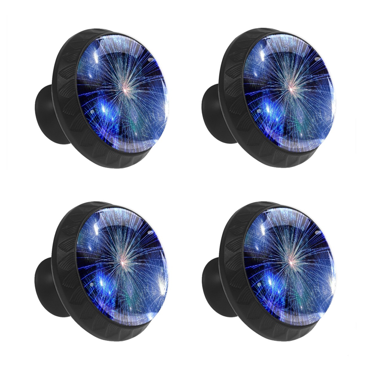 4 Pcs Drawer Knobs Fireworks Blue Round Crystal Glass Knobs Pulls for Dressers Kitchen Cabinets Drawers Wardrobe Cupboard Furniture Hardware Handles