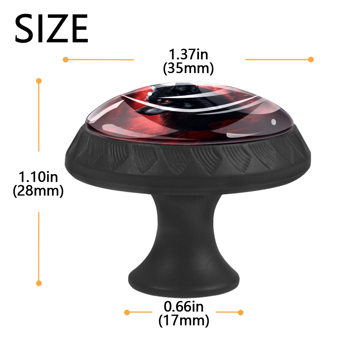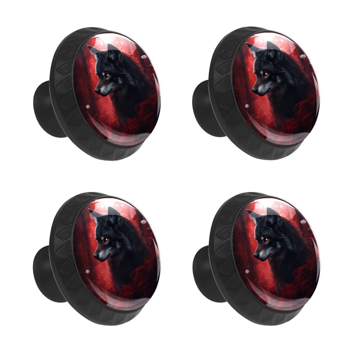 4 Pcs Drawer Knobs Black Wolf Round Crystal Glass Knobs Pulls for Dressers Kitchen Cabinets Drawers Wardrobe Cupboard Furniture Hardware Handles