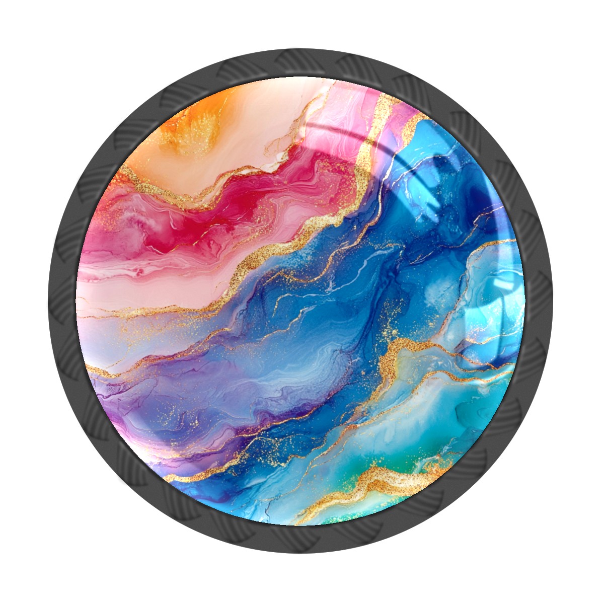 4 Pcs Drawer Knobs Colorful Marbl Round Crystal Glass Knobs Pulls for Dressers Kitchen Cabinets Drawers Wardrobe Cupboard Furniture Hardware Handles