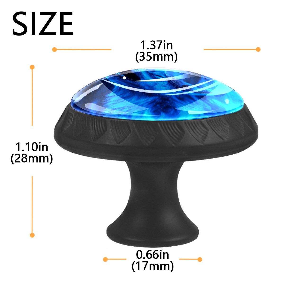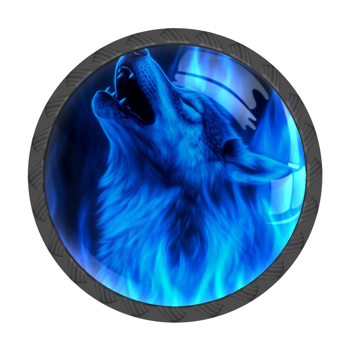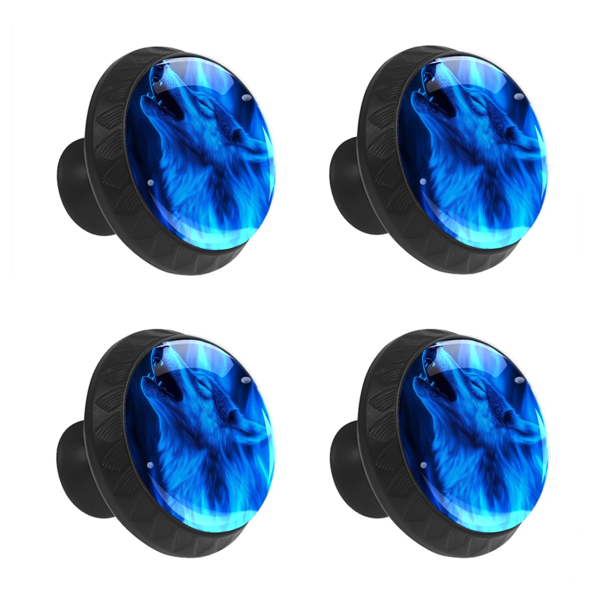 4 Pack Cabinet Knobs Wolf Howling Blue Flames (1) Drawer Pulls Black Crystal Glass Knobs for Dresser Kitchen Bathroom Cabinet Cupboard Wardrobe Pulls Handles Round