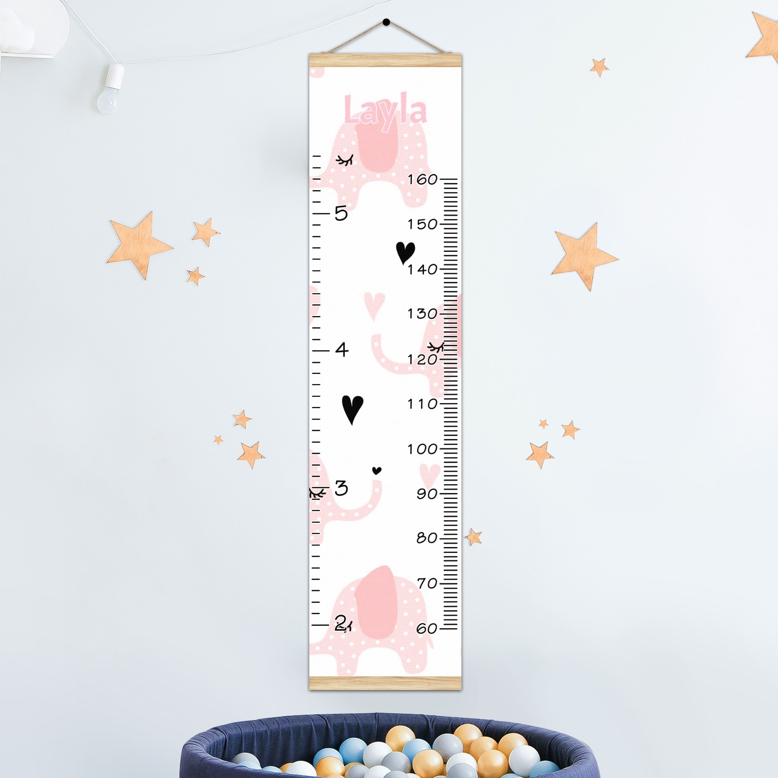 Personalized Kids Name Growth Chart Ruler for Wall Wood Frame Canvas Height Measure Chart 13.4x56 in Hanging Growth Chart Pink Elephant3.11-1 Boys Girls Room Decor