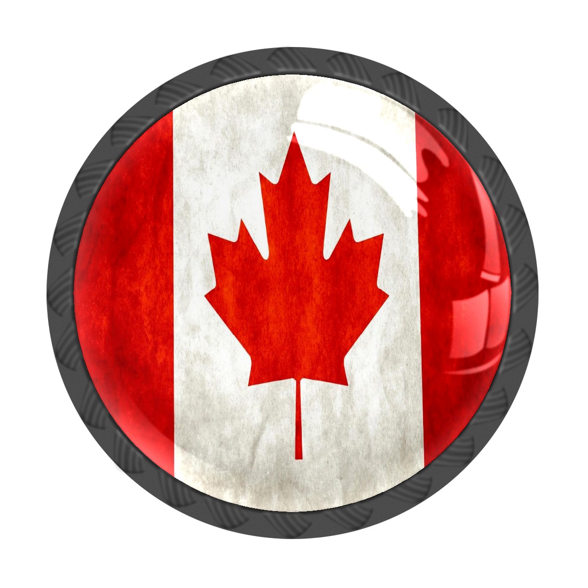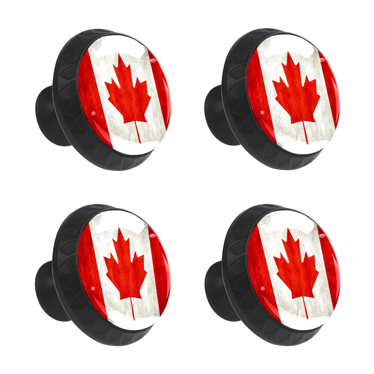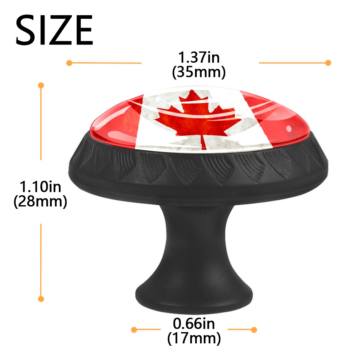 4 Pack Cabinet Knobs Canada Canadian Flag Drawer Pulls Black Crystal Glass Knobs for Dresser Kitchen Bathroom Cabinet Cupboard Wardrobe Pulls Handles Round