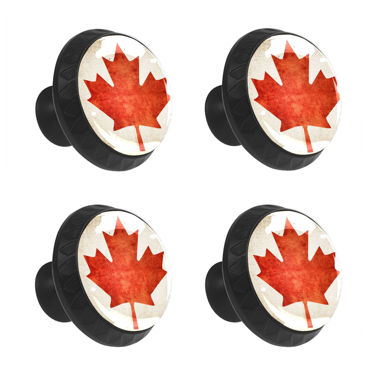 4 Pack Cabinet Knobs Retro Canada Flag Drawer Pulls Black Crystal Glass Knobs for Dresser Kitchen Bathroom Cabinet Cupboard Wardrobe Pulls Handles Round