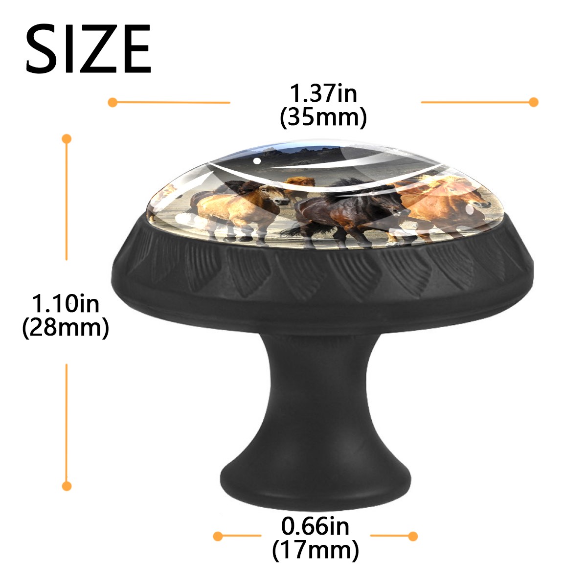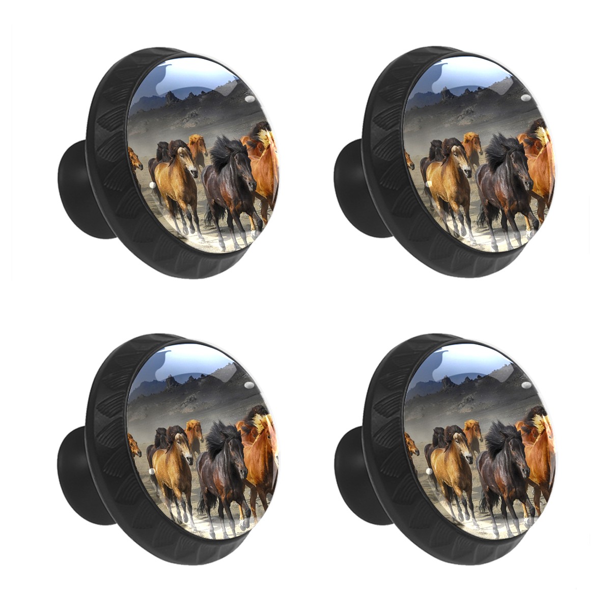 4 Pack Cabinet Knobs Horses Running Drawer Pulls Black Crystal Glass Knobs for Dresser Kitchen Bathroom Cabinet Cupboard Wardrobe Pulls Handles Round