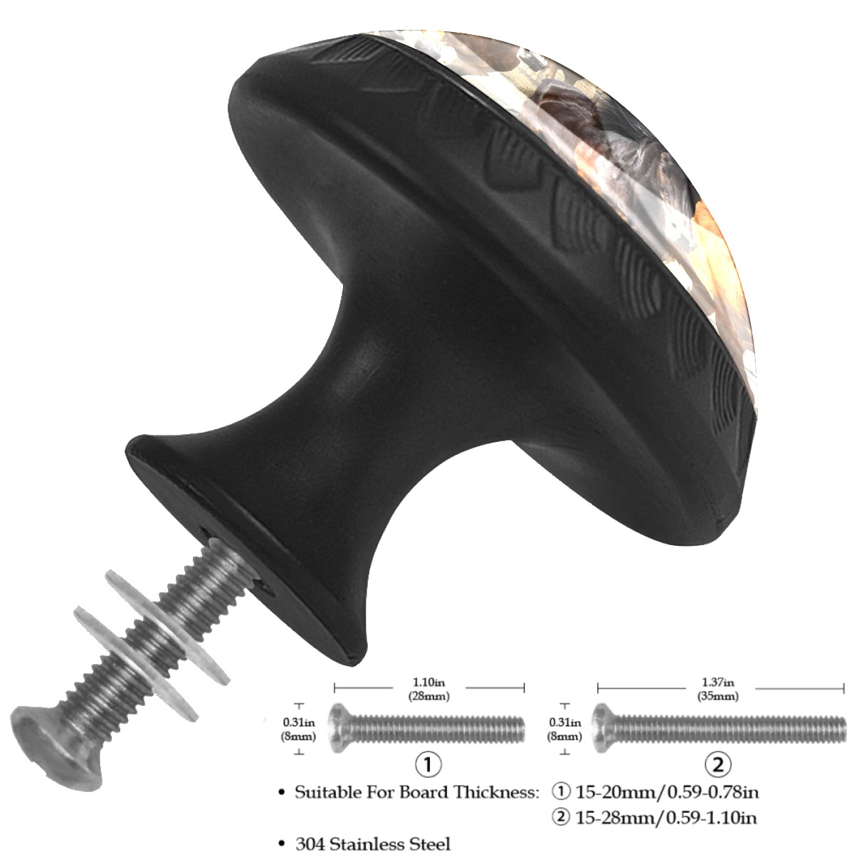 <p><b>Package Includes:</b></p> <p>Drawer Knobs x 4</p> <p>1.10 Inches Mounting Screws x 4</p> <p>1.37 Inches Mounting Screws x 4</p> <p><br></p> <p>Crystal Glass Diameter: 1.37 inches (35mm)</p> <p>Knob Height: 1.10 inches (28mm)</p> <p>Base Diameter: 0.66 inches (17mm)</p> <p><br></p> <p><b>Practical and Aesthetic:</b></p> <p>The cute drawer pulls combine the durability of an ABS base with the high transparency of glass, enhanced by unique patterns that add decoration and cuteness. It’s both practical and visually appealing.</p> <p><b>Pattern Design:</b></p> <p>Clear patterns add decoration and personalization. They enhance visual appeal and can match different home styles, meeting diverse design needs.</p> <p><b>Easy Installation:</b></p> <p>Equipped with mounting screws, the ABS base can be securely attached to the drawer with ease.</p> <p><b>Easy Cleaning:</b></p> <p>The smooth surface of the round glass pull resists dust and stains, making it easy to clean with just a damp cloth.</p> <p><b>Wear-Resistant:</b></p> <p>The cabinet knobs are designed to resist scratches and fading, maintaining their good appearance over long-term use.</p>