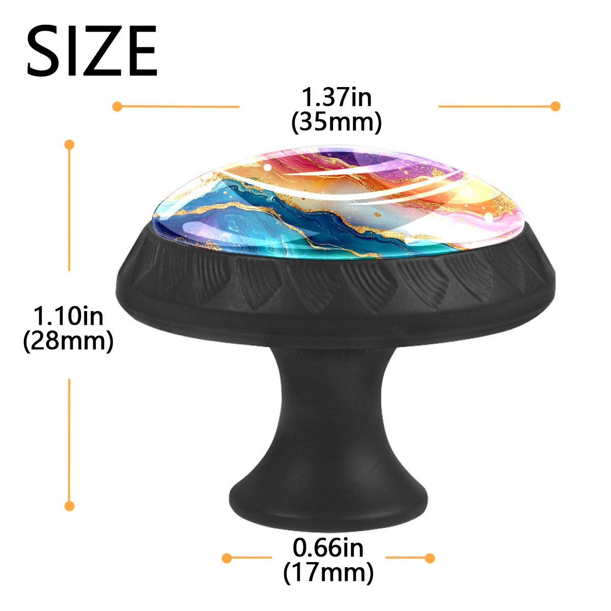 <p><b>Package Includes:</b></p> <p>Drawer Knobs x 4</p> <p>1.10 Inches Mounting Screws x 4</p> <p>1.37 Inches Mounting Screws x 4</p> <p><br></p> <p>Crystal Glass Diameter: 1.37 inches (35mm)</p> <p>Knob Height: 1.10 inches (28mm)</p> <p>Base Diameter: 0.66 inches (17mm)</p> <p><br></p> <p><b>Practical and Aesthetic:</b></p> <p>The cute drawer pulls combine the durability of an ABS base with the high transparency of glass, enhanced by unique patterns that add decoration and cuteness. It’s both practical and visually appealing.</p> <p><b>Pattern Design:</b></p> <p>Clear patterns add decoration and personalization. They enhance visual appeal and can match different home styles, meeting diverse design needs.</p> <p><b>Easy Installation:</b></p> <p>Equipped with mounting screws, the ABS base can be securely attached to the drawer with ease.</p> <p><b>Easy Cleaning:</b></p> <p>The smooth surface of the round glass pull resists dust and stains, making it easy to clean with just a damp cloth.</p> <p><b>Wear-Resistant:</b></p> <p>The cabinet knobs are designed to resist scratches and fading, maintaining their good appearance over long-term use.</p>