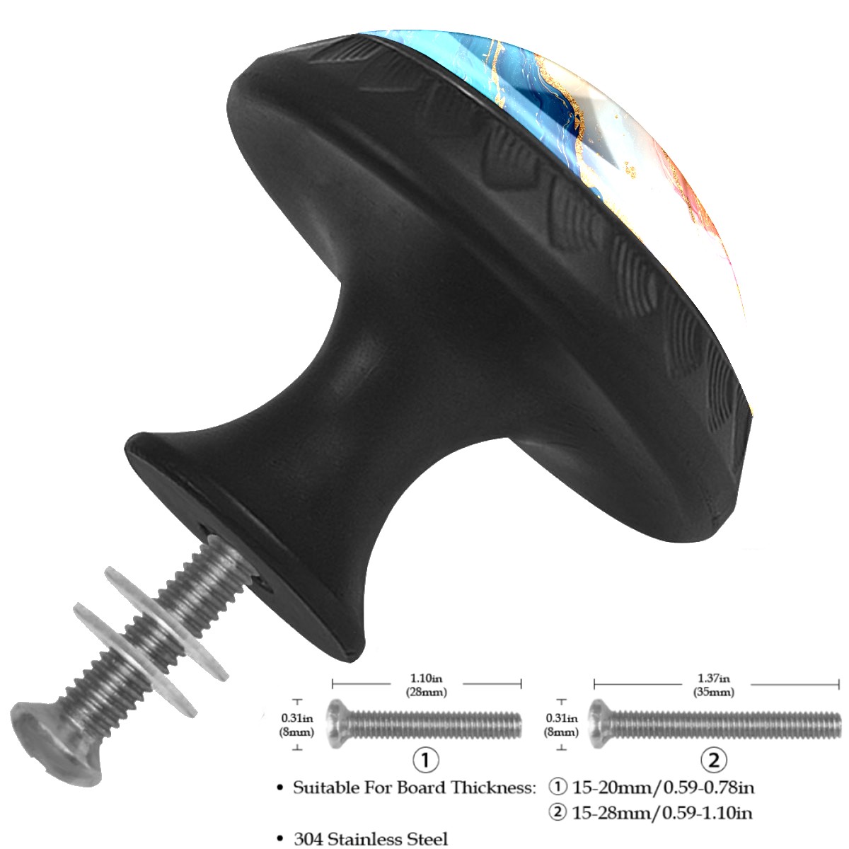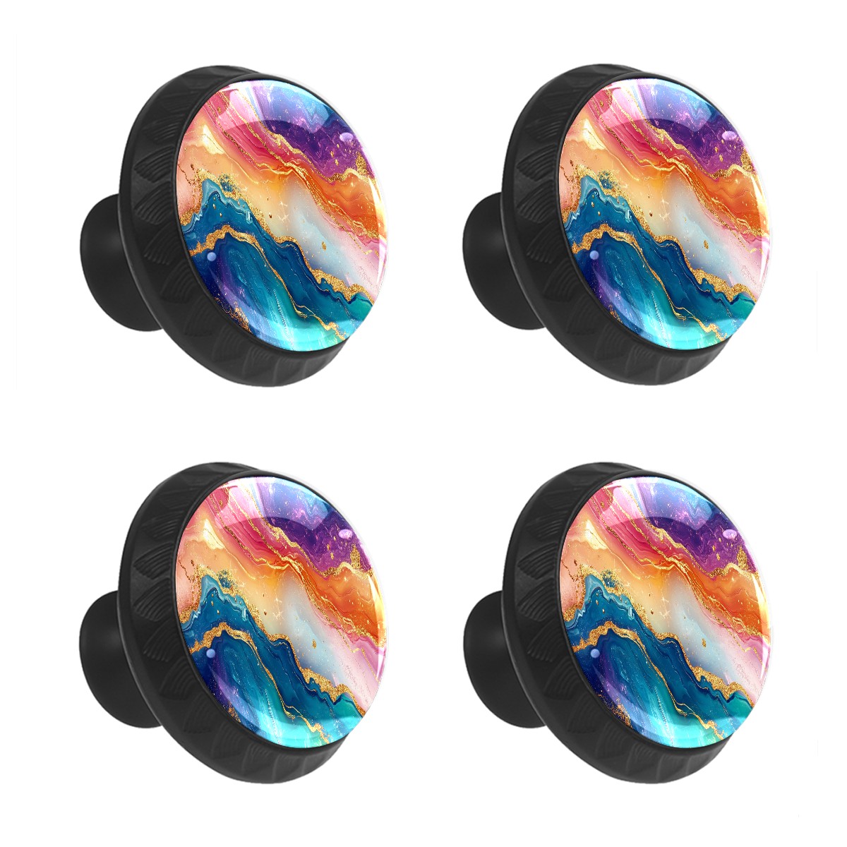4 Pack Cabinet Knobs Colorful Marble (1) Drawer Pulls Black Crystal Glass Knobs for Dresser Kitchen Bathroom Cabinet Cupboard Wardrobe Pulls Handles Round