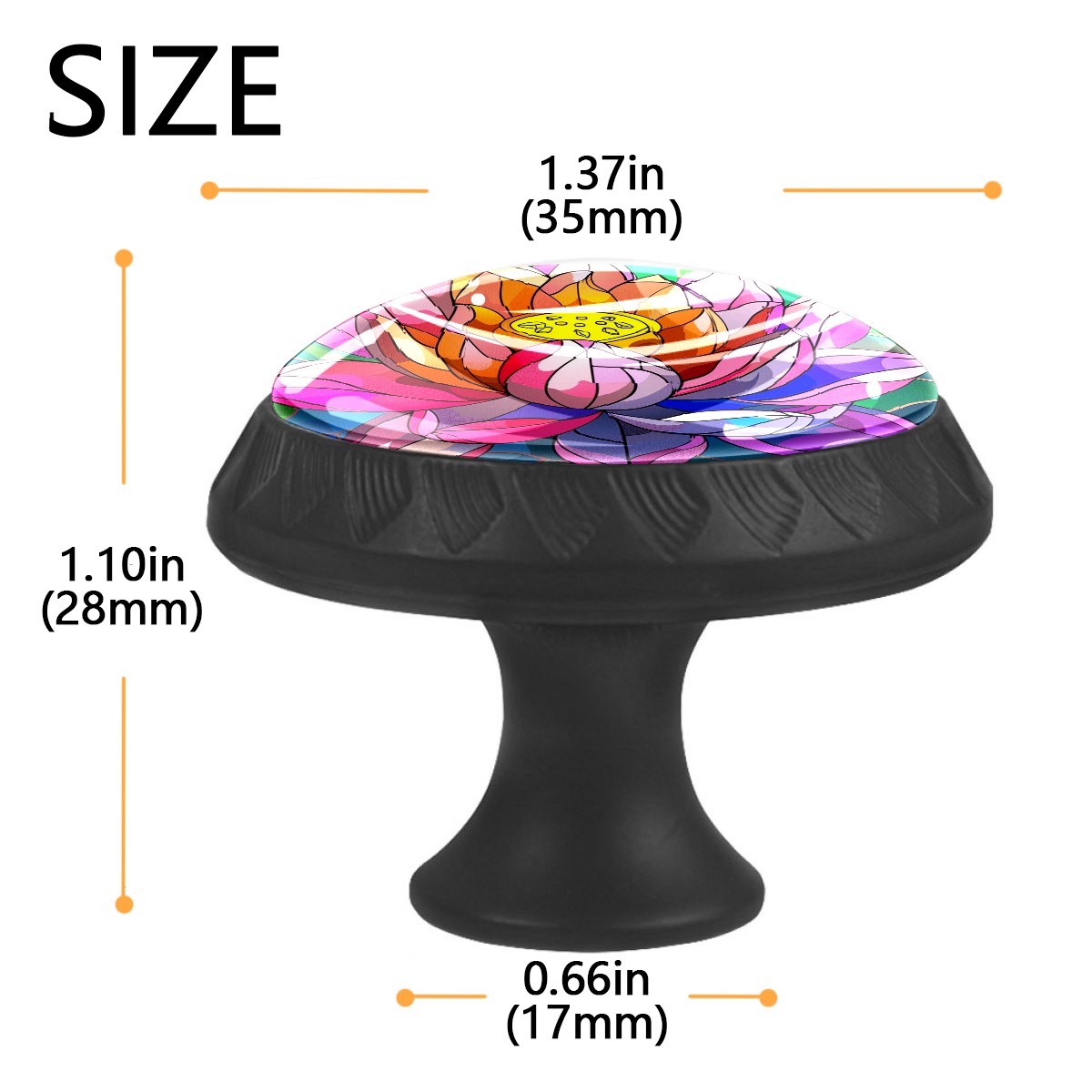 <p><b>Package Includes:</b></p> <p>Drawer Knobs x 4</p> <p>1.10 Inches Mounting Screws x 4</p> <p>1.37 Inches Mounting Screws x 4</p> <p><br></p> <p>Crystal Glass Diameter: 1.37 inches (35mm)</p> <p>Knob Height: 1.10 inches (28mm)</p> <p>Base Diameter: 0.66 inches (17mm)</p> <p><br></p> <p><b>Practical and Aesthetic:</b></p> <p>The cute drawer pulls combine the durability of an ABS base with the high transparency of glass, enhanced by unique patterns that add decoration and cuteness. It’s both practical and visually appealing.</p> <p><b>Pattern Design:</b></p> <p>Clear patterns add decoration and personalization. They enhance visual appeal and can match different home styles, meeting diverse design needs.</p> <p><b>Easy Installation:</b></p> <p>Equipped with mounting screws, the ABS base can be securely attached to the drawer with ease.</p> <p><b>Easy Cleaning:</b></p> <p>The smooth surface of the round glass pull resists dust and stains, making it easy to clean with just a damp cloth.</p> <p><b>Wear-Resistant:</b></p> <p>The cabinet knobs are designed to resist scratches and fading, maintaining their good appearance over long-term use.</p>