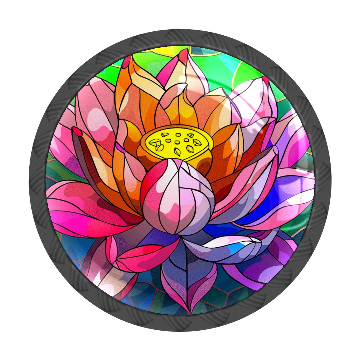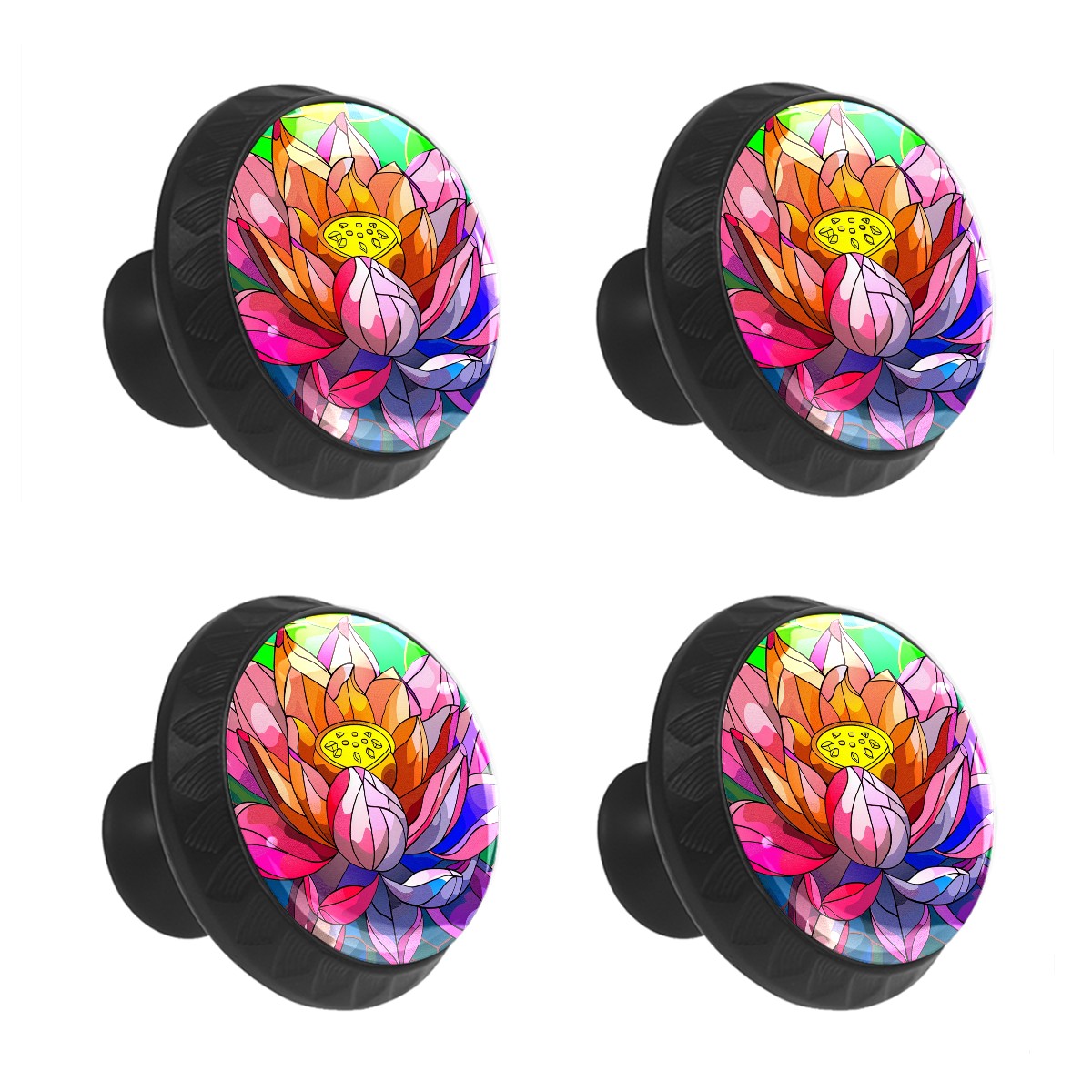 4 Pack Cabinet Knobs Stained Glass Colorful Lotus Drawer Pulls Black Crystal Glass Knobs for Dresser Kitchen Bathroom Cabinet Cupboard Wardrobe Pulls Handles Round