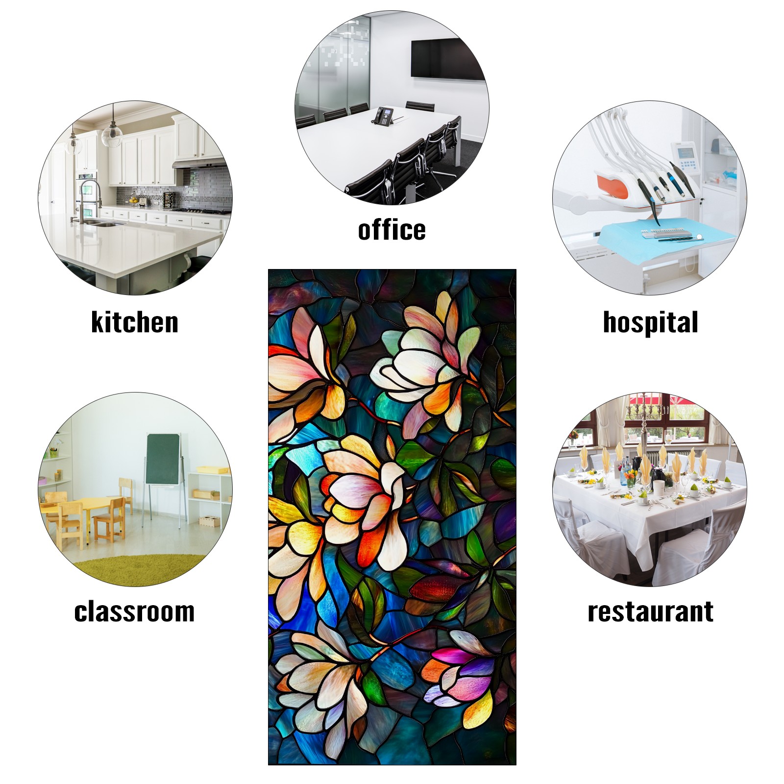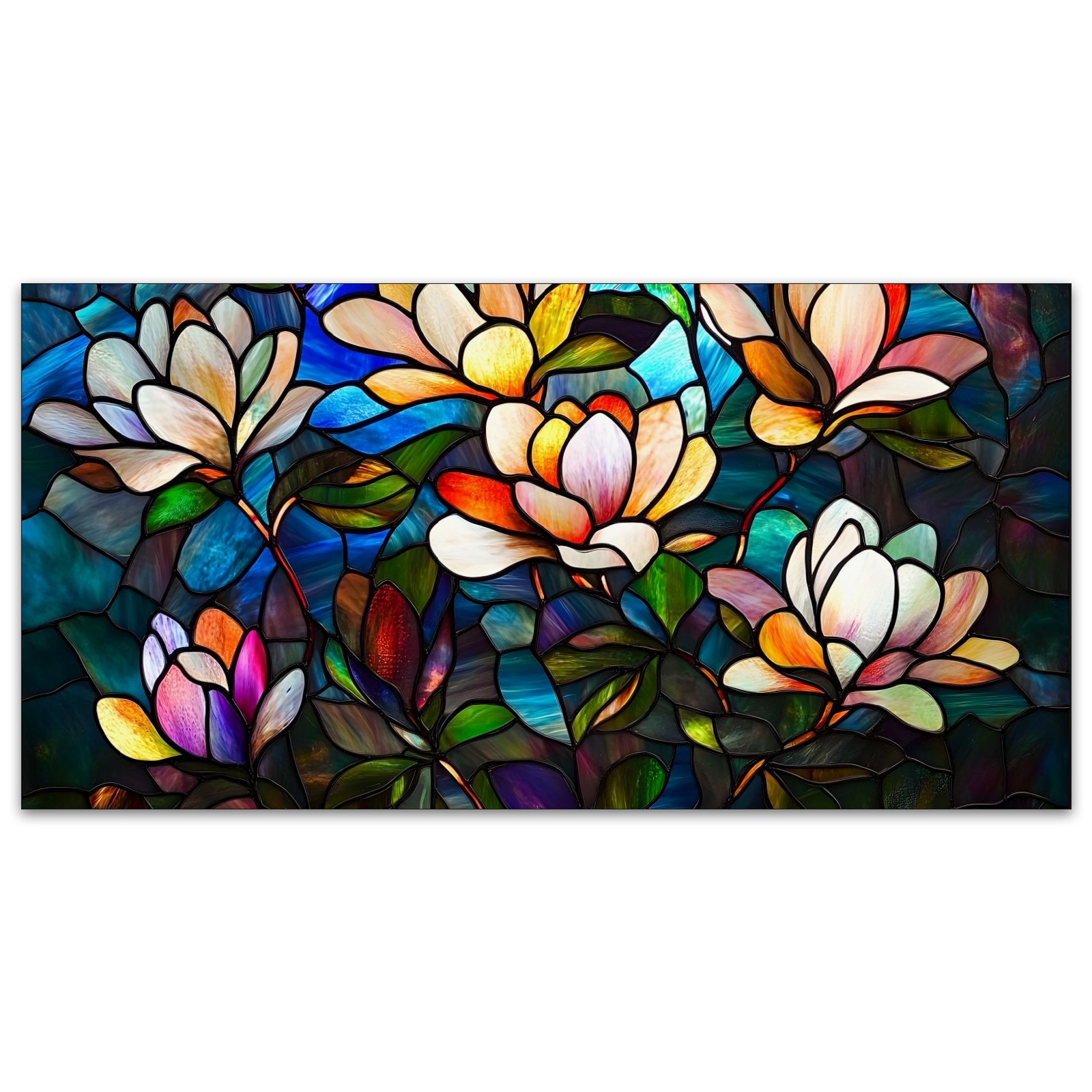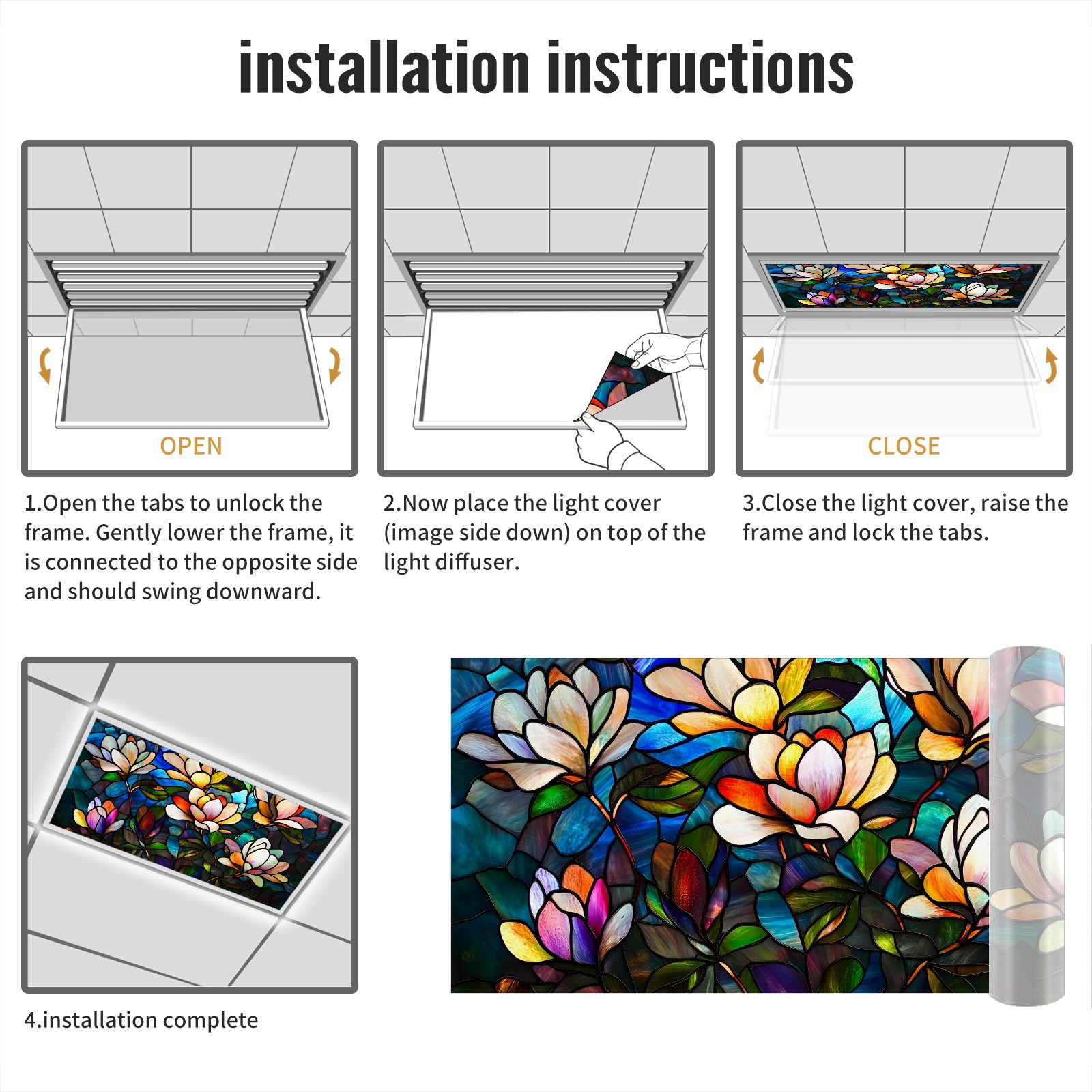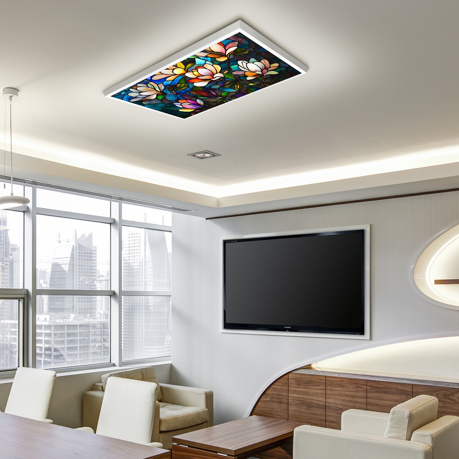 MSINMKOK Stained Glass Magnolia Flowers Fluorescent Light Covers for Ceiling Lights Classroom Office Decorative Drop Ceiling Light Cover Filters Hospital Home Ceiling Decor 47.2'' x 23.6''