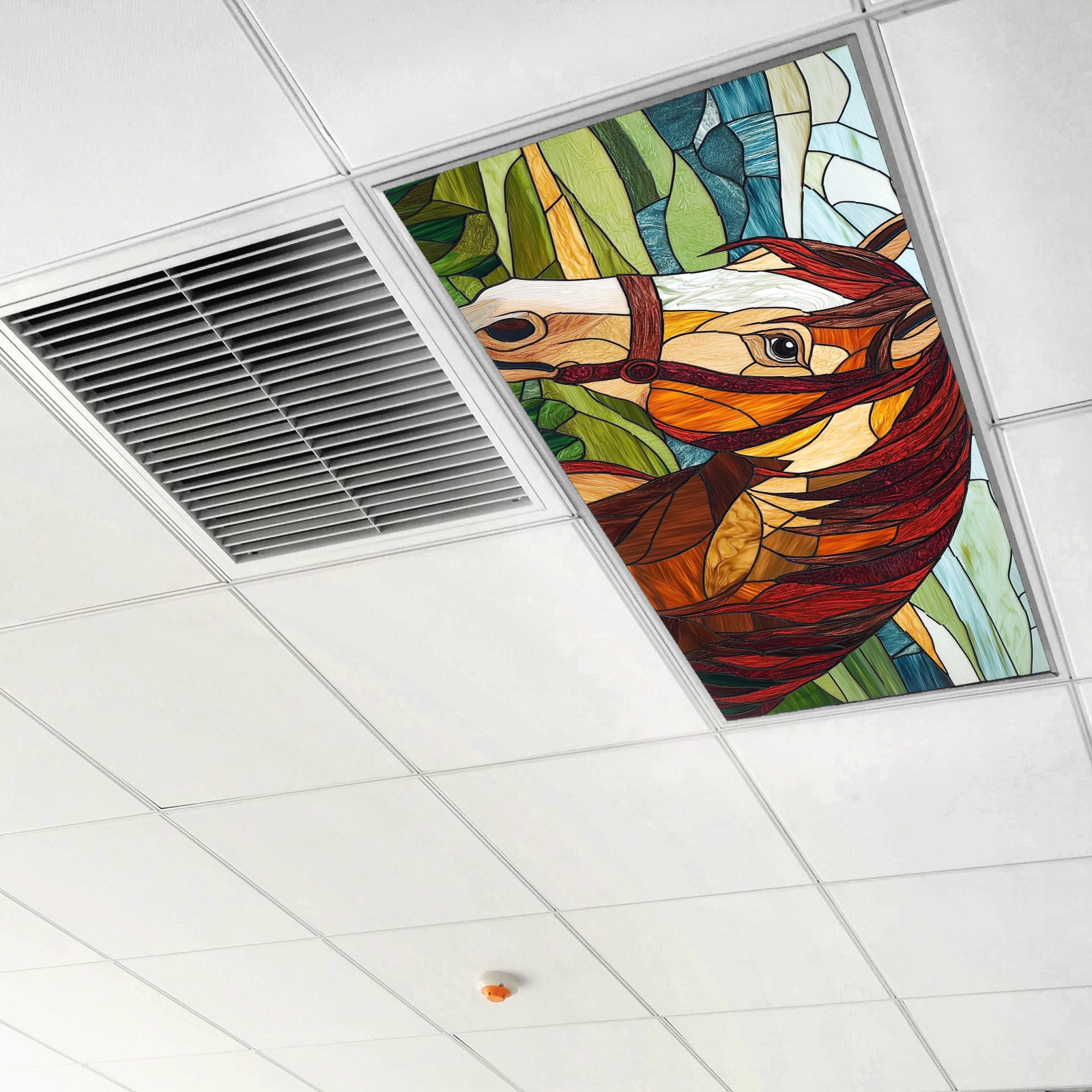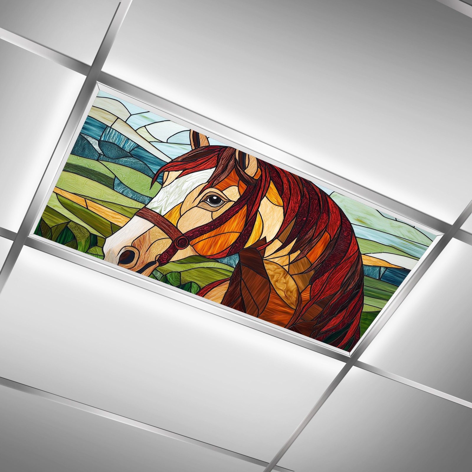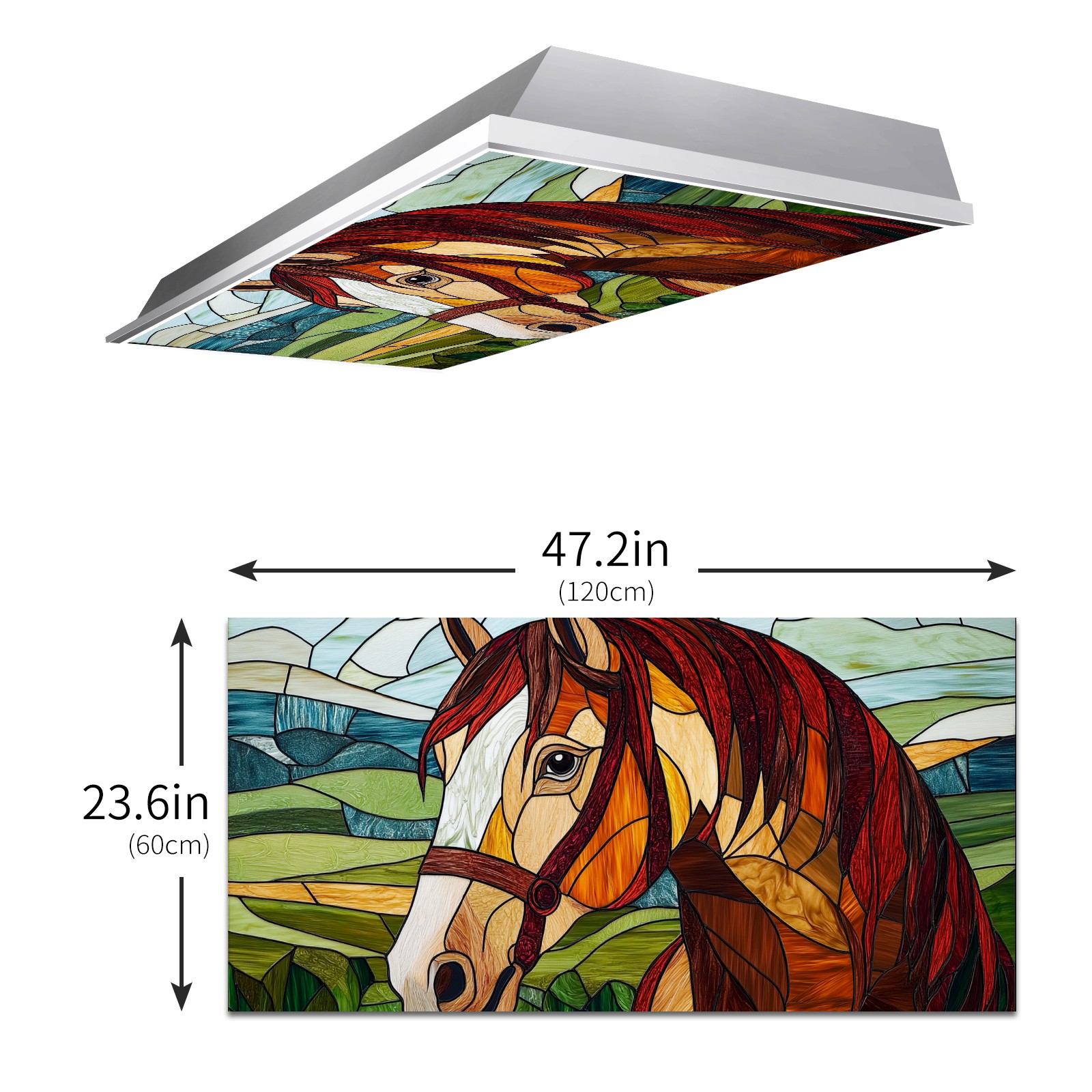 MSINMKOK Stained Glass Horse Brown Fluorescent Light Covers for Ceiling Lights Classroom Office Decorative Drop Ceiling Light Cover Filters Hospital Home Ceiling Decor 47.2'' x 23.6''