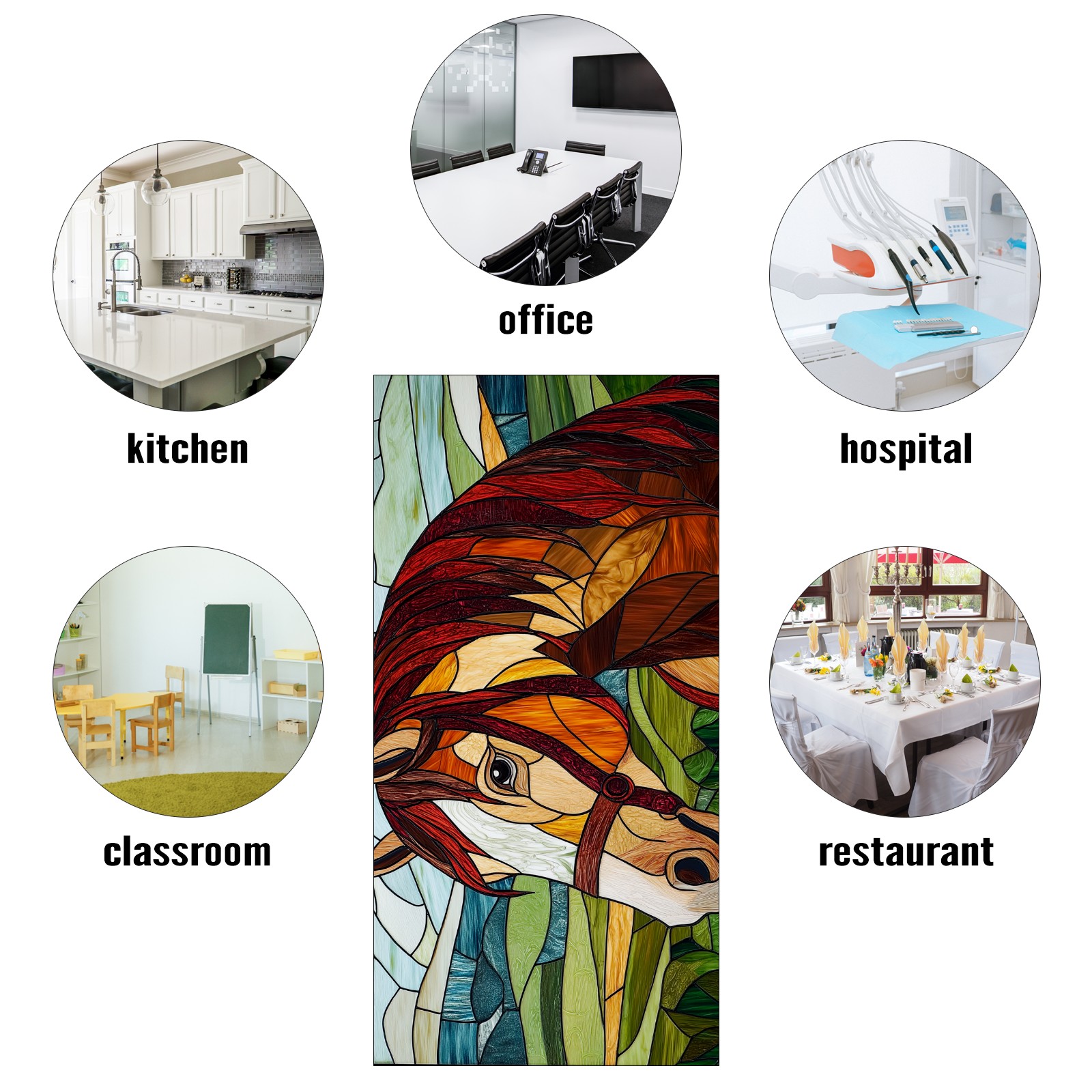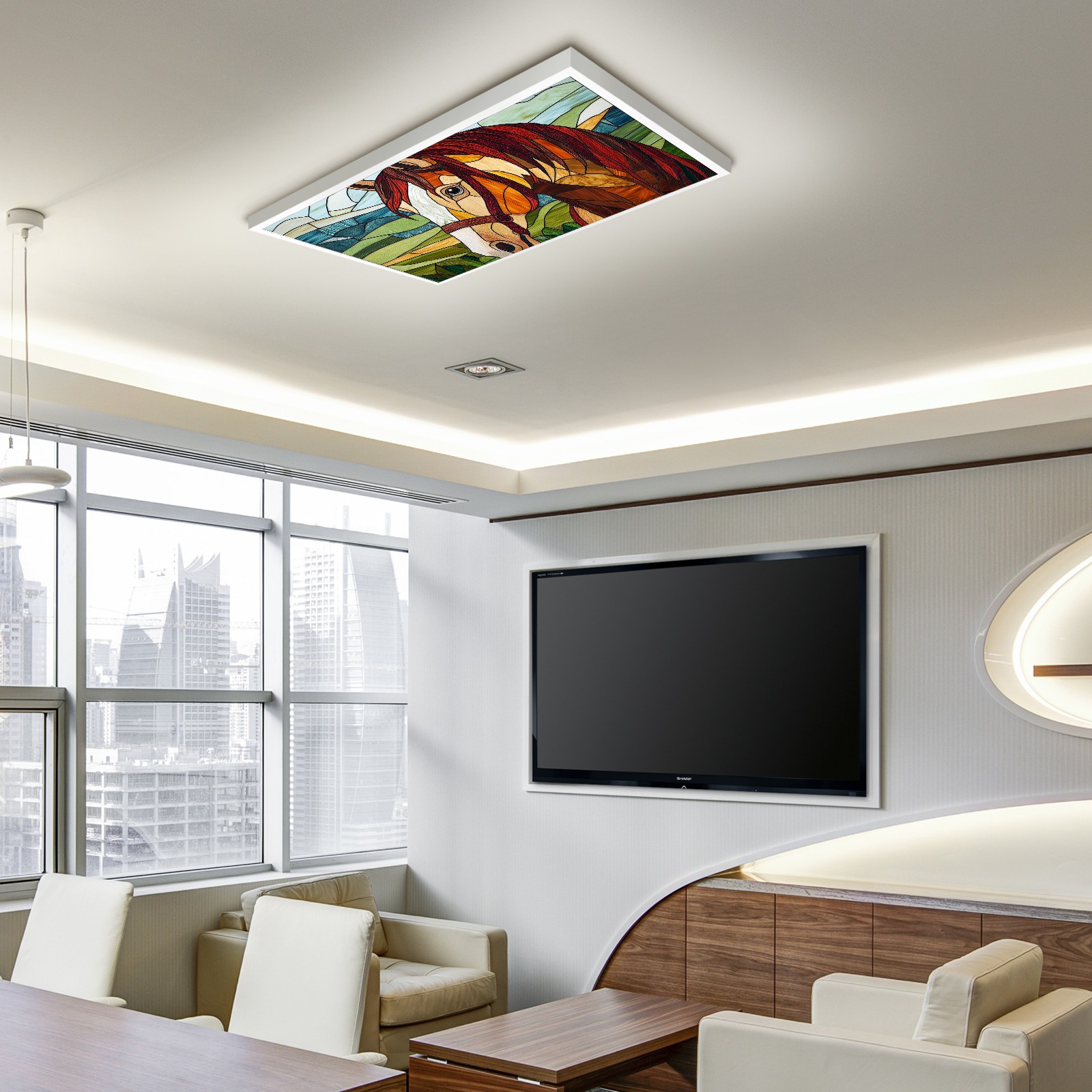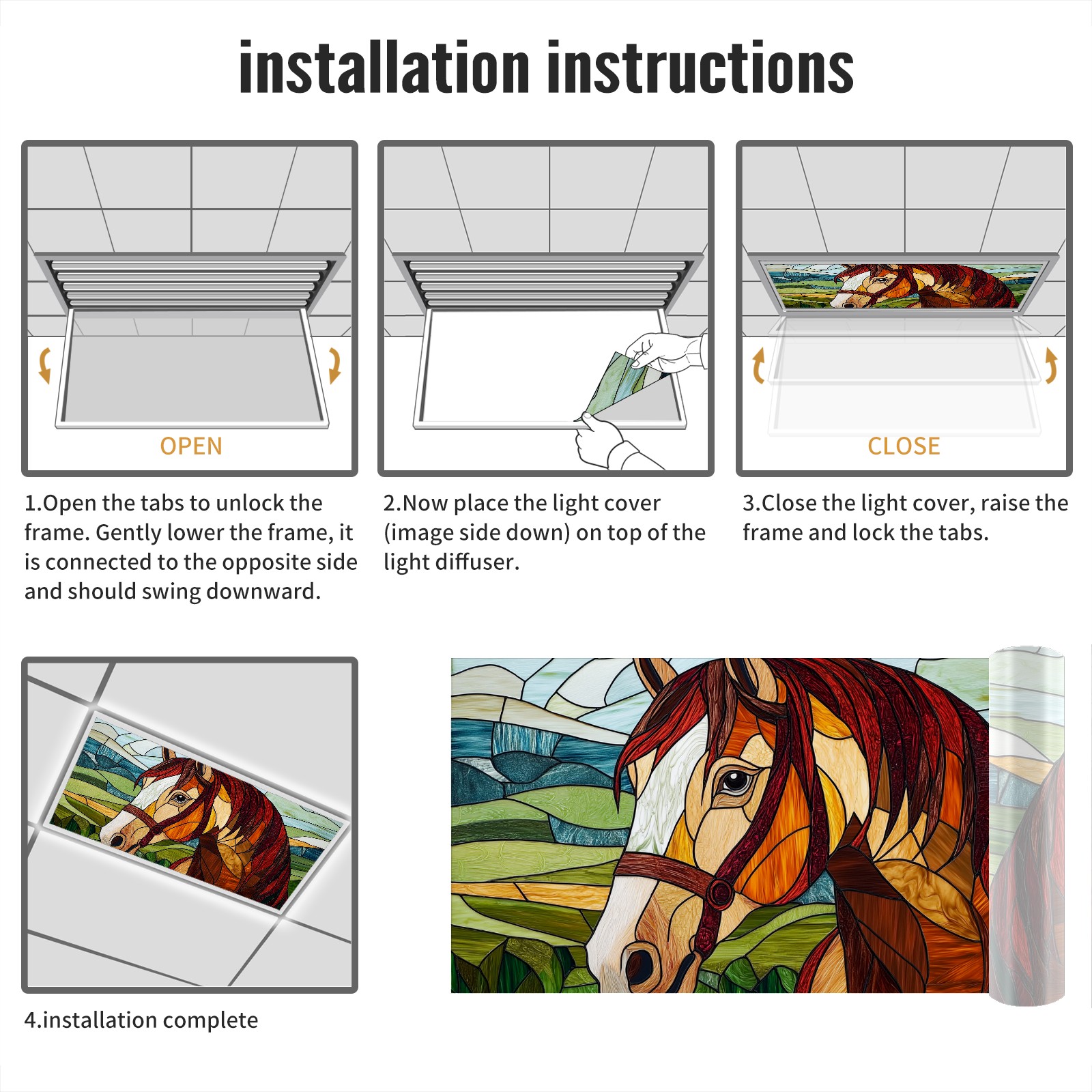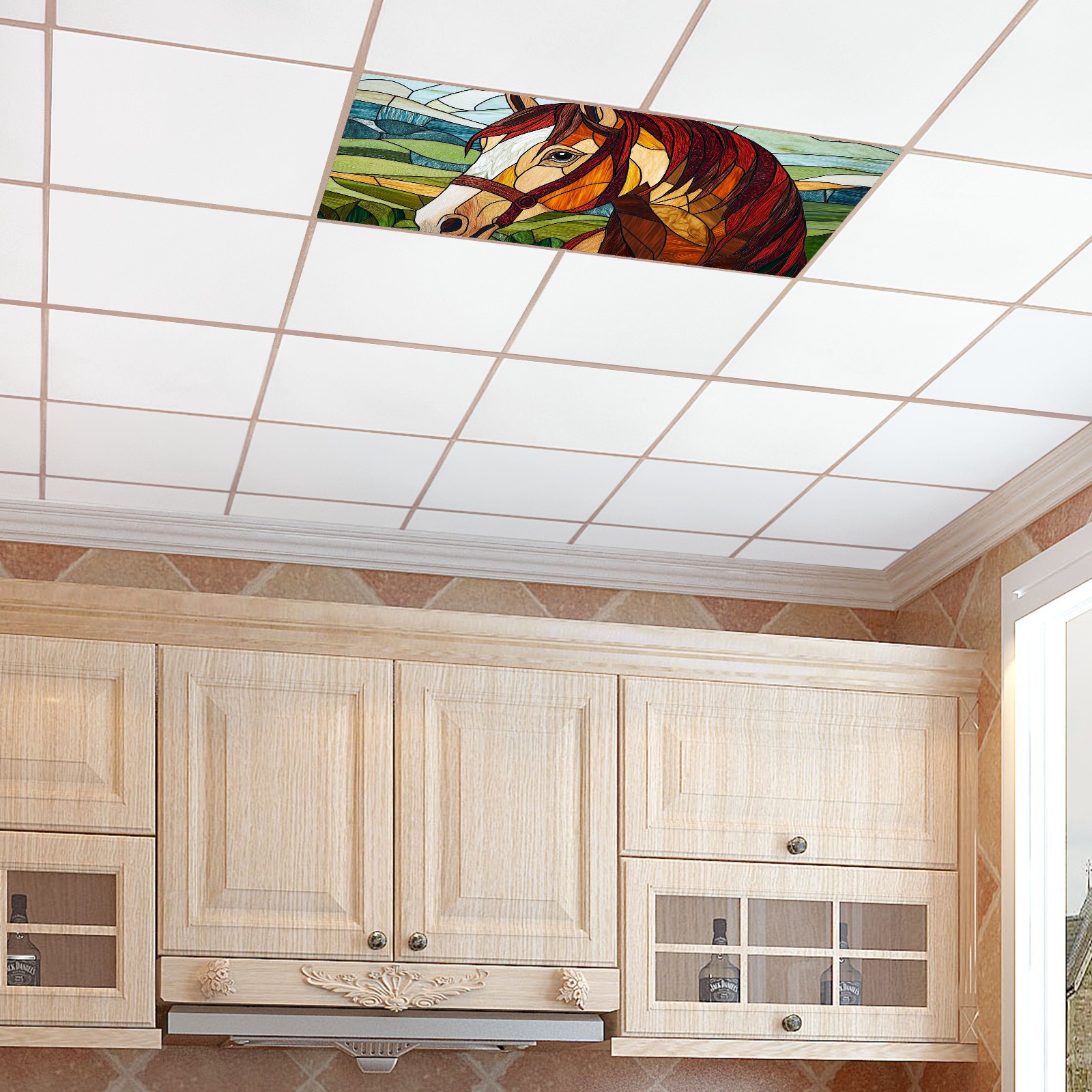 MSINMKOK Stained Glass Horse Brown Fluorescent Light Covers for Ceiling Lights Classroom Office Decorative Drop Ceiling Light Cover Filters Hospital Home Ceiling Decor 47.2'' x 23.6''