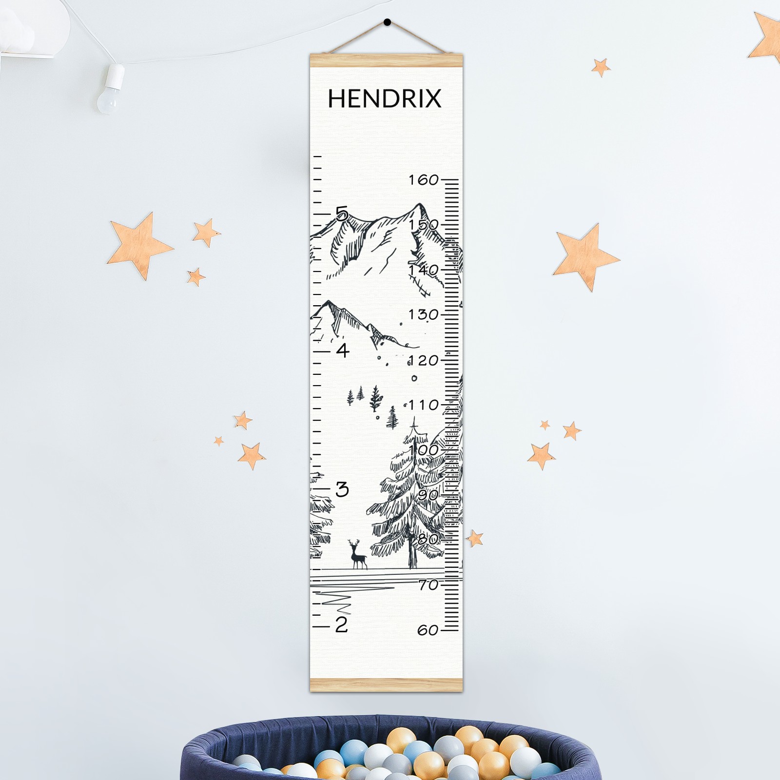 Personalized Kids Name Growth Chart Ruler for Wall Wood Frame Canvas Height Measure Chart 13.4x56 in Hanging Growth Chart Winter Mountain3.12 Boys Girls Room Decor