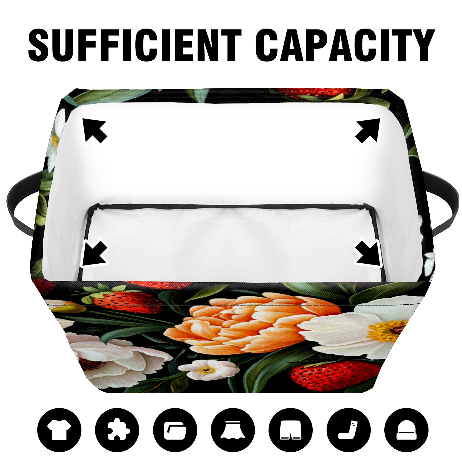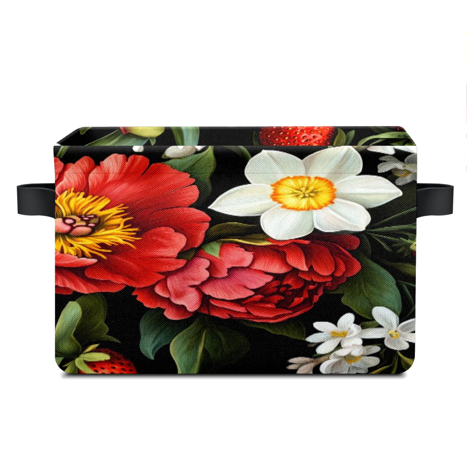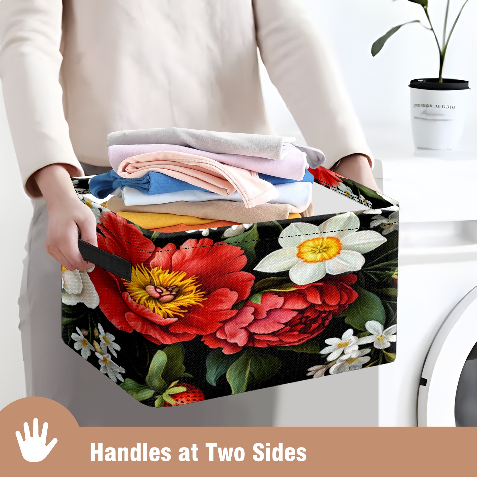 MSINMKOK Storage Basket Garden Flowers On Black Large Shelves Storage Baskets for Organizing with Handles Collapsible Fabric Storage Cubes Organizer Bin for Toy Cloth Home Storage