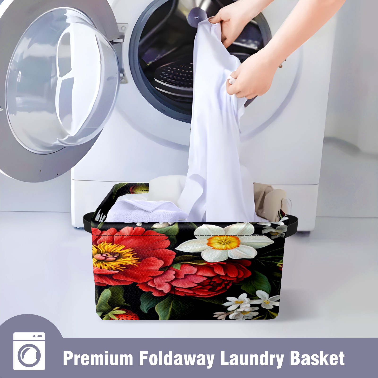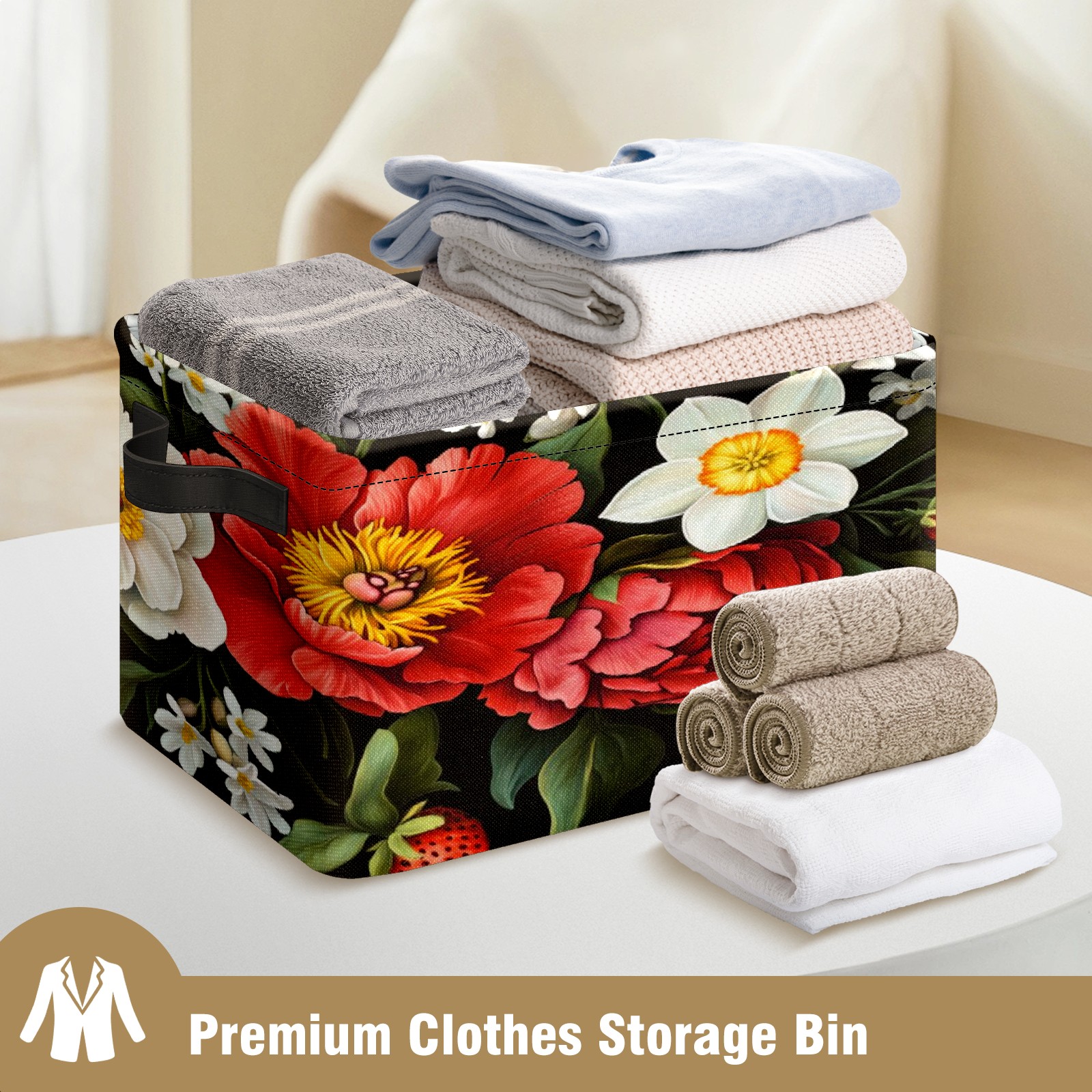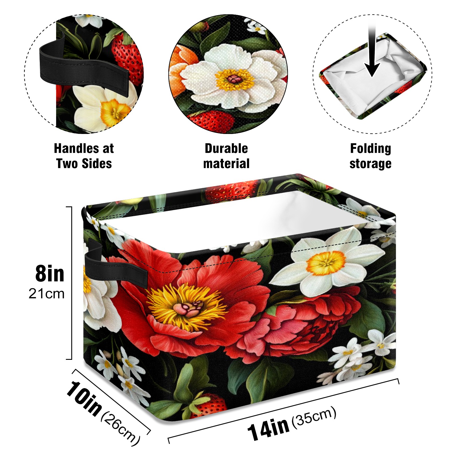 MSINMKOK Storage Basket Garden Flowers On Black Large Shelves Storage Baskets for Organizing with Handles Collapsible Fabric Storage Cubes Organizer Bin for Toy Cloth Home Storage