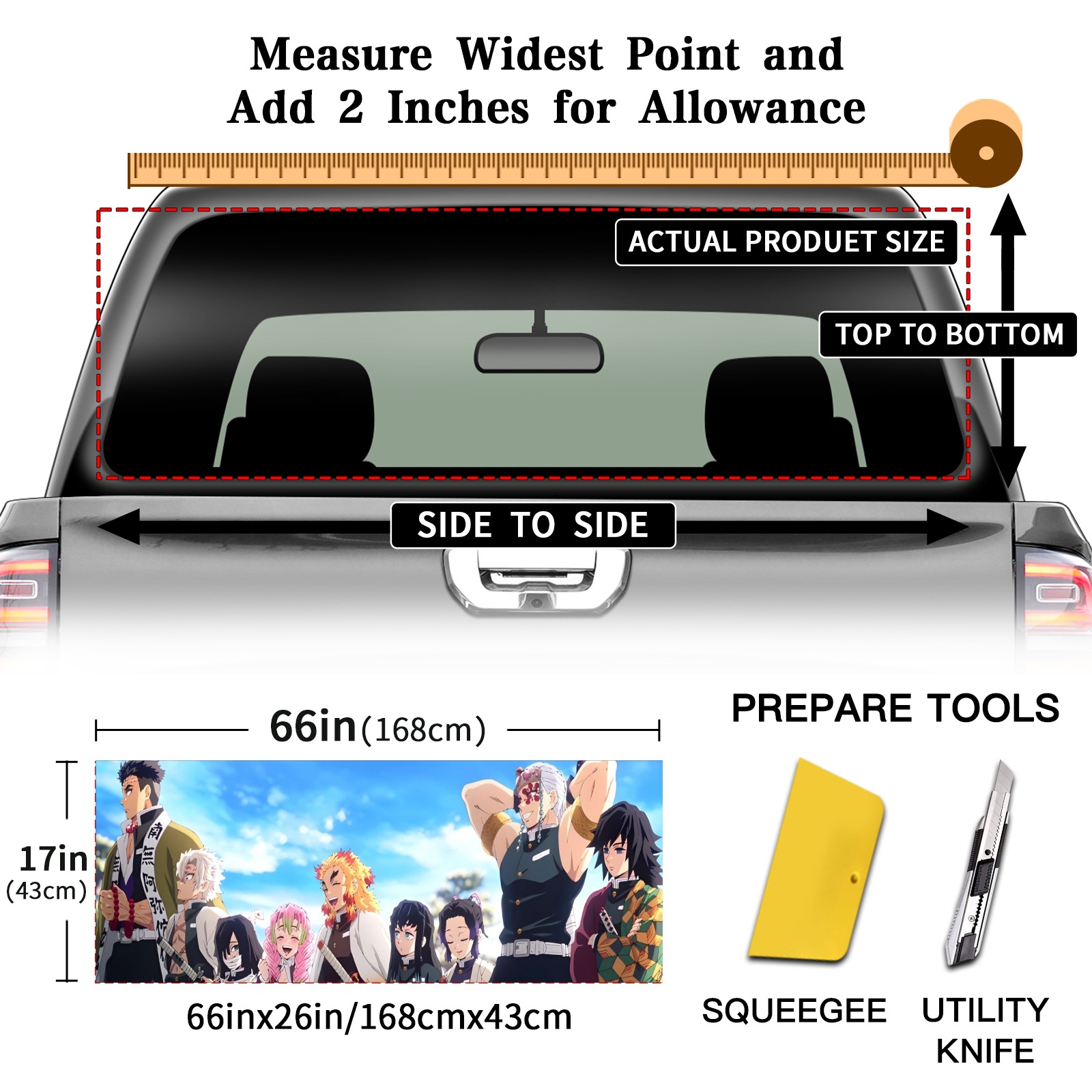 • <p><strong>Truck Rear Window Graphics Decals Pickup Trucks Back Window Film Stickers 66" x 22" Perforated Vinyl Wrap Stickers Decorations for Car Rear Window</strong></p><p><strong><br /></strong></p><p><strong>Features :</strong></p><p>- Size of the rear window decals for trucks is 66x22 Inches (168x56cm).</p><p>- High quality perforated vinyl window film, one way vision sticker.</p><p>- Perforated is see through from the inside but not from outside.</p><p>- Clear printing, waterproof and durable.</p><p>- The car back window graphics stickers fits most truck and makes your vehicle more beautiful.&nbsp;</p><p><br /></p><p><strong>【Installation Instructions】</strong></p><p><strong>1. CLEAN SURFACE -</strong> Clean the rear window thoroughly and make sure the surface clean.</p><p><strong>2. STICK THE DECALS -</strong> Tear off the paper on the back and stick the decal on the window.</p><p><strong>3. SCRAPE OFF AIR BUBBLES -</strong> Use a squeegee or other card to scrape off the excess air bubbles.</p><p><strong>4. TRIM THE EXCESS -</strong> Use a knife to cut off the excess stickers of the window, finally complete.</p><p><br /></p><p>1. Please measure the size before purchasing, back window graphics decal for truck can be cut to your desired size.</p><p>2.The graphics stickers for truck back window is a great gift for yourself also can as a birthday / halloween / christmas gift for your friends and family.</p>