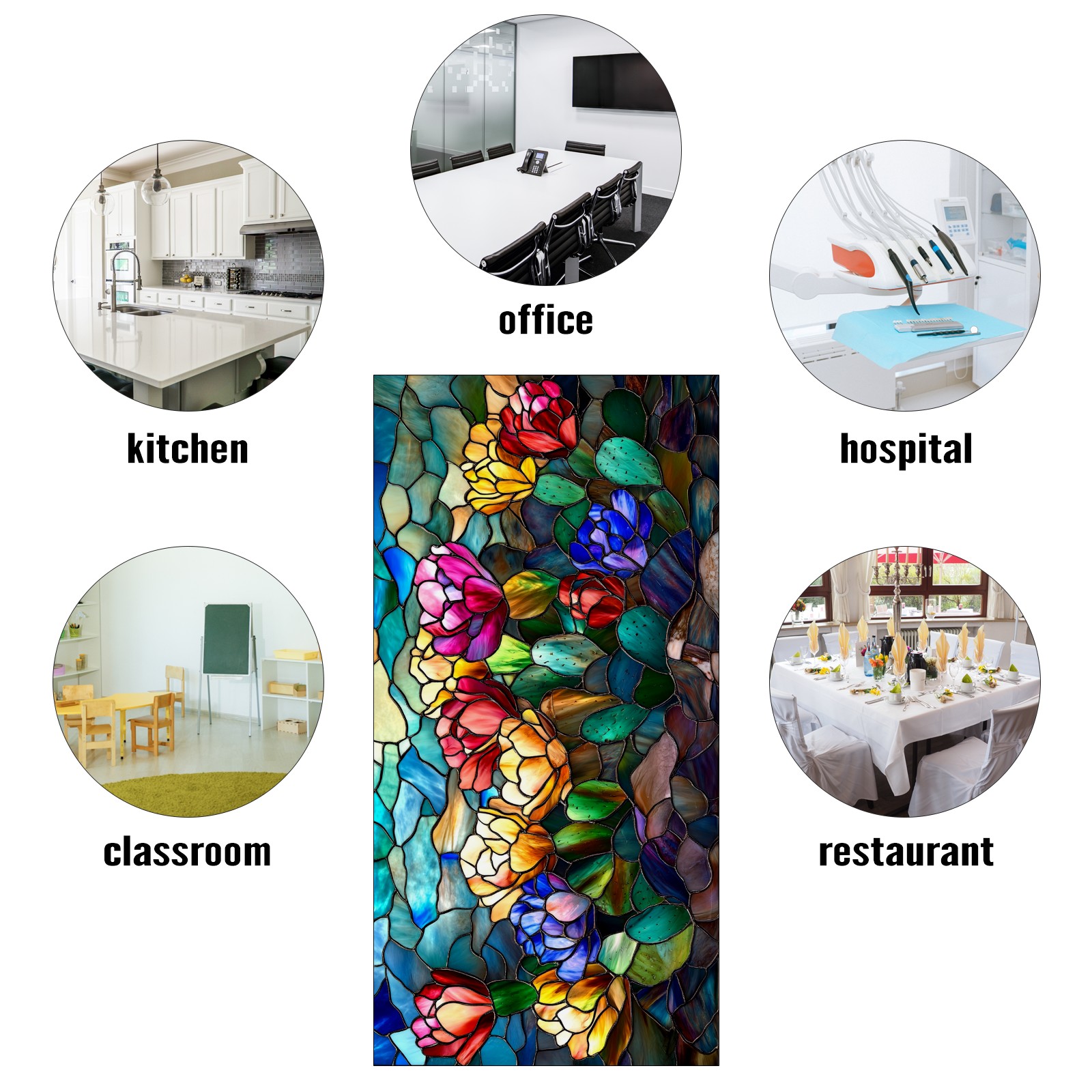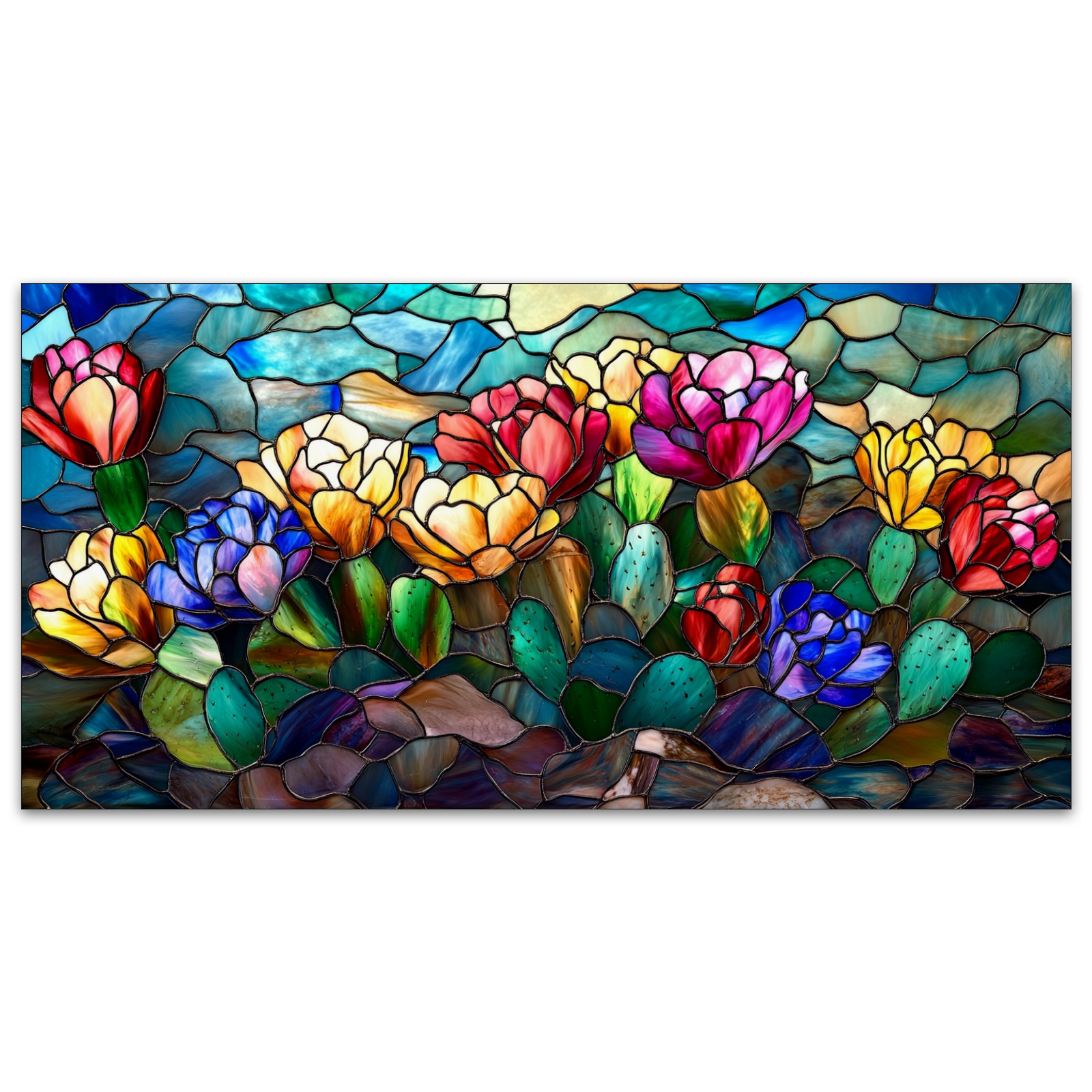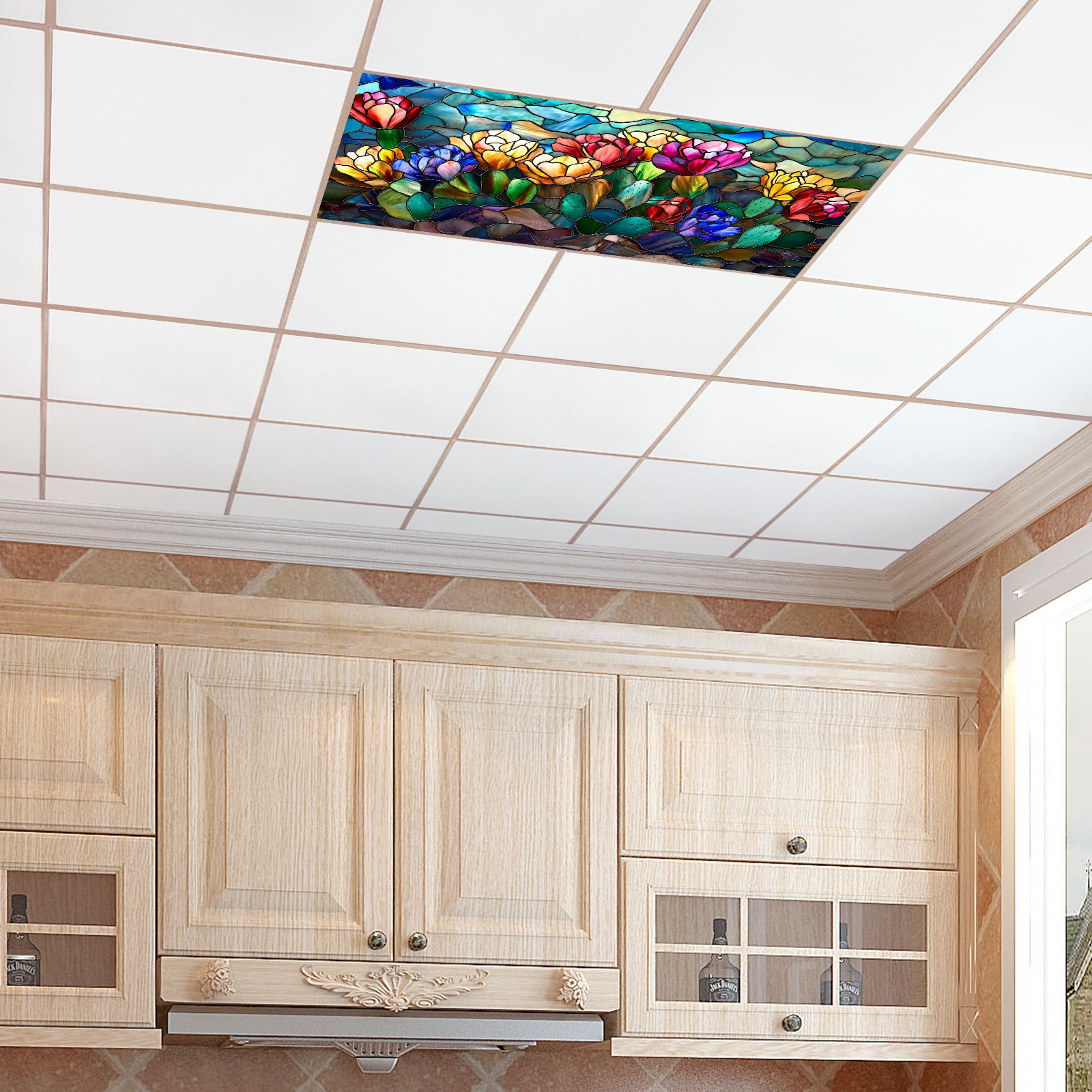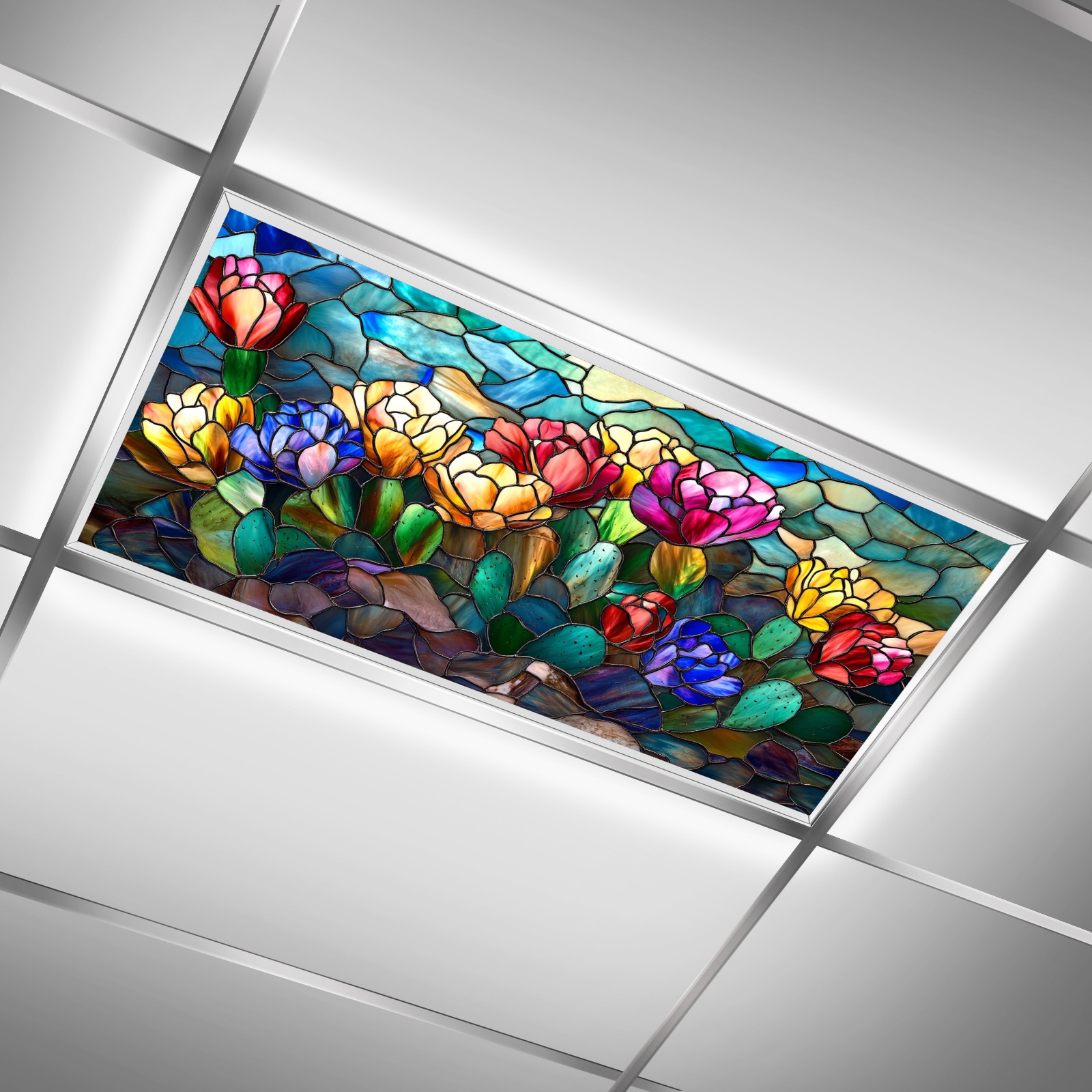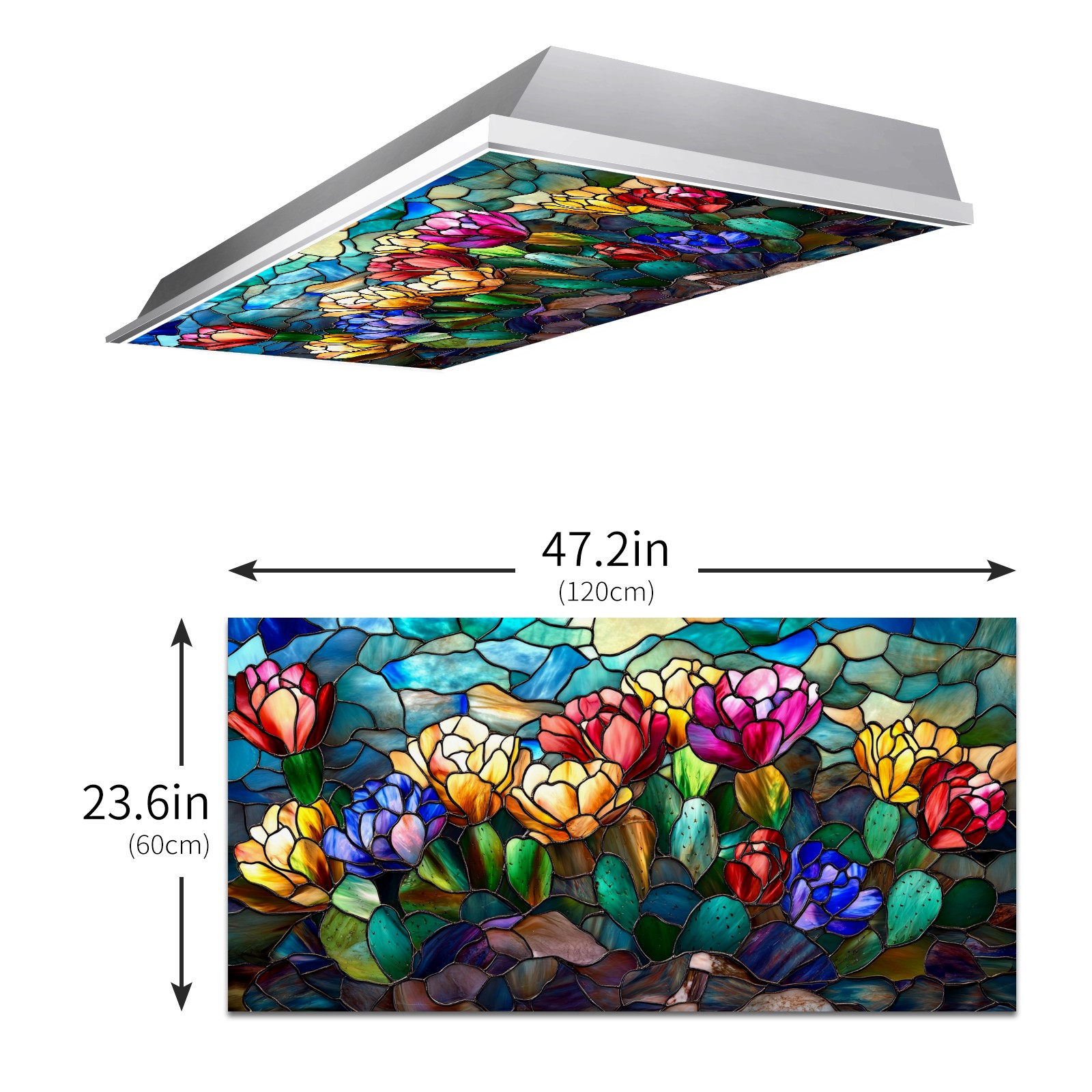 MSINMKOK Stained Glass Cactus Fluorescent Light Covers for Ceiling Lights Classroom Office Decorative Drop Ceiling Light Cover Filters Hospital Home Ceiling Decor 47.2'' x 23.6''