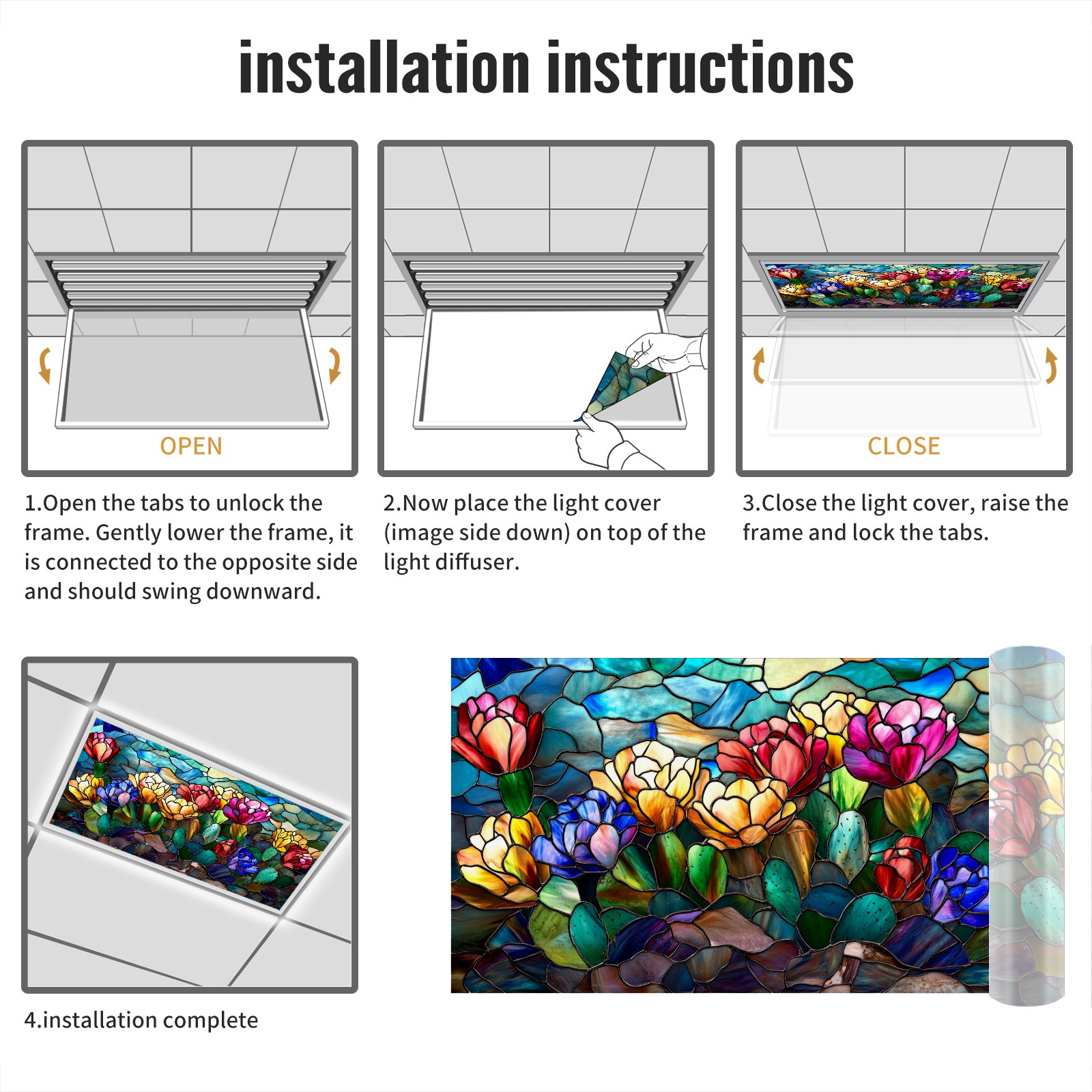 <p>Lights Fluorescent Light Covers for Classroom Office Ceiling Lights</p> <p>Size: 47.2'' x 23.6''. Standard 2x4 ft size can fit the Drop Ceiling Fluorescent Light.</p> <p>Material: Flexible PET Material (Not Fabric).&nbsp;</p> <p>Fluorescent Light Covers Features:</p> <p>1.Reducing Glare: The ceiling light cover effectively softens the harsh fluorescent light, reducing eye strain.</p> <p>2.Aesthetics: Decorative fluorescent light covers can be designed with a variety of patterns, enhancing the aesthetic appeal of the environment.</p> <p>3.Size adaptability: The light covers for ceiling can be slightly trimmed to fit ighting fixtures.</p> <p>4.Non-magnetic Design: The fluorescent light cover is non-magnetic and can be installed by inserting it into the panel. Alternatively, additional securing methods (such as double-sided tape) can be used to ensure a stable installation outside the panel.</p> <p>5.Suitable for most room,such as office, classroom, hostpital, library, clinics, playroom, nursery, kindergarten, school, hotel, bar, night club and so on.</p>