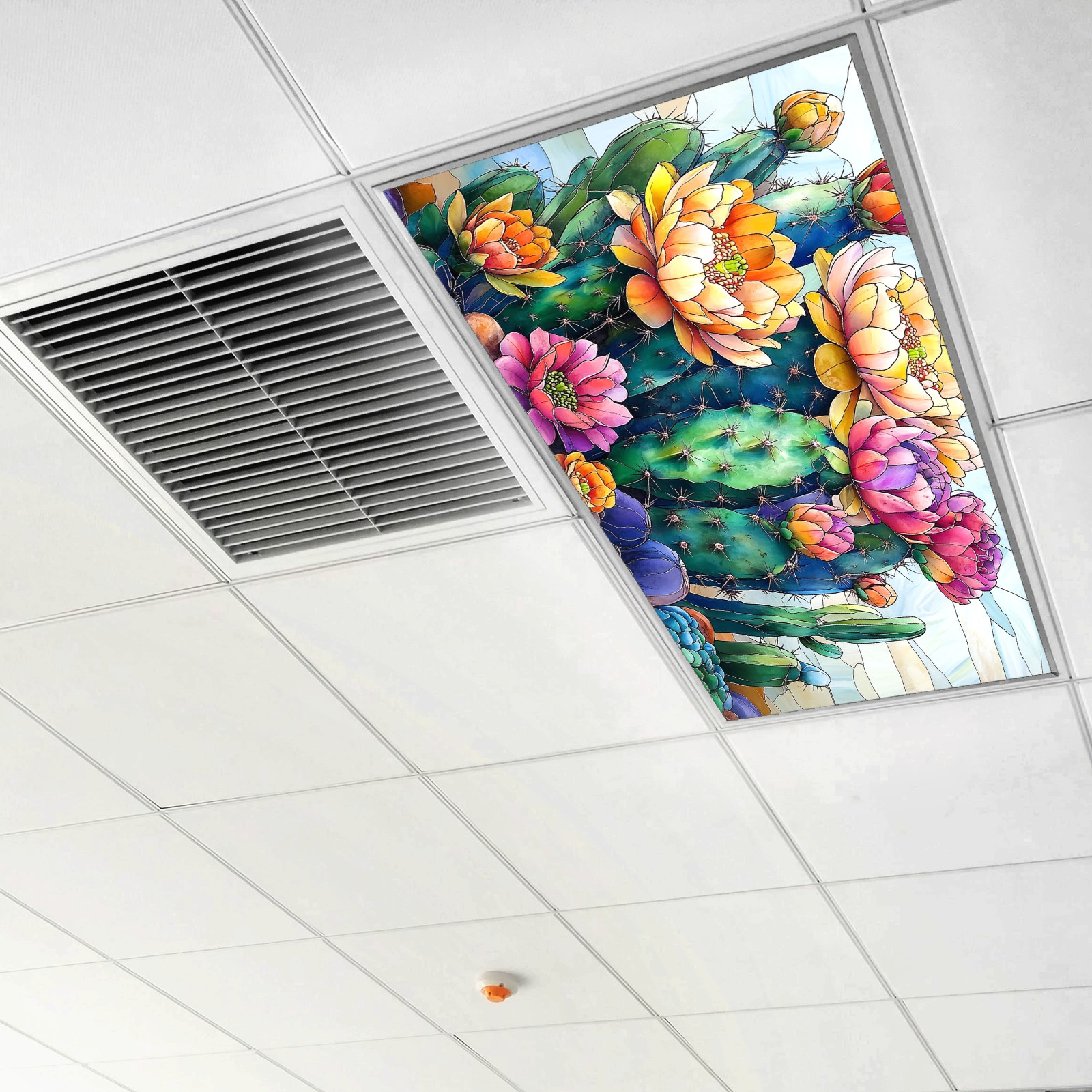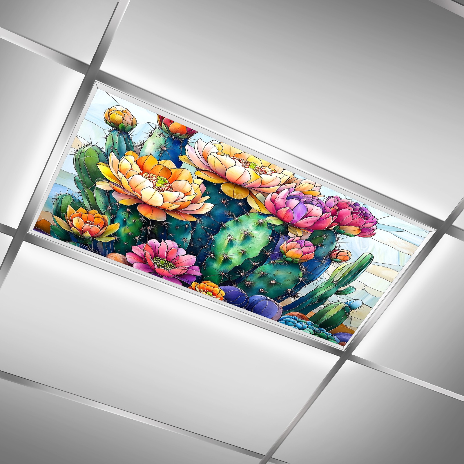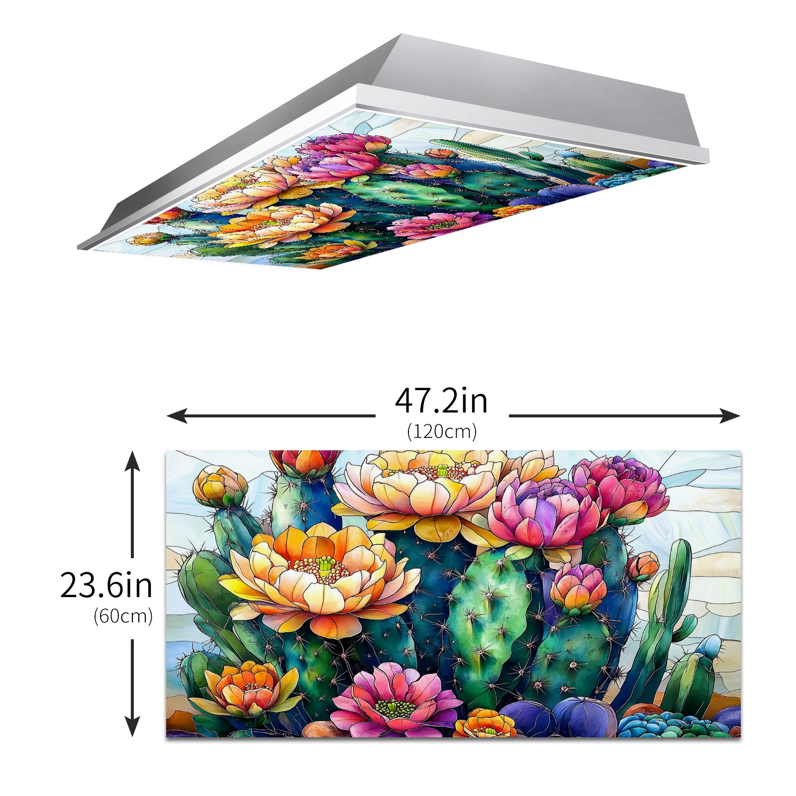 MSINMKOK Desert Cactus Flowers Fluorescent Light Covers for Ceiling Lights Classroom Office Decorative Drop Ceiling Light Cover Filters Hospital Home Ceiling Decor 47.2'' x 23.6''