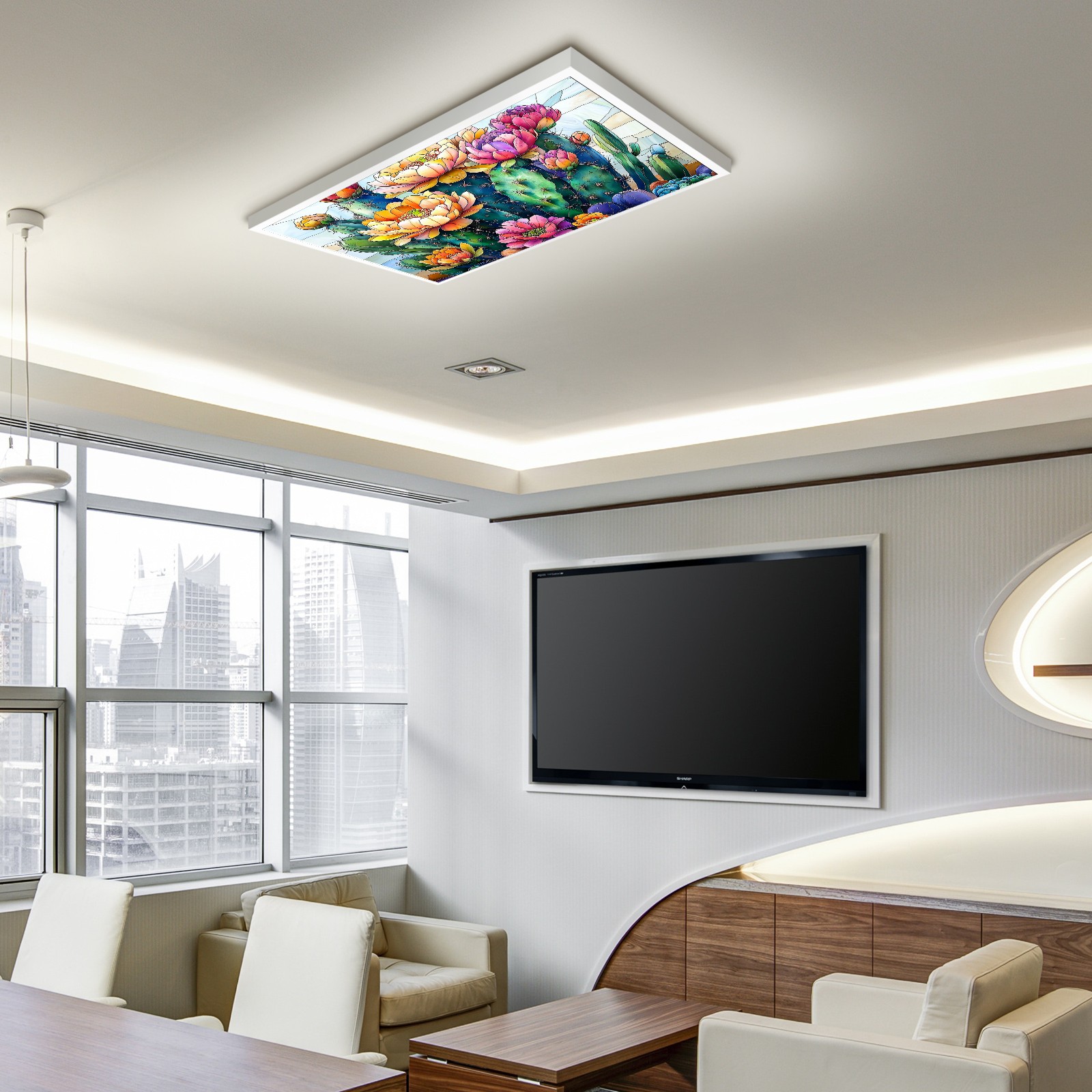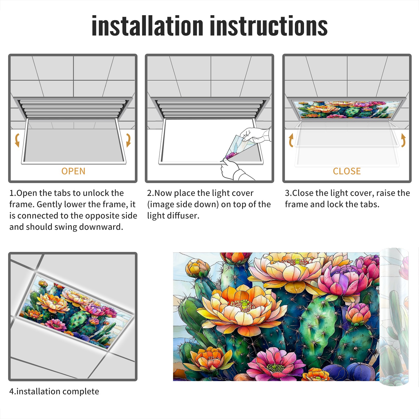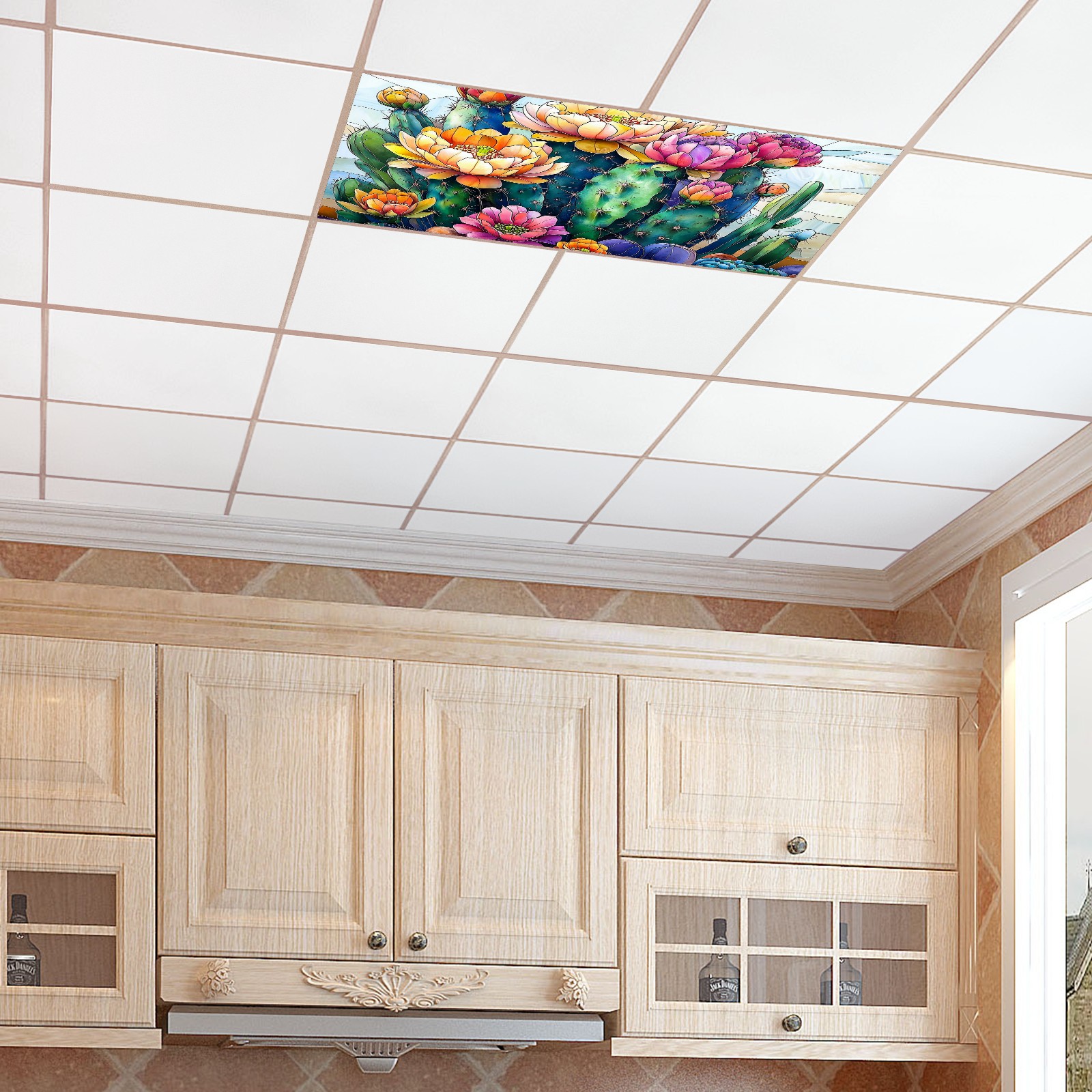 MSINMKOK Desert Cactus Flowers Fluorescent Light Covers for Ceiling Lights Classroom Office Decorative Drop Ceiling Light Cover Filters Hospital Home Ceiling Decor 47.2'' x 23.6''