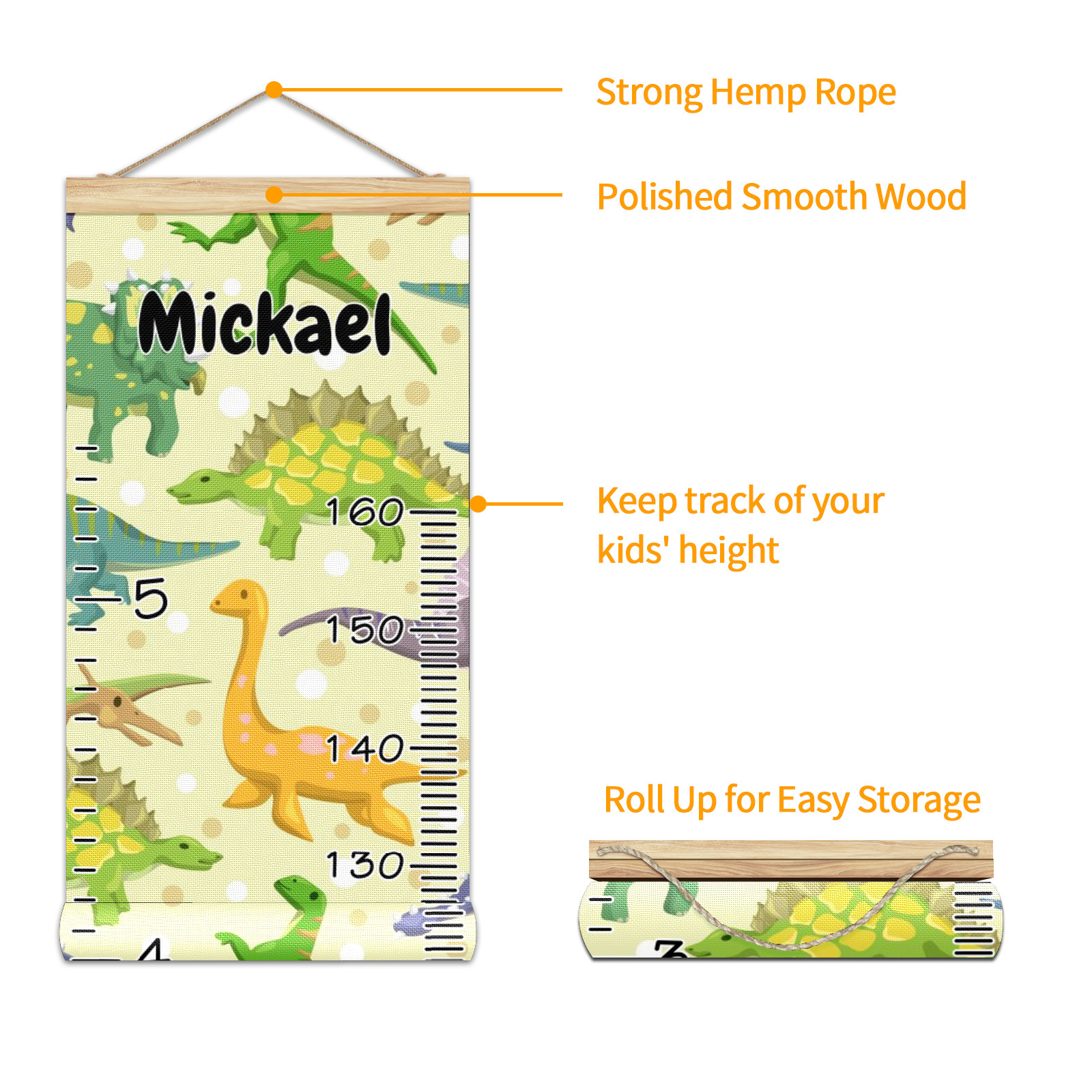 Personalized Kids Name Growth Chart Ruler for Wall Wood Frame Canvas Height Measure Chart 13.4x56 in Hanging Growth Chart Cartoon Dinosaur Animal3.14 Boys Girls Room Decor