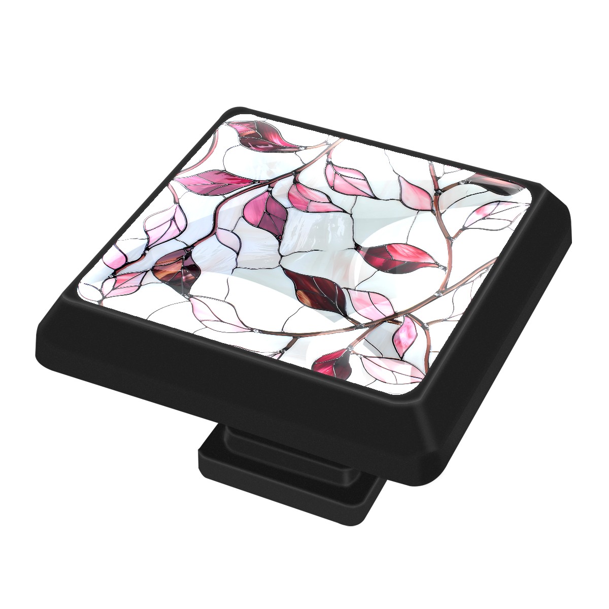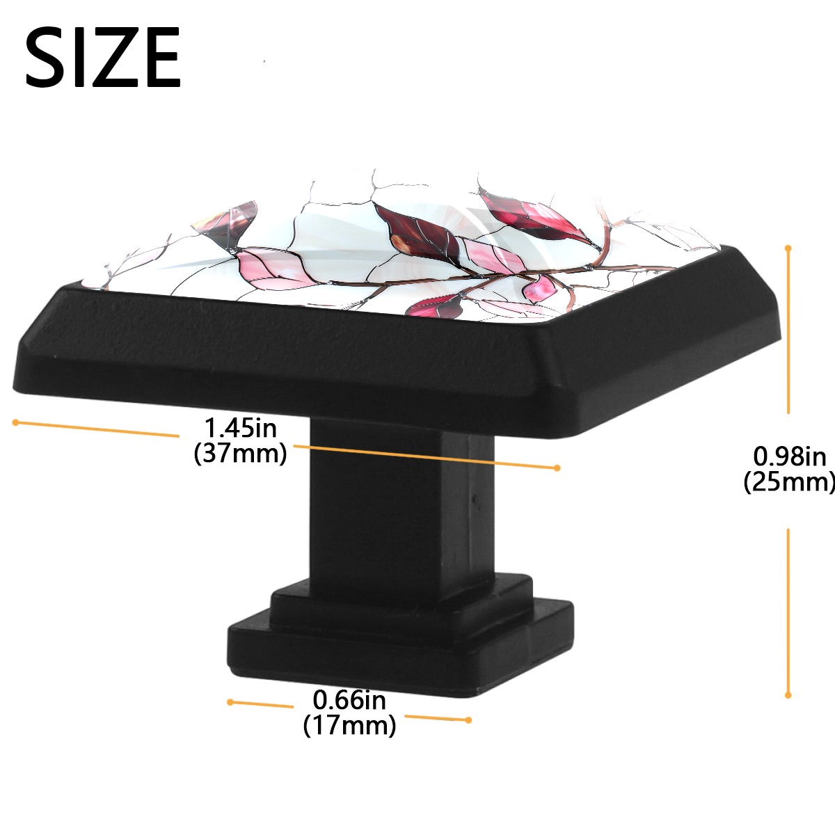 3-Pack Square ABS Plastic & Glass Single-Side Printed Drawer Pulls 1.45x0.98IN with 0.31x1.10IN Screws for Kitchen, Bedroom & Multi-Space Cabine Stained Leaves (17) (1)