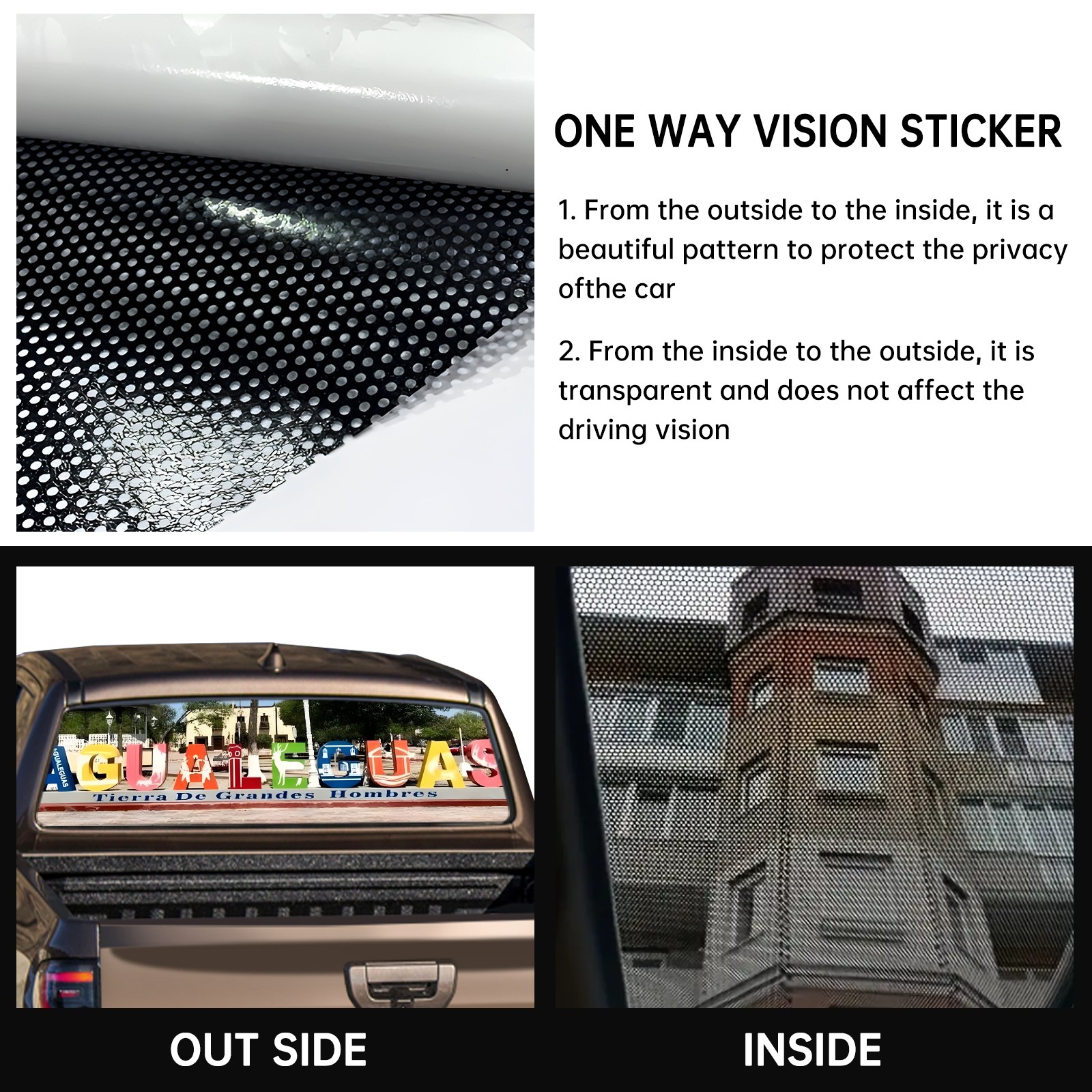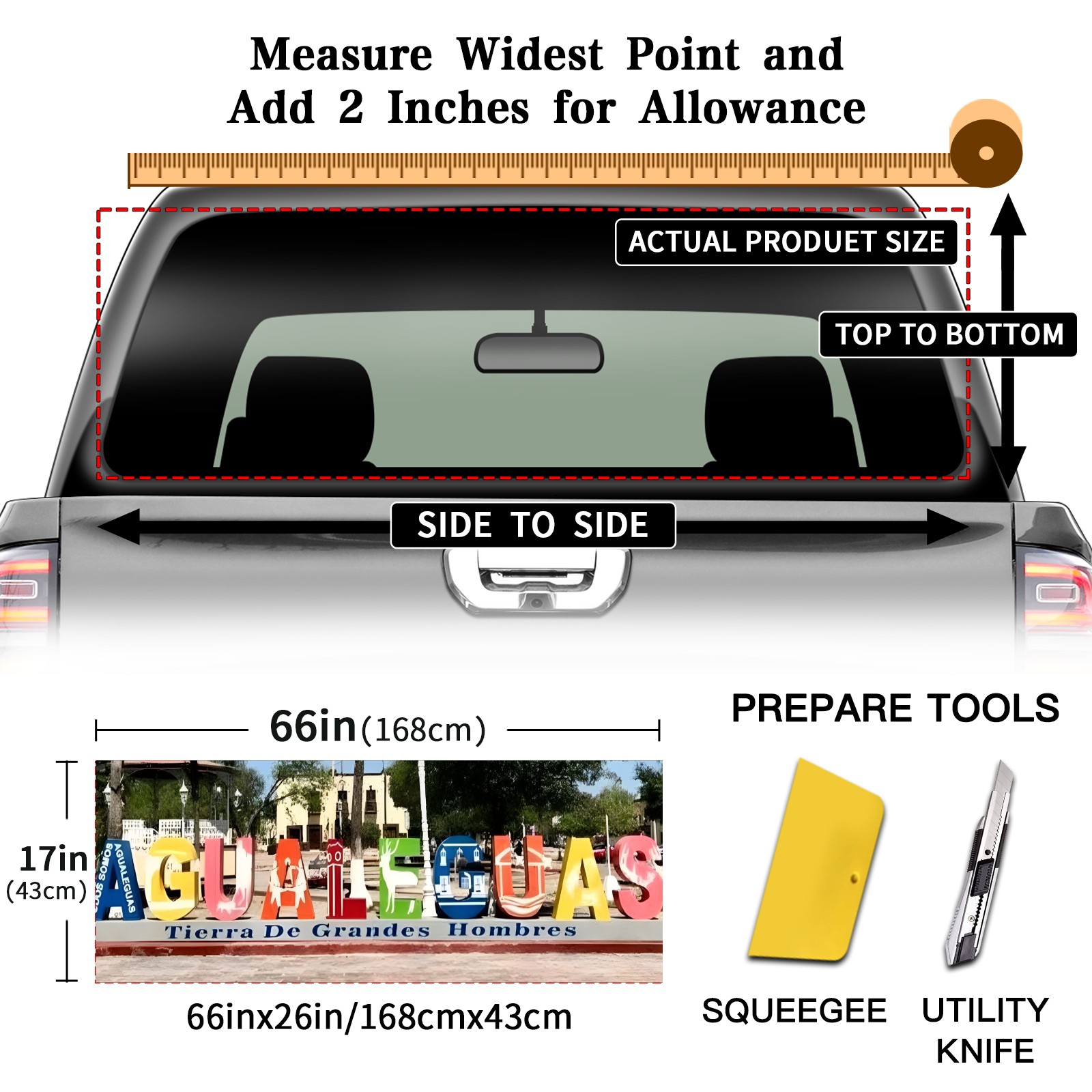 • <p><strong>Truck Rear Window Graphics Decals Pickup Trucks Back Window Film Stickers 66" x 22" Perforated Vinyl Wrap Stickers Decorations for Car Rear Window</strong></p><p><strong><br /></strong></p><p><strong>Features :</strong></p><p>- Size of the rear window decals for trucks is 66x22 Inches (168x56cm).</p><p>- High quality perforated vinyl window film, one way vision sticker.</p><p>- Perforated is see through from the inside but not from outside.</p><p>- Clear printing, waterproof and durable.</p><p>- The car back window graphics stickers fits most truck and makes your vehicle more beautiful.&nbsp;</p><p><br /></p><p><strong>【Installation Instructions】</strong></p><p><strong>1. CLEAN SURFACE -</strong> Clean the rear window thoroughly and make sure the surface clean.</p><p><strong>2. STICK THE DECALS -</strong> Tear off the paper on the back and stick the decal on the window.</p><p><strong>3. SCRAPE OFF AIR BUBBLES -</strong> Use a squeegee or other card to scrape off the excess air bubbles.</p><p><strong>4. TRIM THE EXCESS -</strong> Use a knife to cut off the excess stickers of the window, finally complete.</p><p><br /></p><p>1. Please measure the size before purchasing, back window graphics decal for truck can be cut to your desired size.</p><p>2.The graphics stickers for truck back window is a great gift for yourself also can as a birthday / halloween / christmas gift for your friends and family.</p>