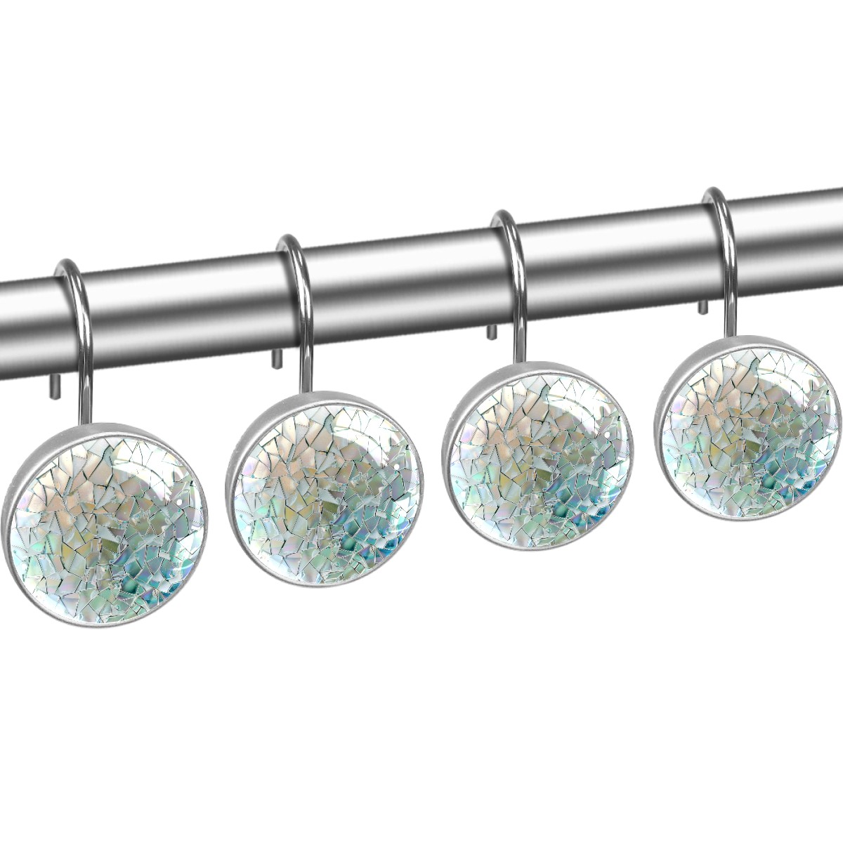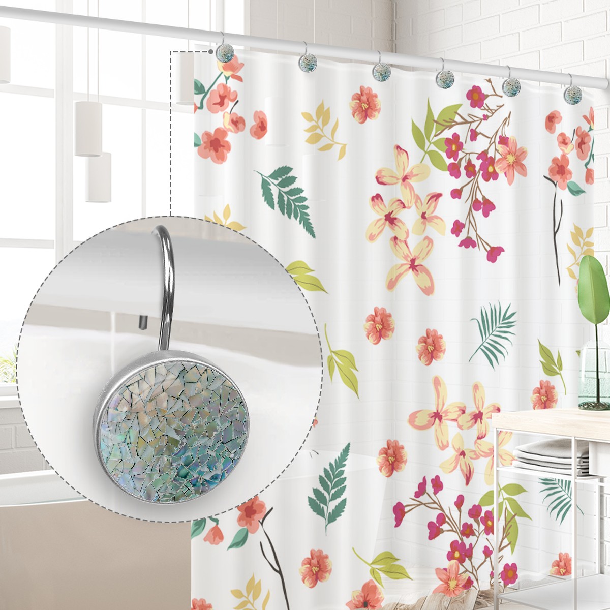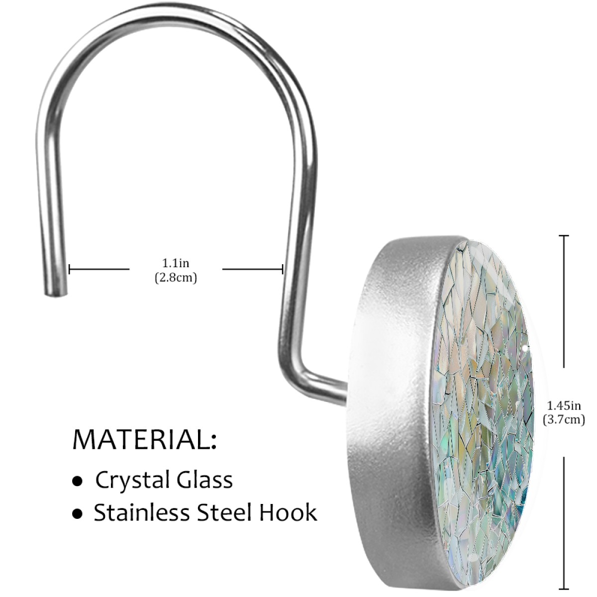 <p>Upgrade your bathroom with these triple-material shower curtain hooks crafted from&nbsp; crystal glass,&nbsp; stainless steel, and anti-slip resin – combining elegance and durability! These hooks install instantly with no tools required. Crystal Glass printing,resisting scratches and discoloration even in humid environments.Rustproof and corrosion-resistant, supports heavy curtains without bending or aging.</p><br />