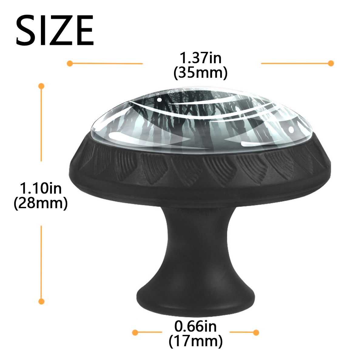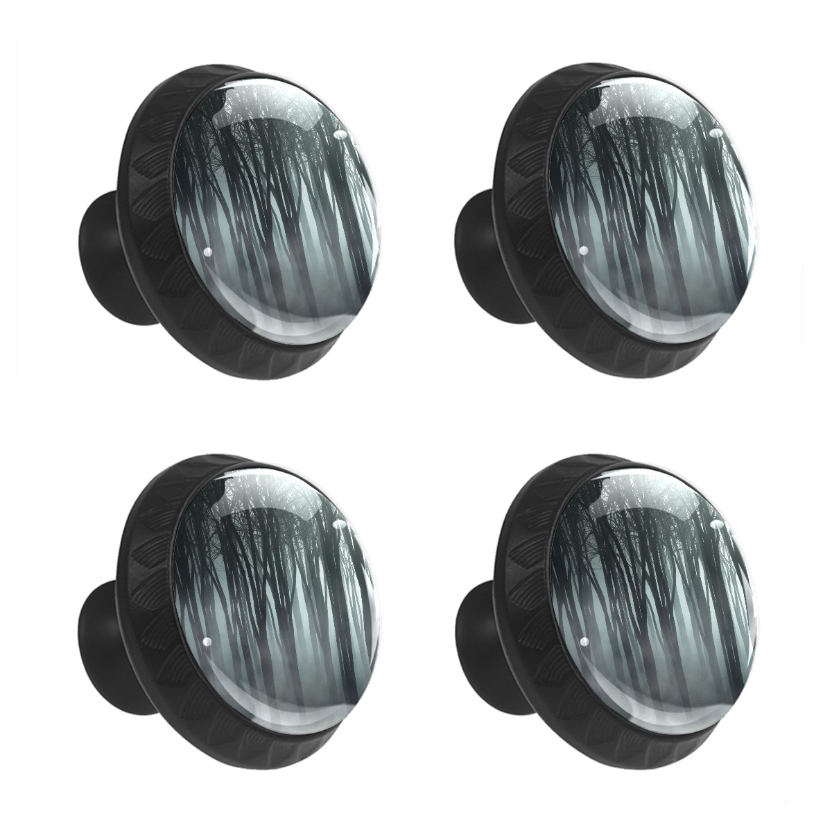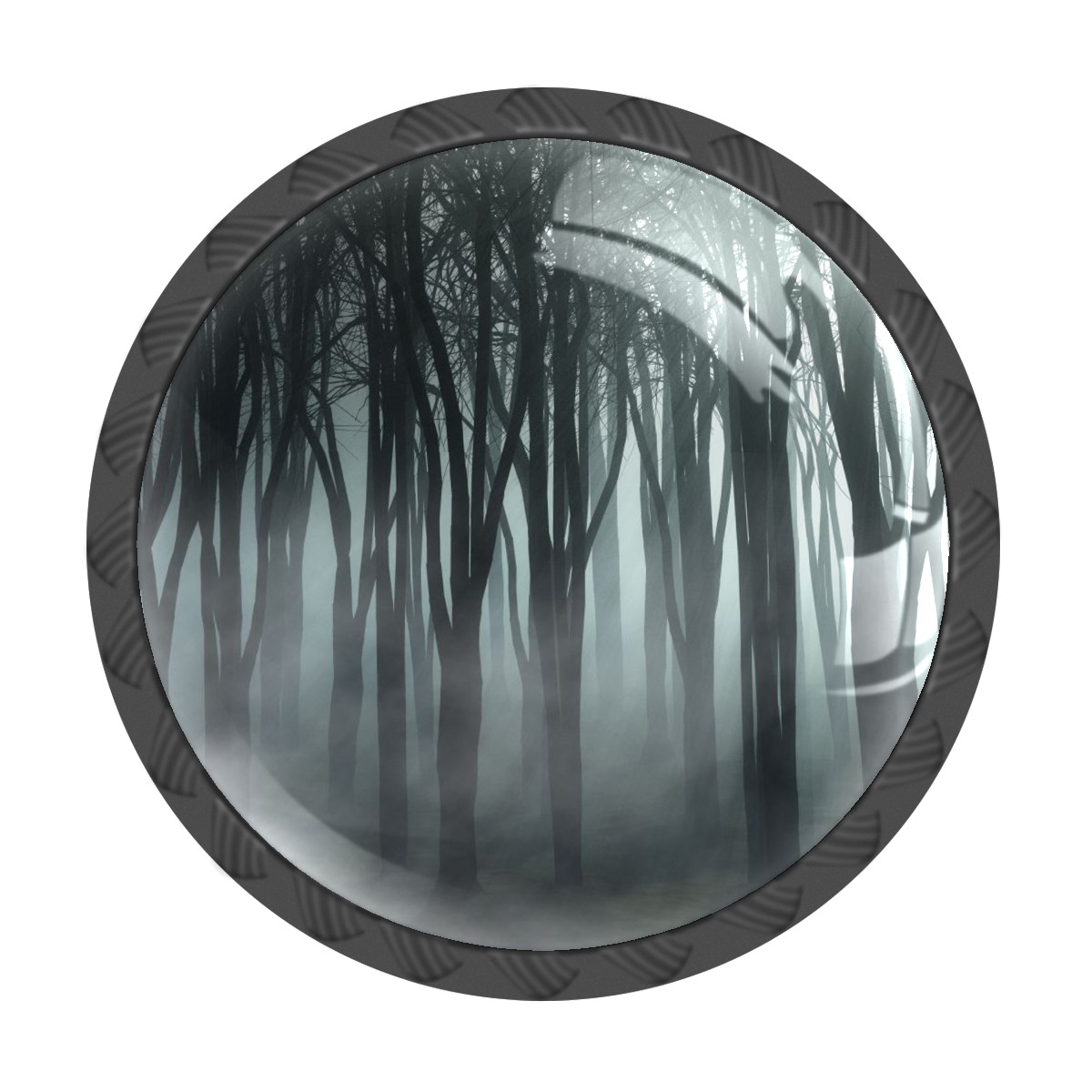 4 Pcs Drawer Knobs Foggy Forest Landscape Round Crystal Glass Knobs Pulls for Dressers Kitchen Cabinets Drawers Wardrobe Cupboard Furniture Hardware Handles