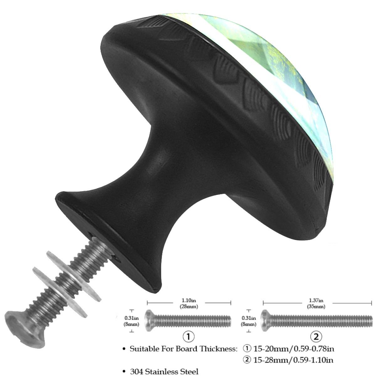 • <p><b>Package includes:</b></p> <p>4 x cabinet knobs</p> <p>4 x screws 1.1'' (28 mm) </p> <p>4 x screws 1.37'' (35 mm)</p> <p><b>How to Install?</b></p> <p>1. Drill a hole in the drawer panel.</p> <p>2. Pass the screw through from the backside of the drawer.</p> <p>3. Tighten the knob onto the screw.</p> <p>ABS + Glass: The combination of sturdy ABS with high-transparency glass offers a long-lasting shine that enhances the quality of your home. Suitable for cabinets, drawers, dressers, wardrobes, office furniture, etc.</p> <p>Easy Maintenance: The smooth glass surface wipes clean easily, making it ideal for long-term use in kitchens and bathrooms.</p>