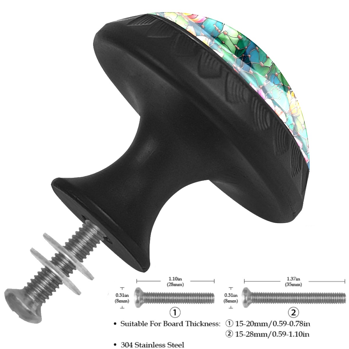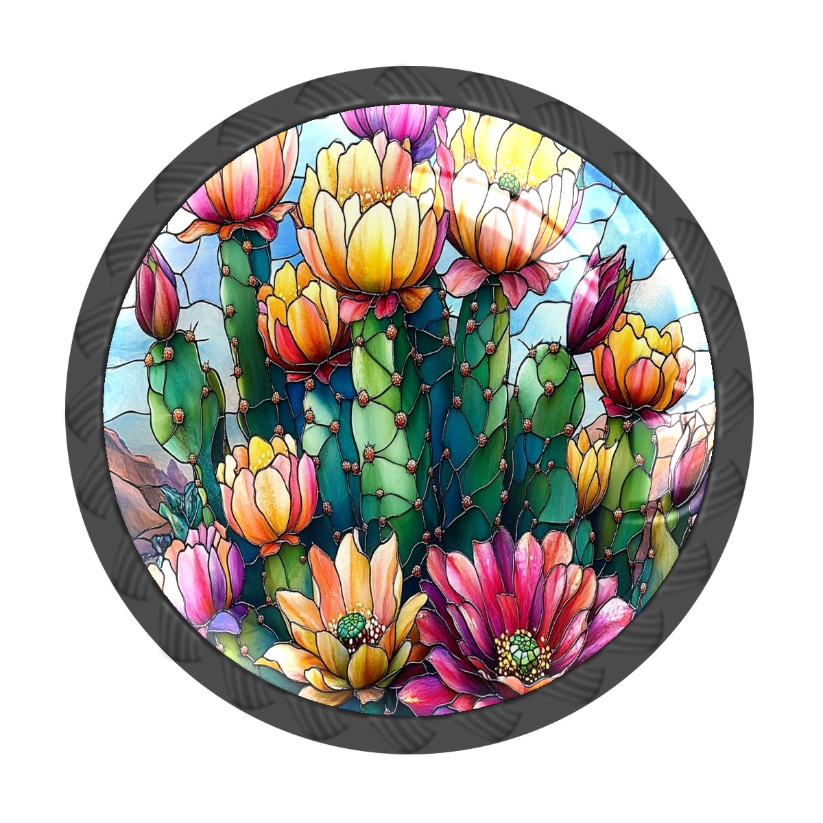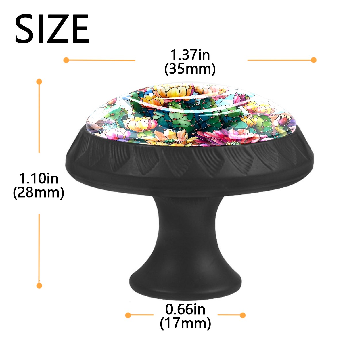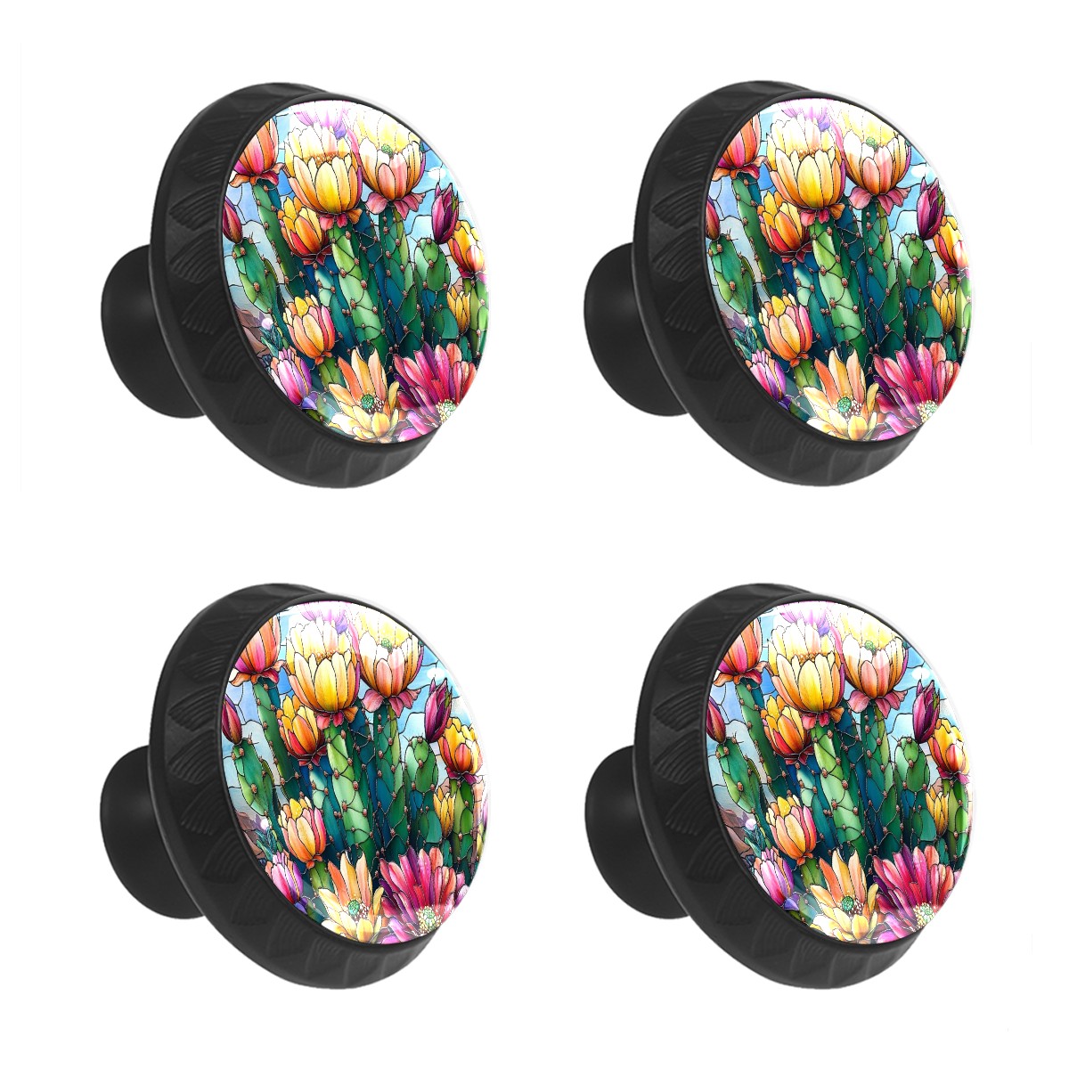 4 Pack Cabinet Knobs Stained Glass Cactus Drawer Pulls Crystal Glass Round Knobs Handles for Dressers Drawer Bathroom Kitchen Cupboards Wardrobes Hardware Furniture Knobs