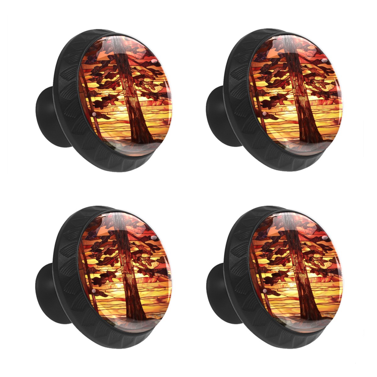 4 Pack Cabinet Knobs Stained Glass Forest Wood Drawer Pulls Crystal Glass Round Knobs Handles for Dressers Drawer Bathroom Kitchen Cupboards Wardrobes Hardware Furniture Knobs