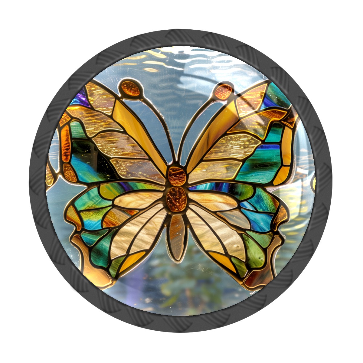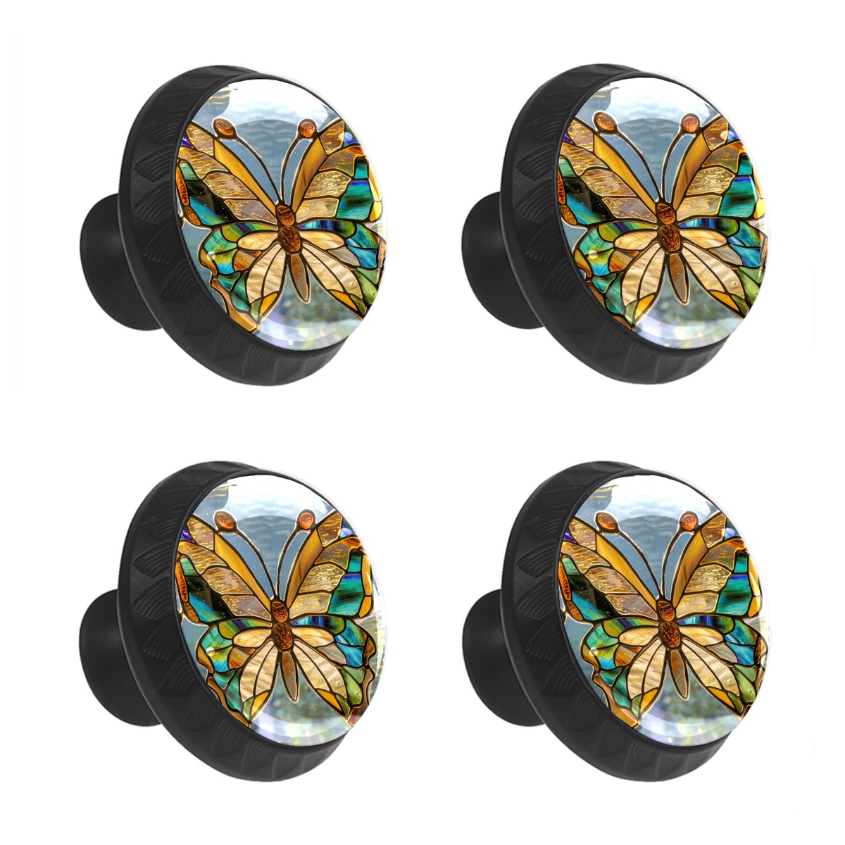 4 Pack Cabinet Knobs Stained Glass Butterflies Drawer Pulls Crystal Glass Round Knobs Handles for Dressers Drawer Bathroom Kitchen Cupboards Wardrobes Hardware Furniture Knobs