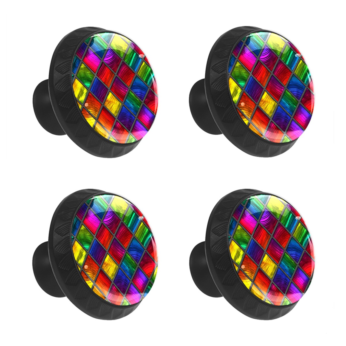4 Pack Cabinet Knobs Colorful Stained Glass Red Blue Drawer Pulls Crystal Glass Round Knobs Handles for Dressers Drawer Bathroom Kitchen Cupboards Wardrobes Hardware Furniture Knobs