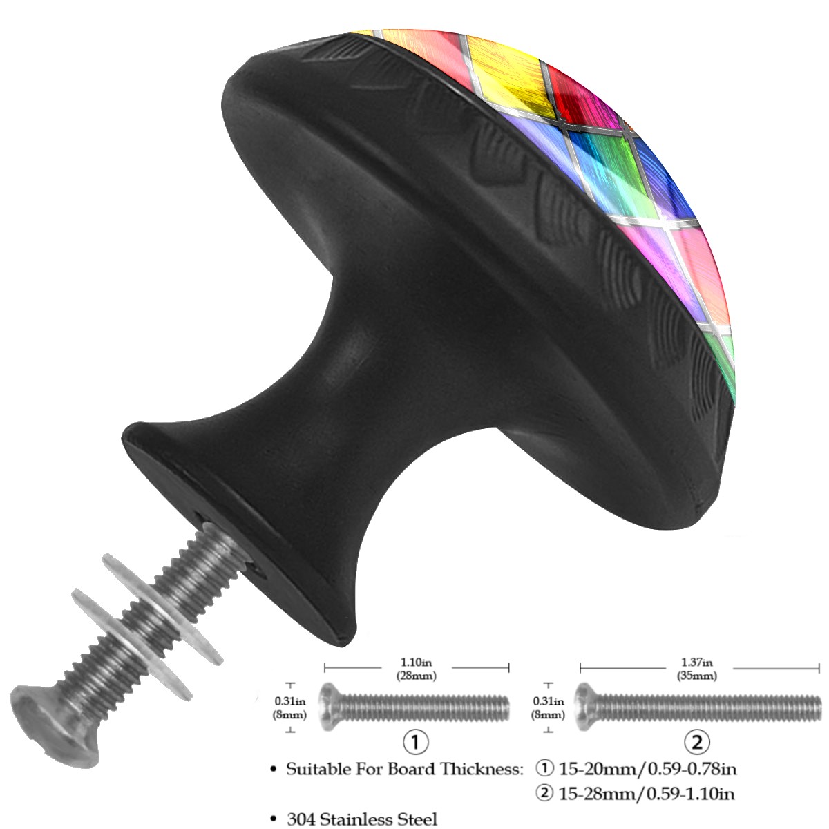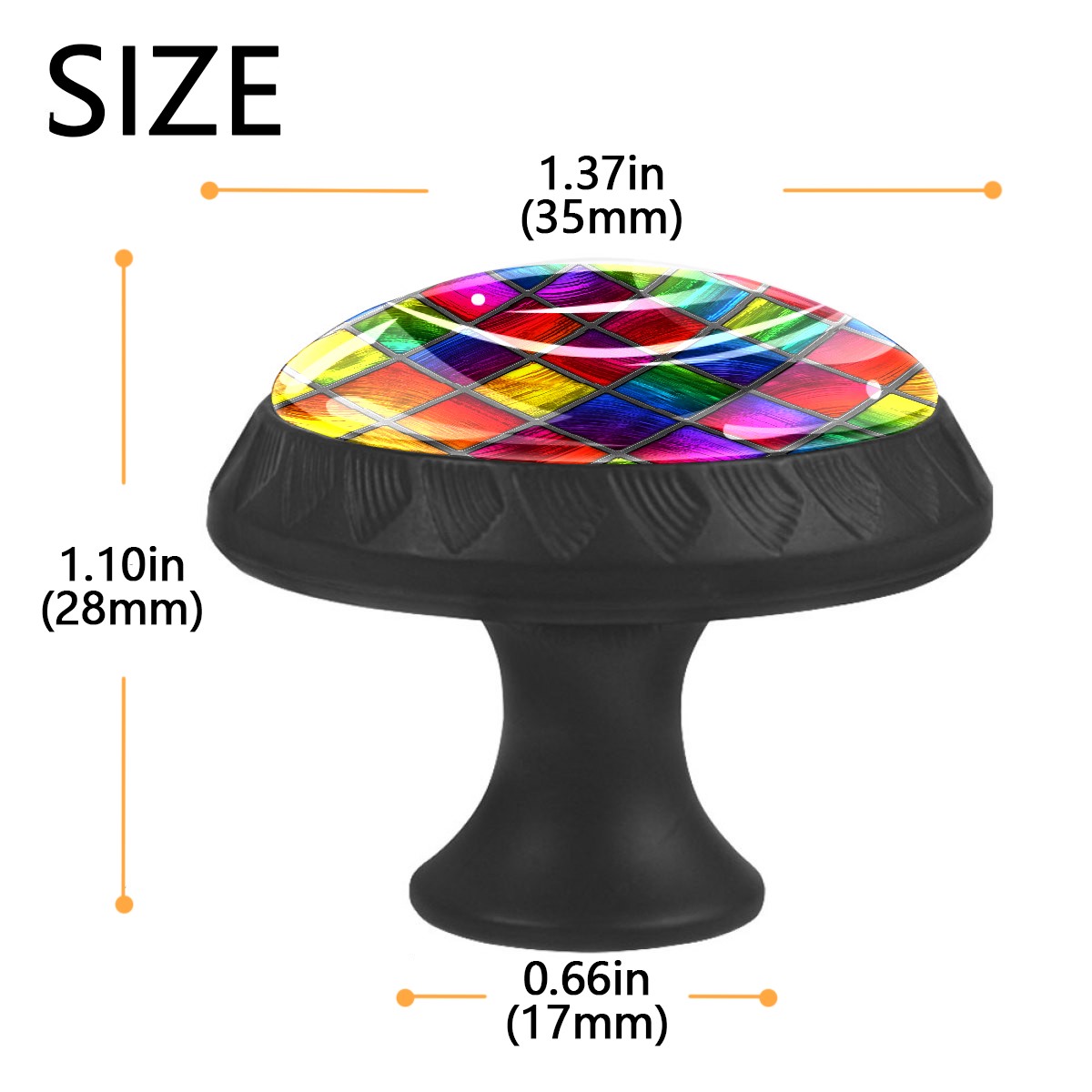 • <p>Decorative Drawer Knobs Pulls Cabinet&nbsp;Handles</p> <p>Package Contents:</p> <p>4 x Cabinet&nbsp; Handles</p> <p>4 x 1.1’’ &nbsp; M ounting Screws &nbsp;</p> <p>4 x 1.37’’ &nbsp;Matching Screws </p> <p>Material:</p> <p>Crafted with a crystal glass surface, combined with ABS plastic and quality materials for durability and aesthetics.</p> <p>Size:</p> <p>Each knob measures 1.37 inches in width by 1.10 inches in height, fitting most standard drawers and cabinet doors.</p> <p>Screw Lengths:</p> <p>Available in two lengths: 1.1 inches and 1.37 inches, to accommodate various board thicknesses.</p> <p>Easy to Install:</p> <p>Each drawer knob comes with a fitting screw, making installation easy without the need for additional accessories.</p> <p>Wide Application:</p> <p>These drawer pulls are versatile for use in various home settings, including cabinets, dressers, drawers, wardrobes, nightstands, closets, bookshelves, kitchens, bathrooms, bedrooms, living rooms, and more,&nbsp; adding consistency and sophistication to your home decor.</p>