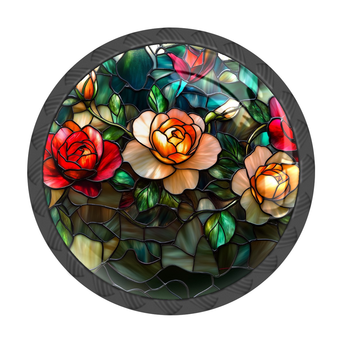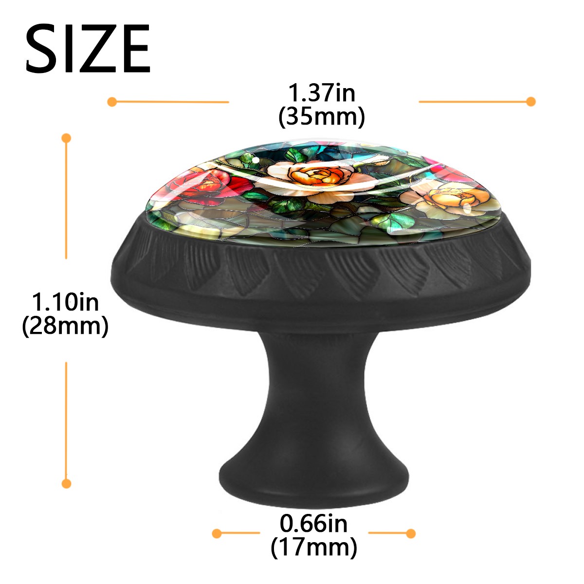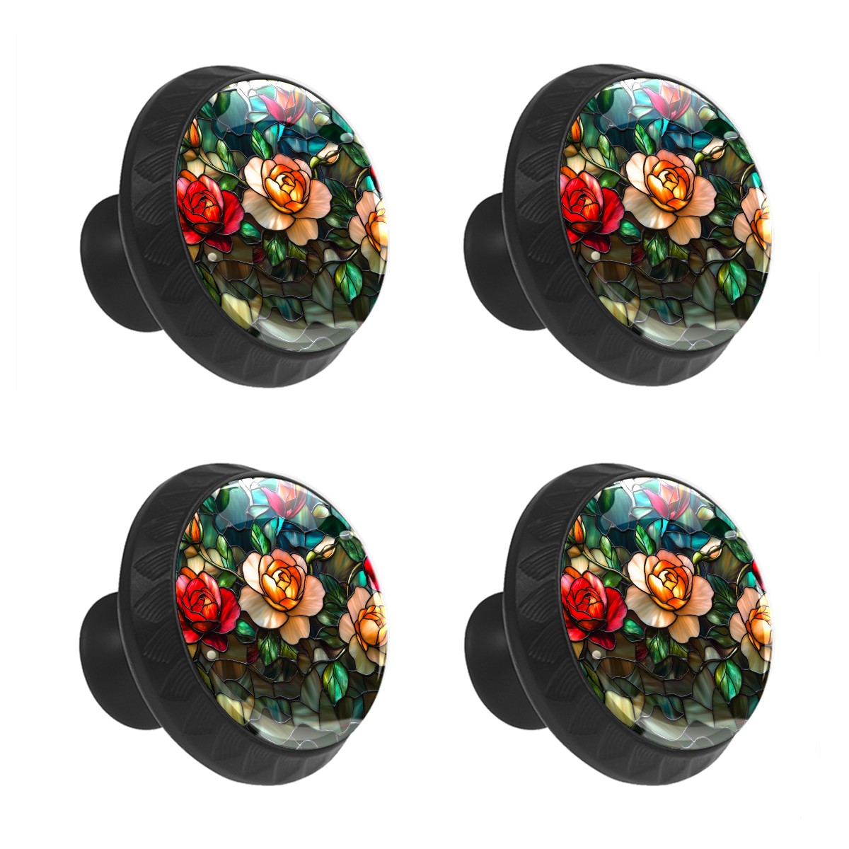 4 Pack Cabinet Knobs Stained Glass Roses Drawer Pulls Crystal Glass Round Knobs Handles for Dressers Drawer Bathroom Kitchen Cupboards Wardrobes Hardware Furniture Knobs
